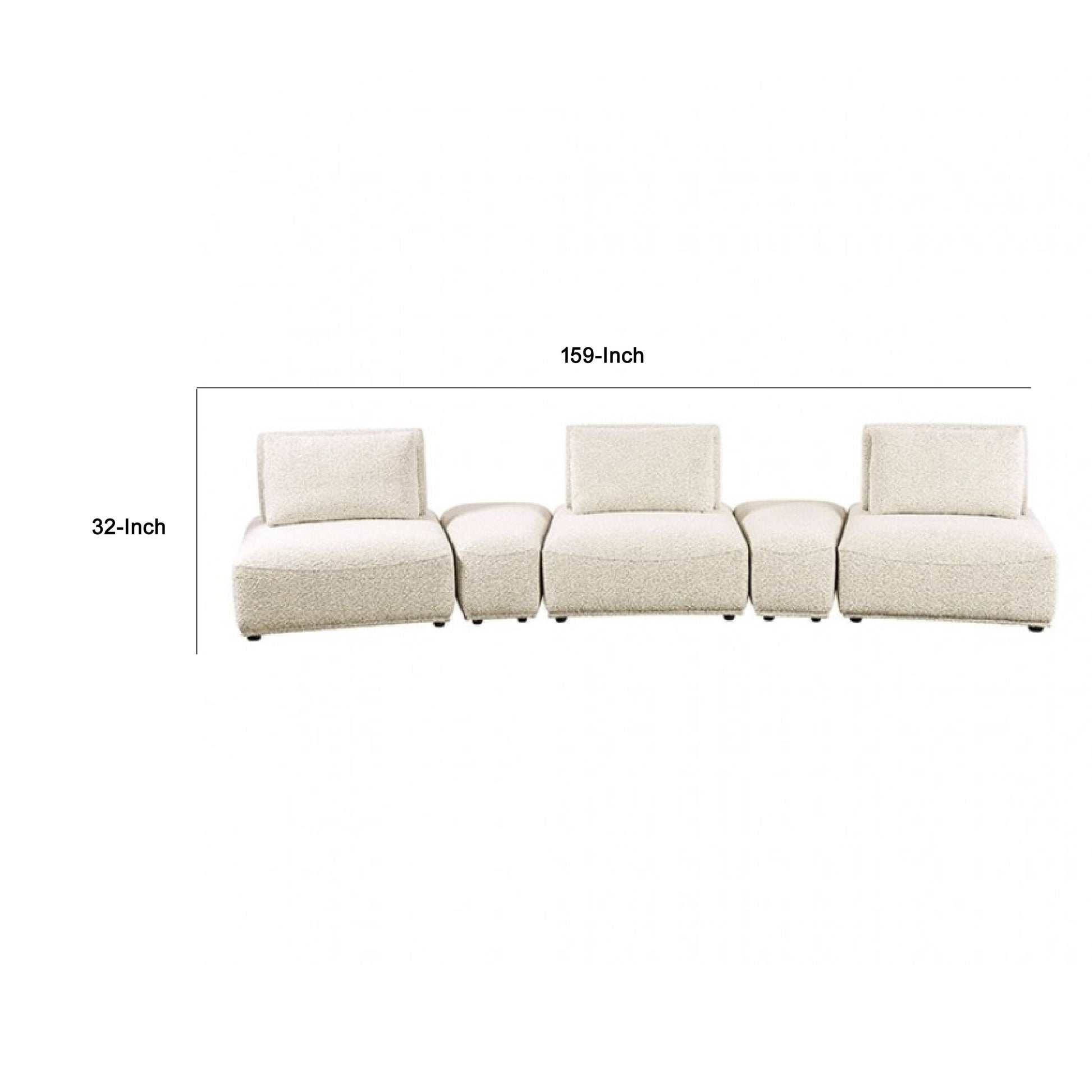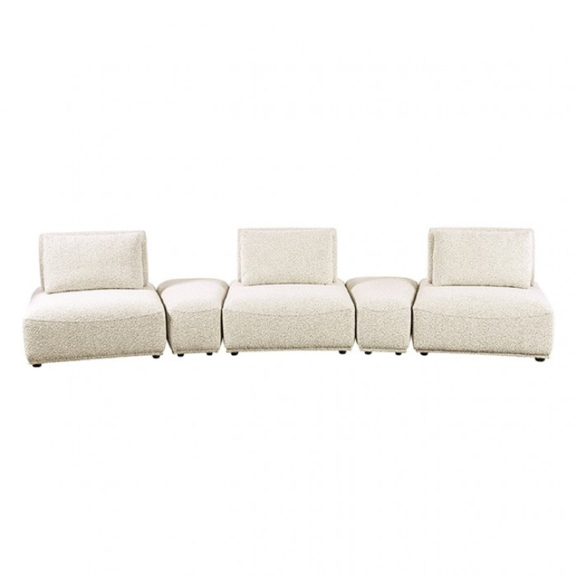Canapé modulable incurvé 3 places Stavan, beige bouclé, profondeur d'assise réglable