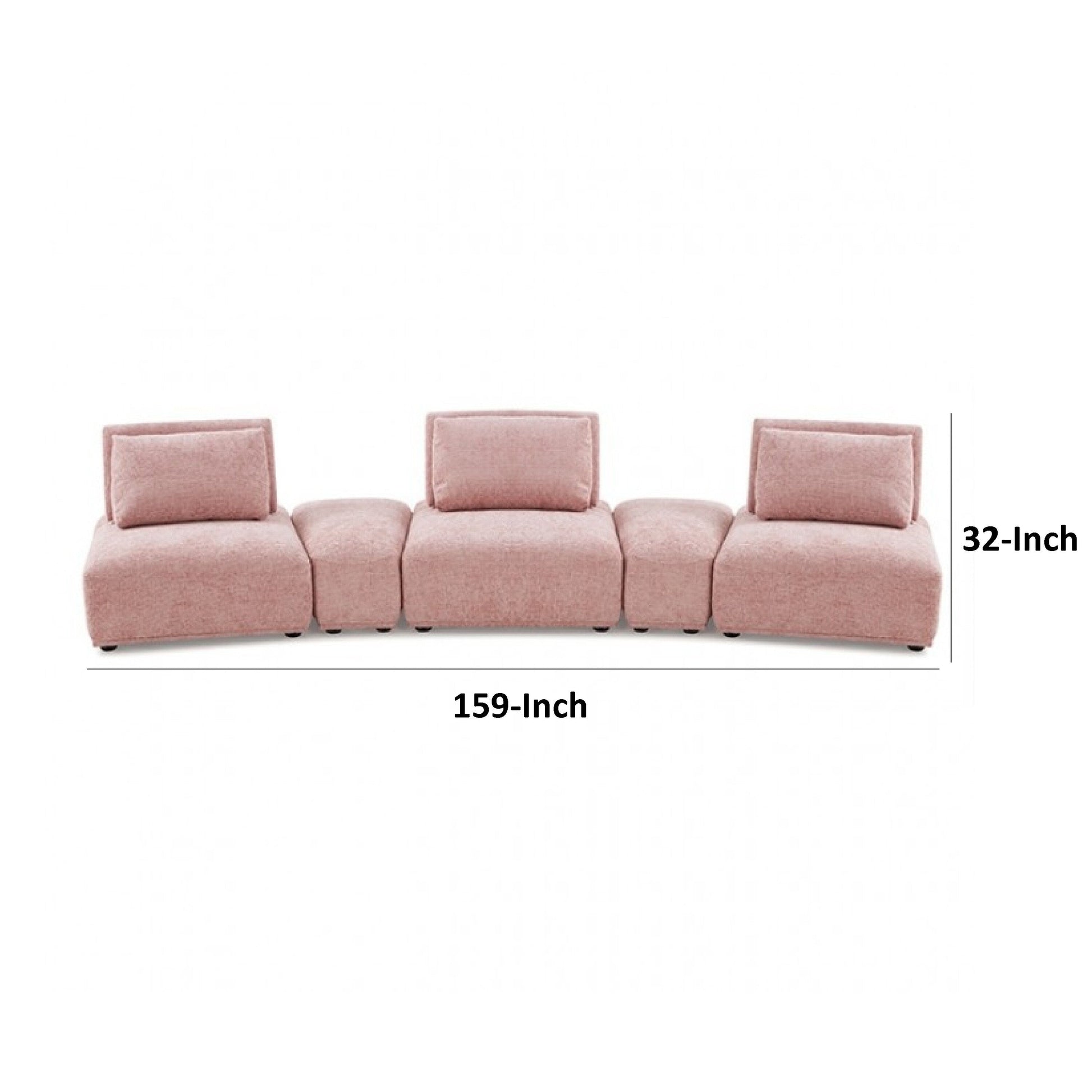 Canapé modulable incurvé 3 places Stavan, assise réglable en profondeur Boucle rose