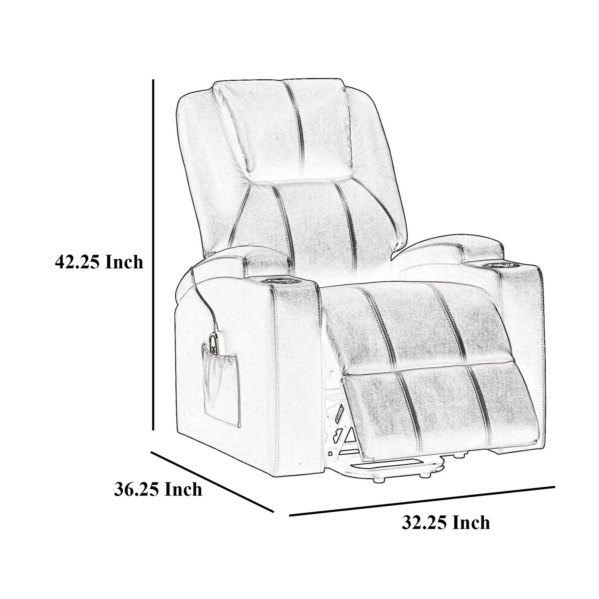 Détendez-vous avec style et confort grâce à ce fauteuil inclinable releveur. Fabriqué avec une structure robuste en contreplaqué, il est doté d'un revêtement en similicuir marron pour une allure élégante et accueillante. Équipé d'un mécanisme de levage et de massage électrique, de deux porte-gobelets et d'une télécommande, il allie praticité et esthétique contemporaine. Découvrez notre collection Stoy pour plus d'options.