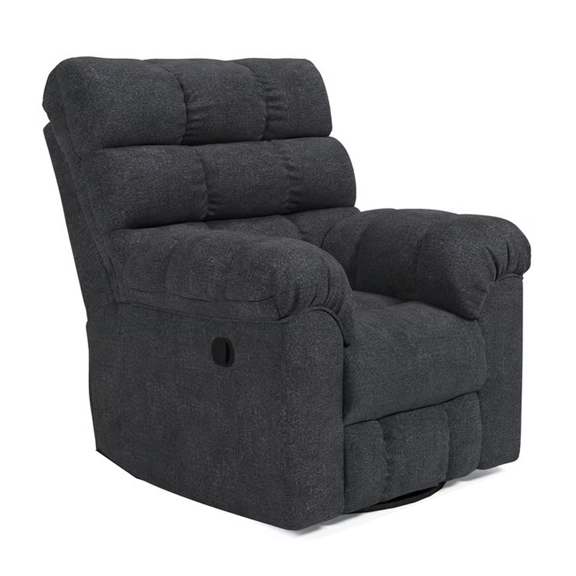 Détendez-vous avec ce fauteuil inclinable pivotant à bascule. Conçu pour un confort optimal, il est doté d'un revêtement en polyester bleu marine apaisant, de surpiqûres froncées et d'un dossier capitonné effet biscuit. Sa base pivotante et son doux mouvement de bascule vous permettent de rester concentré sur la conversation, tandis que la fonction d'inclinaison par tirette vous offre une détente optimale. Découvrez notre collection Sub pour plus d'options.