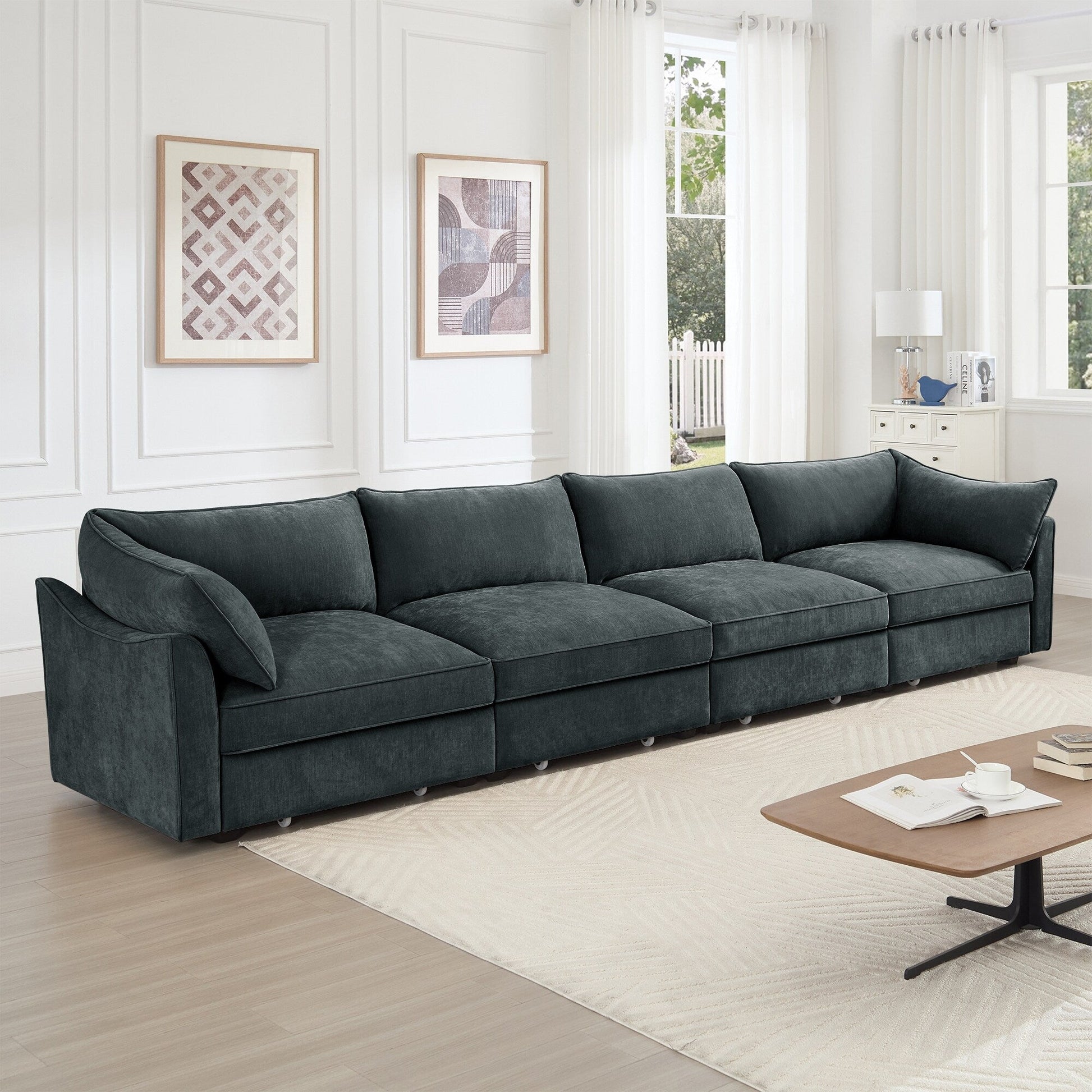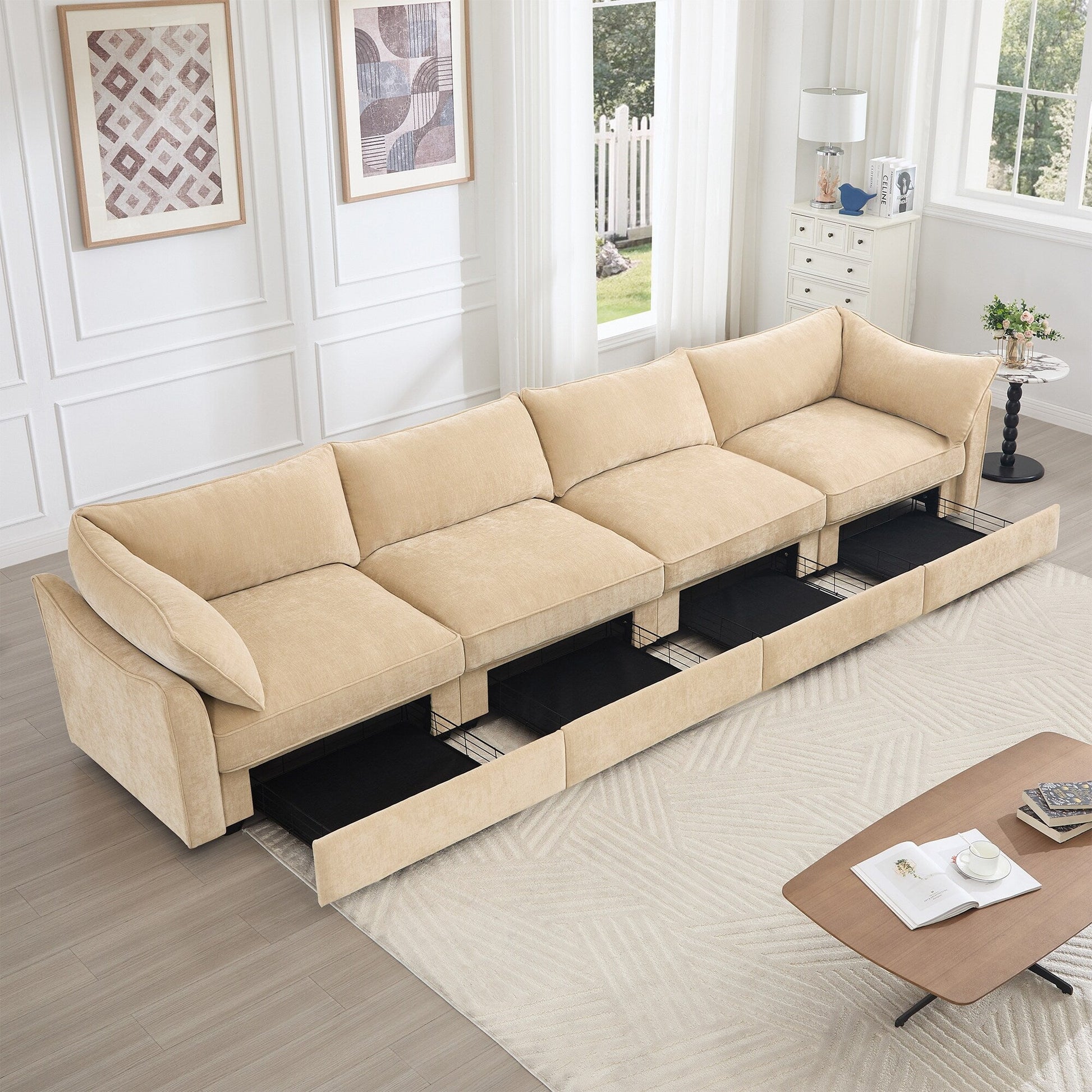 Canapé 4 places très large et profond avec tiroir de rangement coulissant sous chaque siège