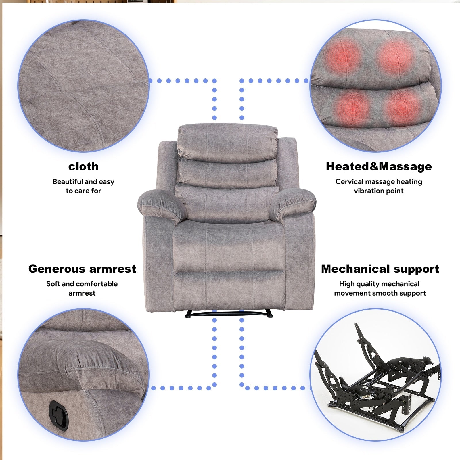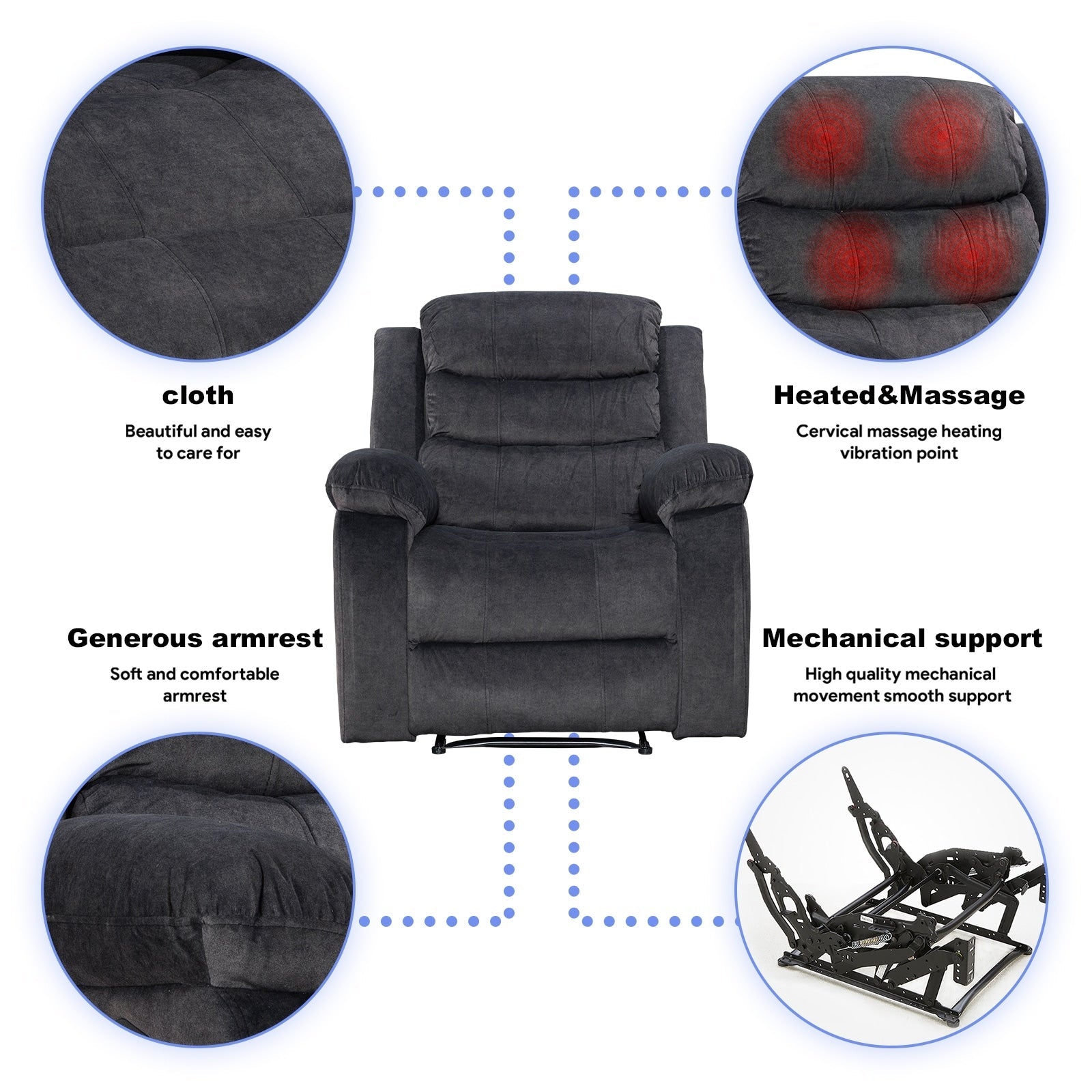 - Fauteuil inclinable super doux avec fonction de vibration de massage à 8 points.