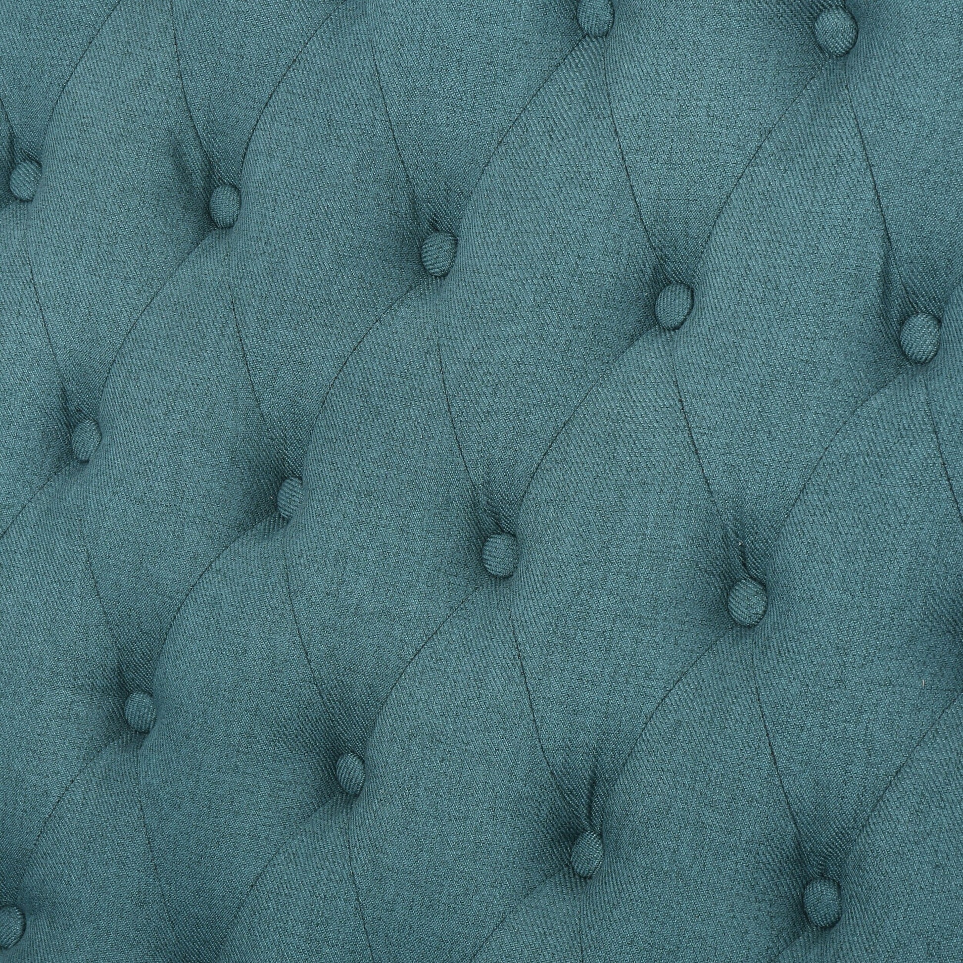 Canapé à oreilles hautes capitonné en velours bleu sarcelle
