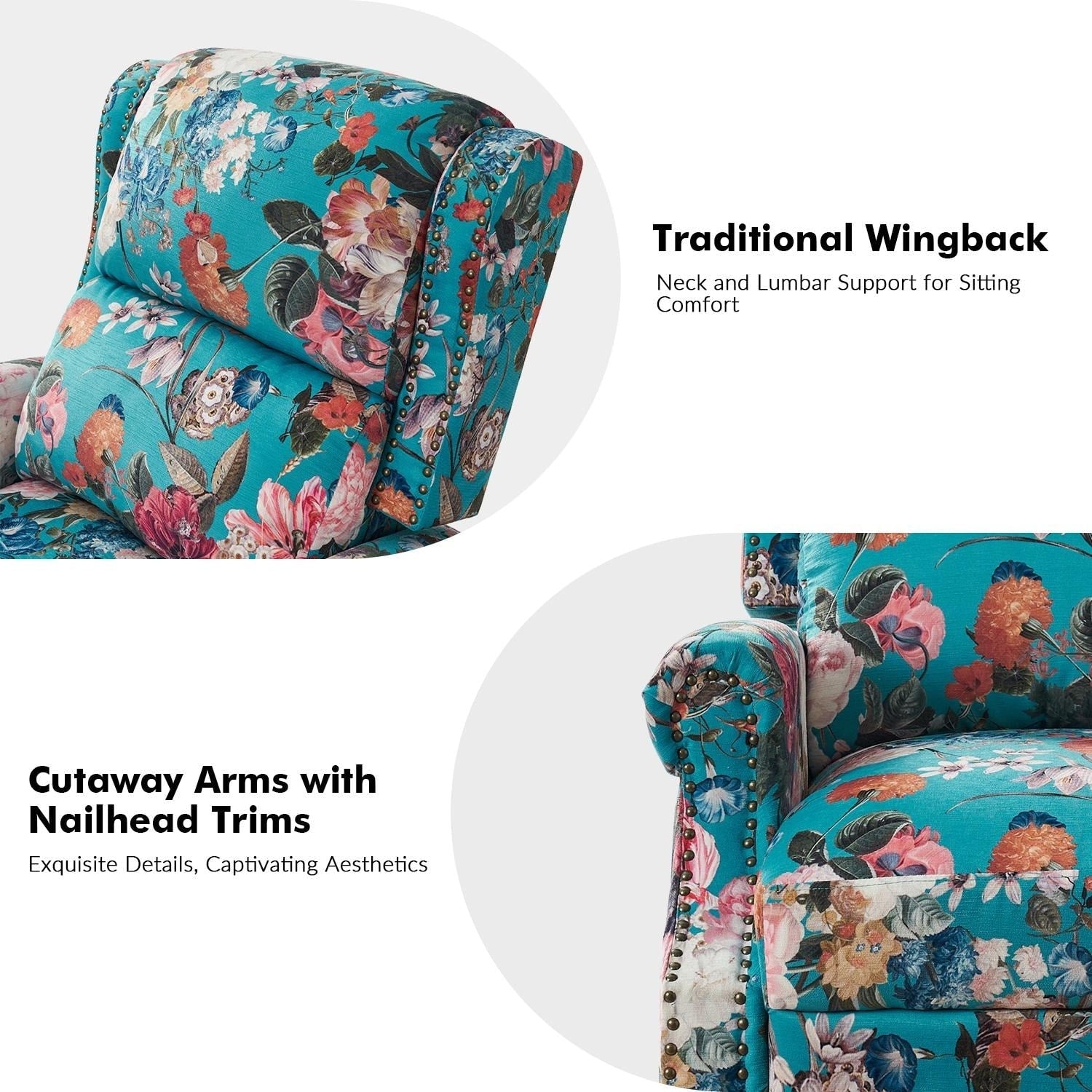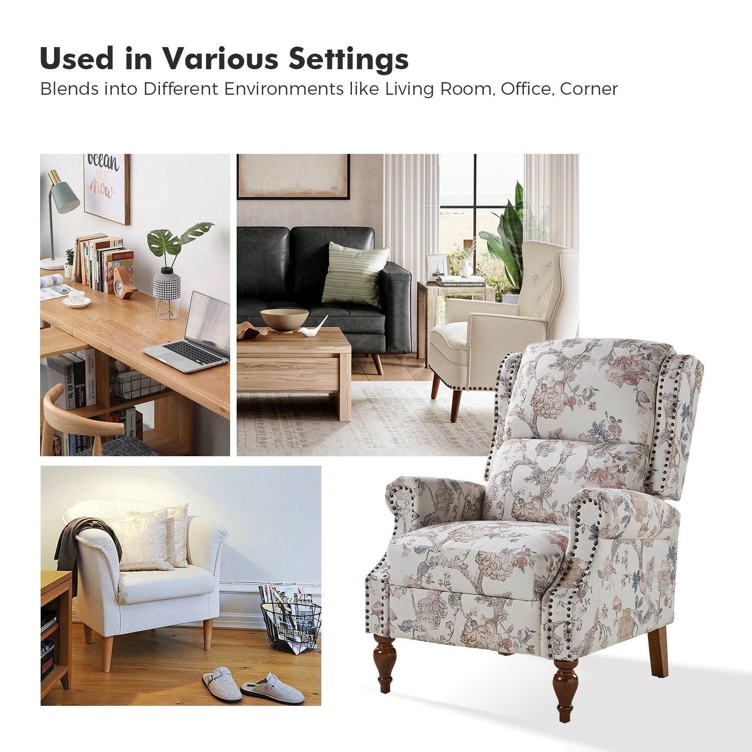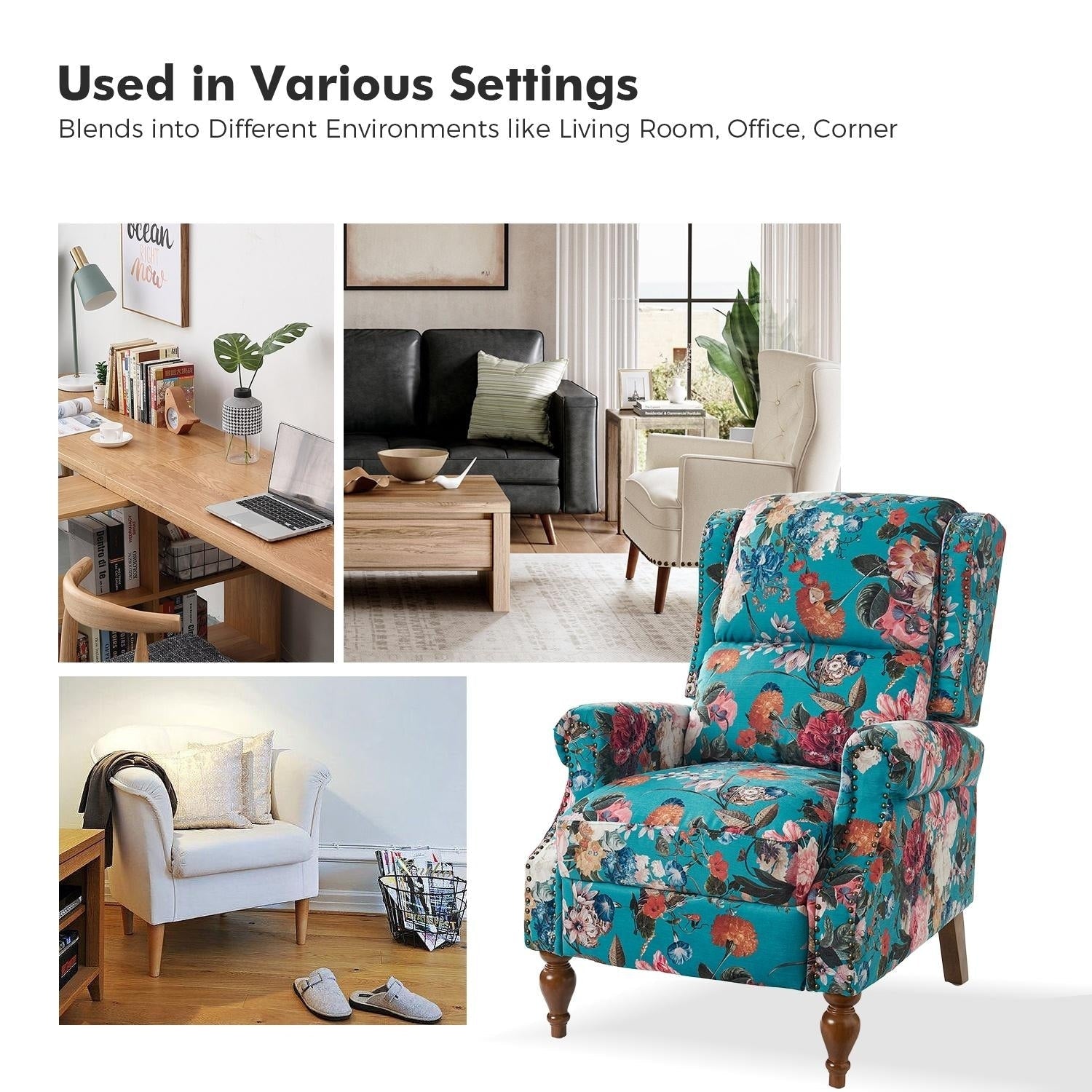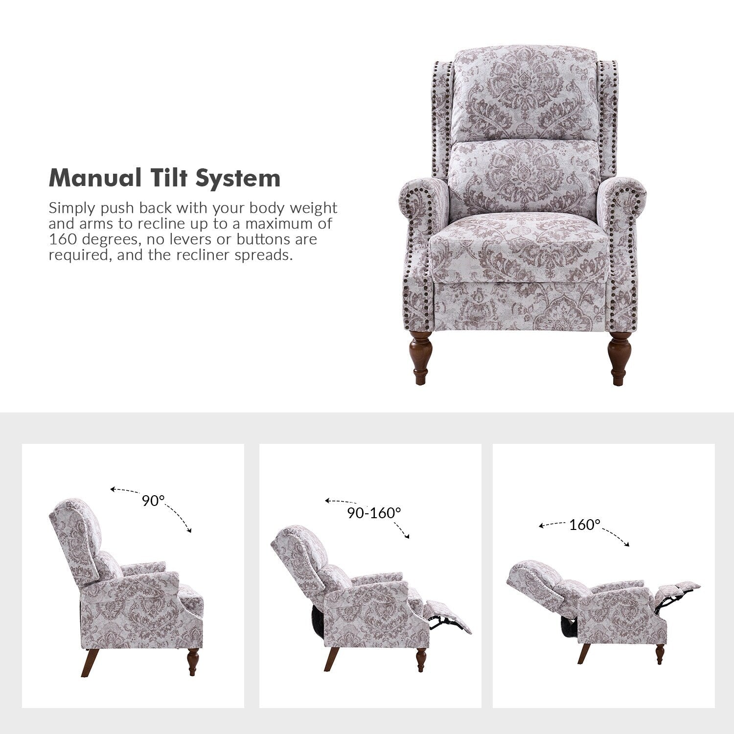 Que vous vous détendiez avec un livre ou que vous preniez une courte pause, cet ensemble de fauteuils inclinables manuels traditionnels est le compagnon idéal pour des moments de détente et de relaxation. Orné d'une variété de motifs de tissus, tous plus captivants les uns que les autres, il vous permet de personnaliser votre espace avec un charme unique. Les accoudoirs à enroulement et les accoudoirs découpés sont ornés de clous décoratifs vintage, tandis que la silhouette à oreilles offre un soutien lombaire. Soutenu par de robustes pieds à fuseaux en bois massif, cet ensemble de fauteuils inclinables vous enveloppe de confort et vous garantit une utilisation durable. Découvrez l'art de la relaxation redéfini avec ce fauteuil inclinable manuel, où chaque détail témoigne d'un confort optimal. Son mécanisme d'inclinaison manuel, facile à utiliser, vous invite à vous détendre après une longue journée, que ce soit dans votre salon, votre chambre ou votre bureau.