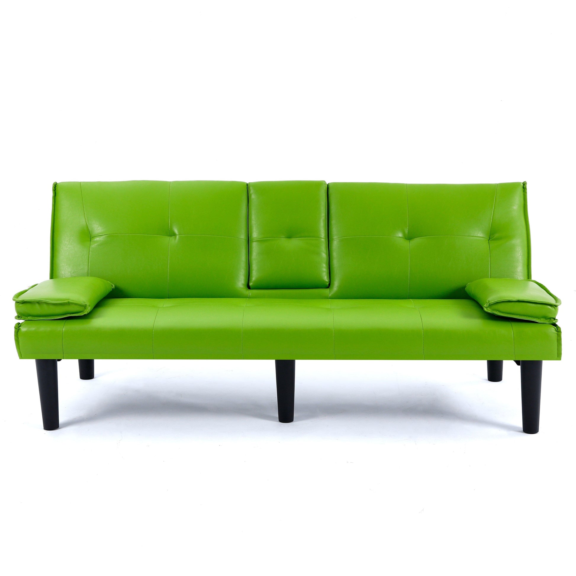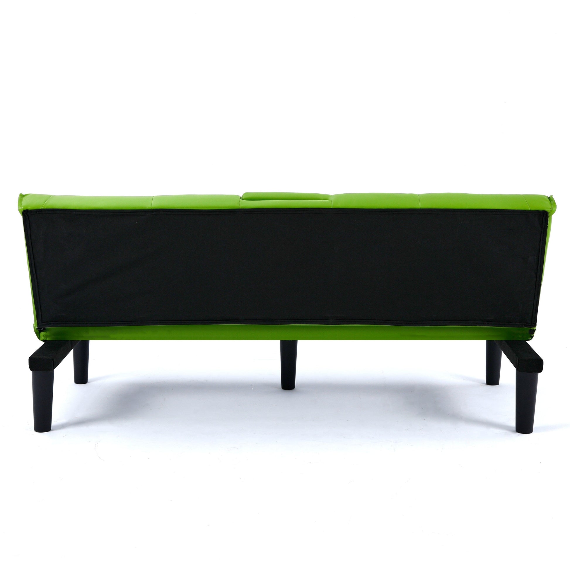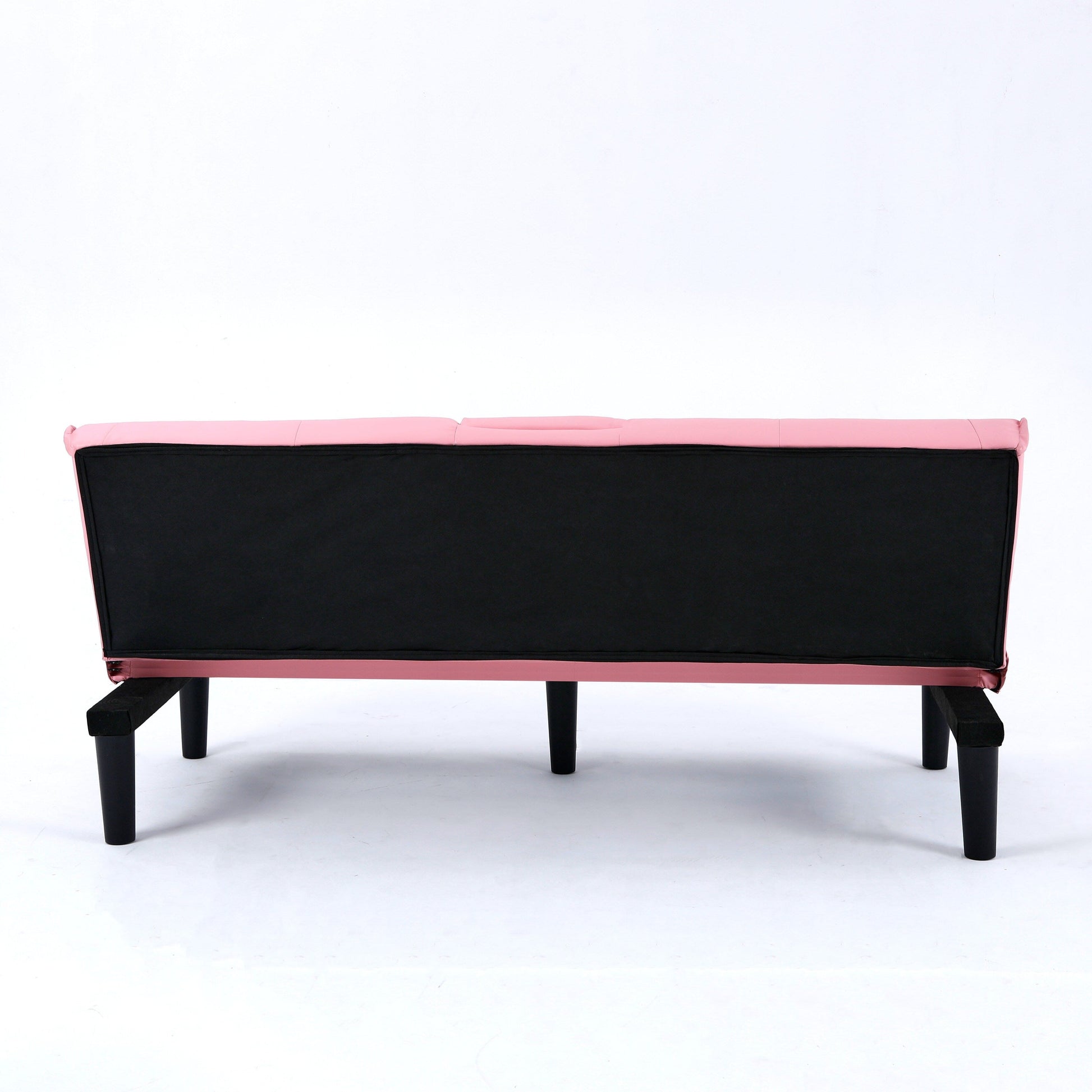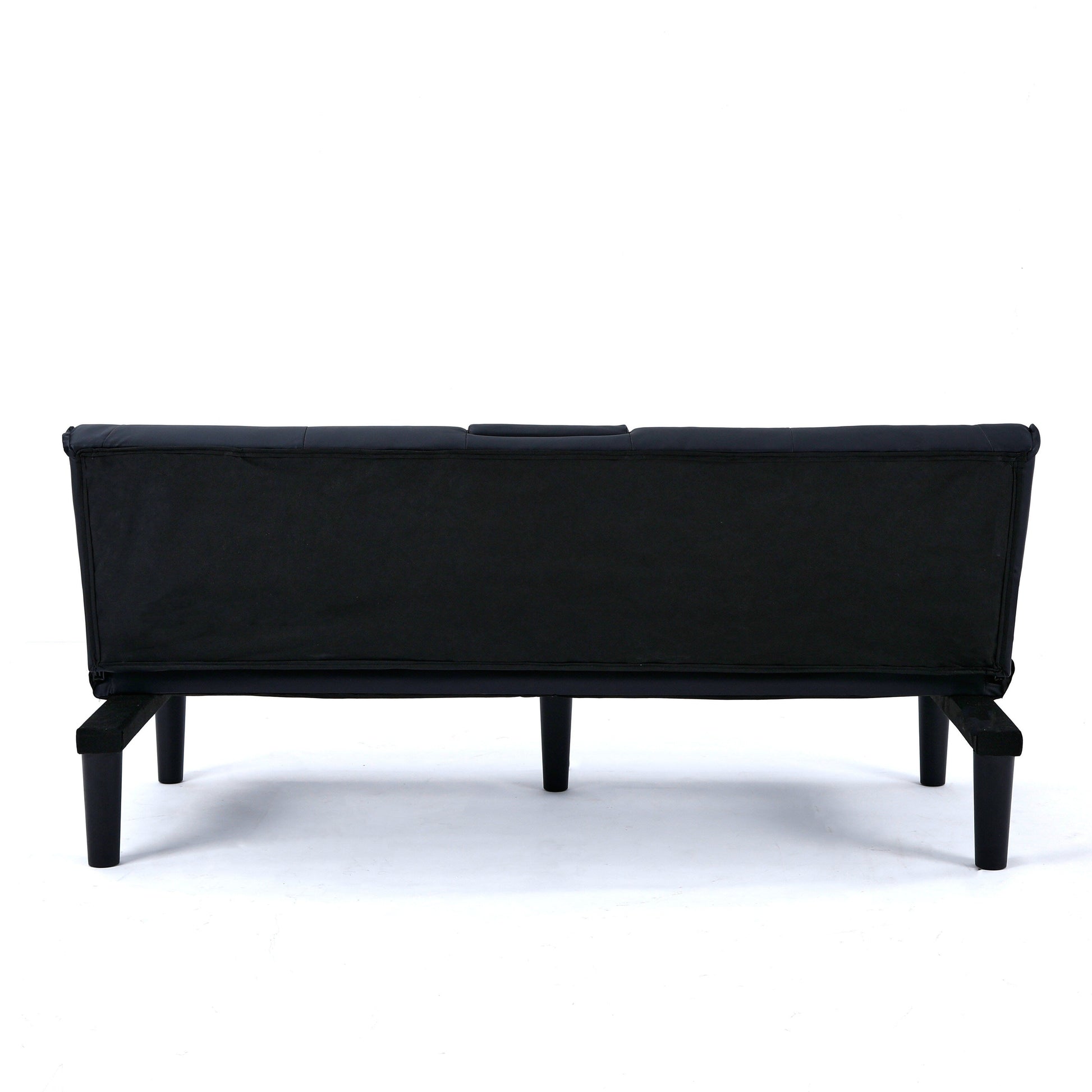 Le canapé-lit multifonctionnel en PVC noir de 67 pouces avec un design pliable et porte-gobelet