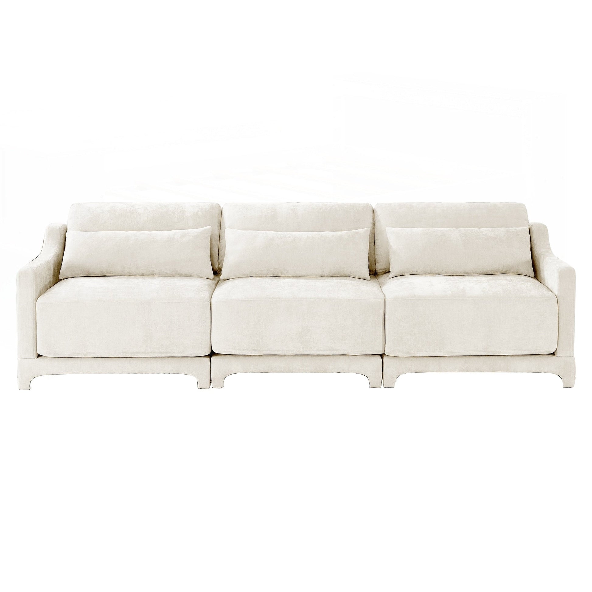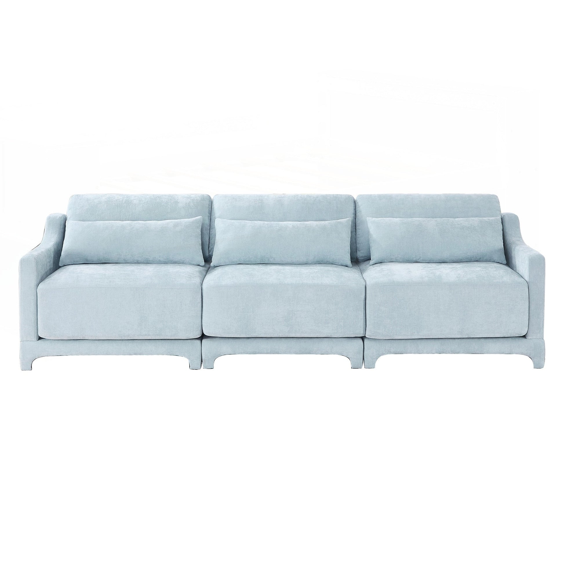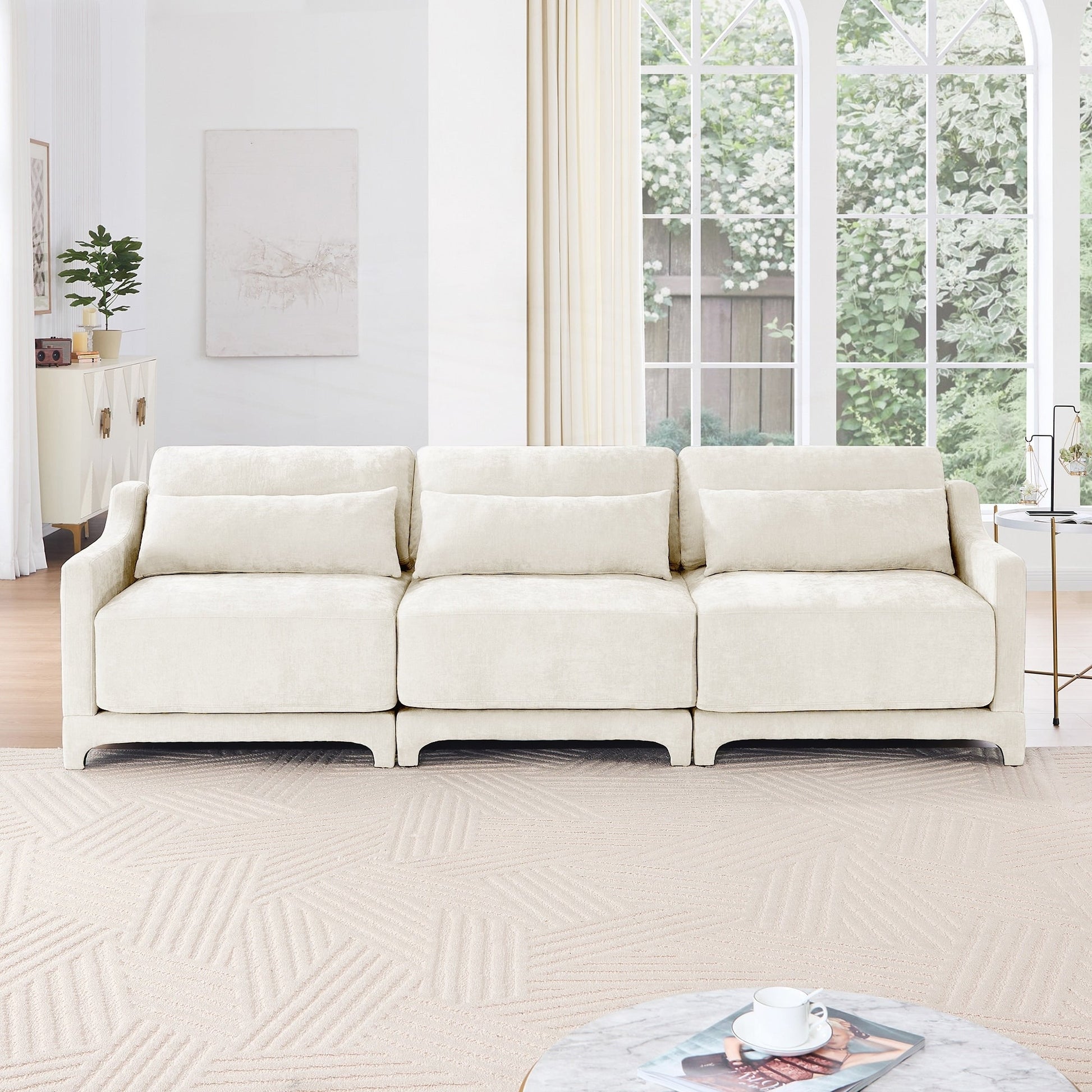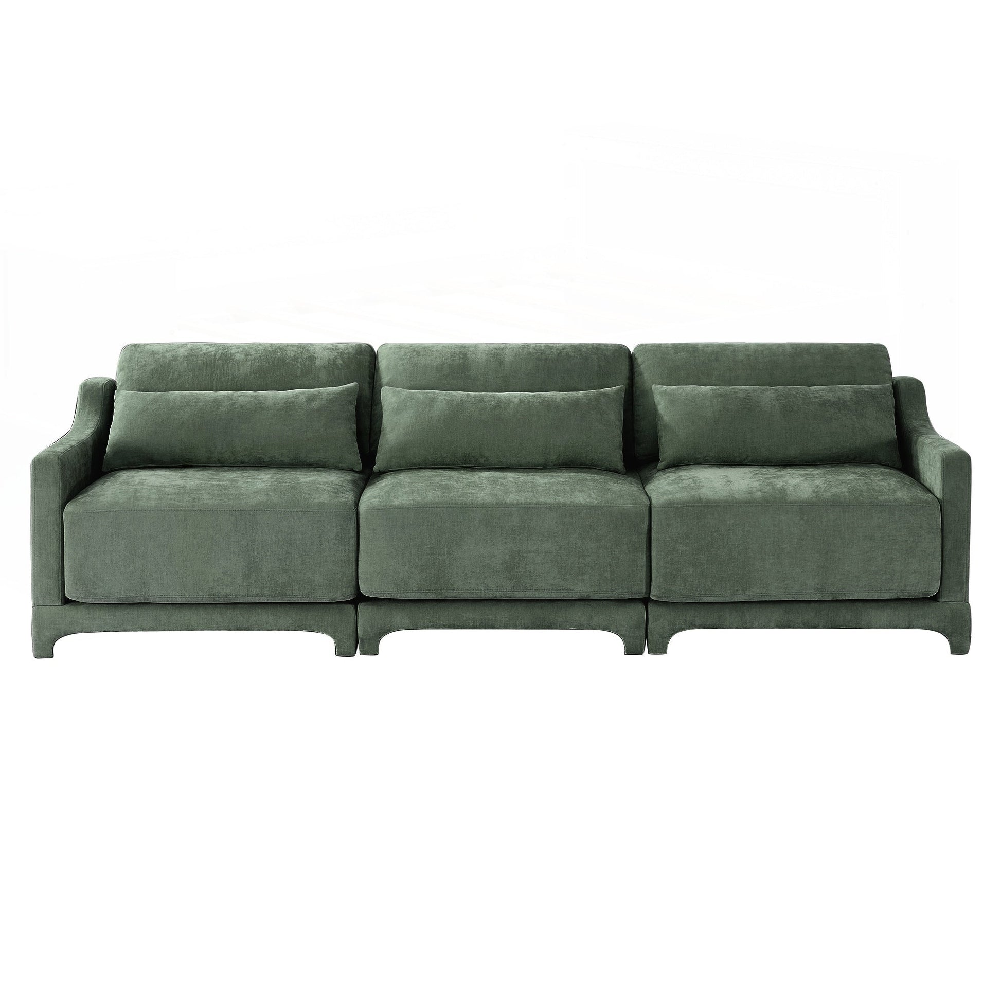 3. Matériaux de haute qualité : Revêtu de chenille dense de première qualité, ce canapé offre un toucher doux et élégant, ainsi qu'une texture unique, pour une assise luxueuse tout au long de l'année. Le tissu durable et résistant à l'usure, associé à des coussins en éponge entièrement compressée et à une structure en bois robuste, garantit confort et fiabilité durables.