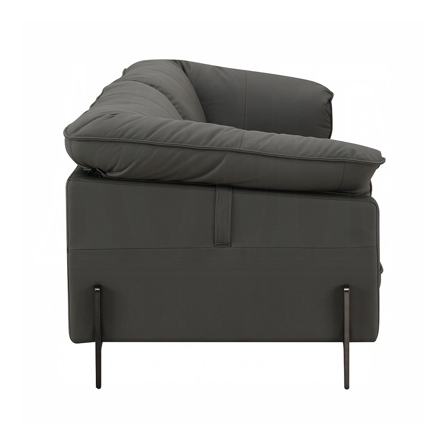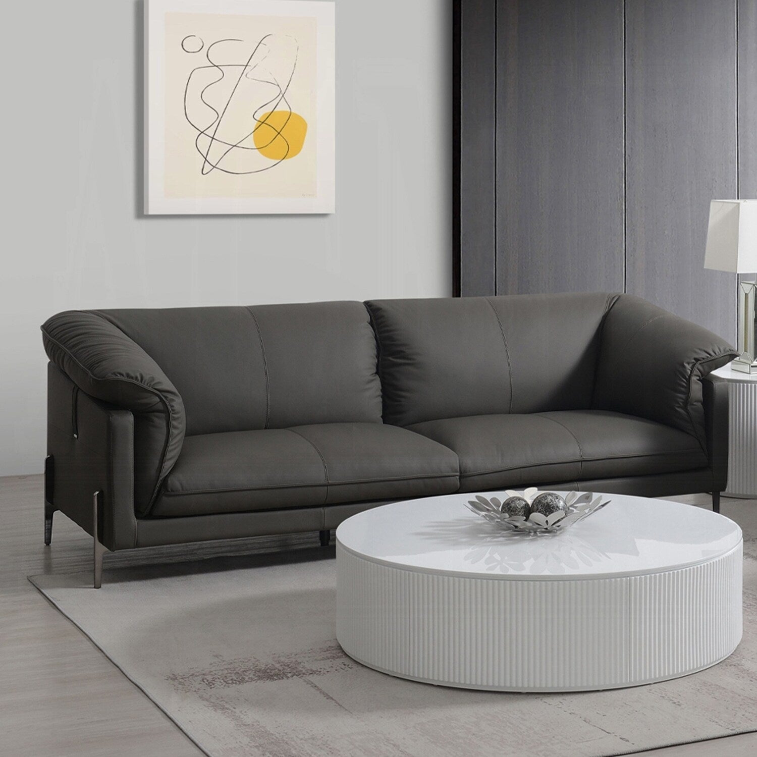 Canapé rembourré en cuir pleine fleur avec pieds en métal noir