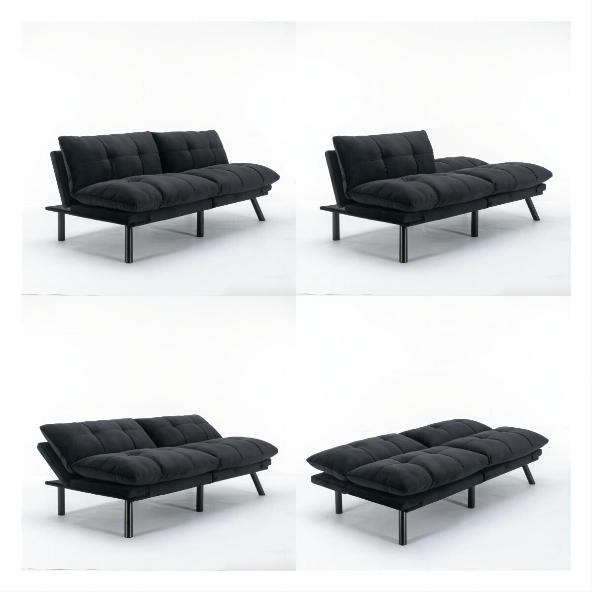 Canapé-lit 2 places rembourré en velours gris, style tendance et moderne, avec dossier réglable et sans accoudoirs