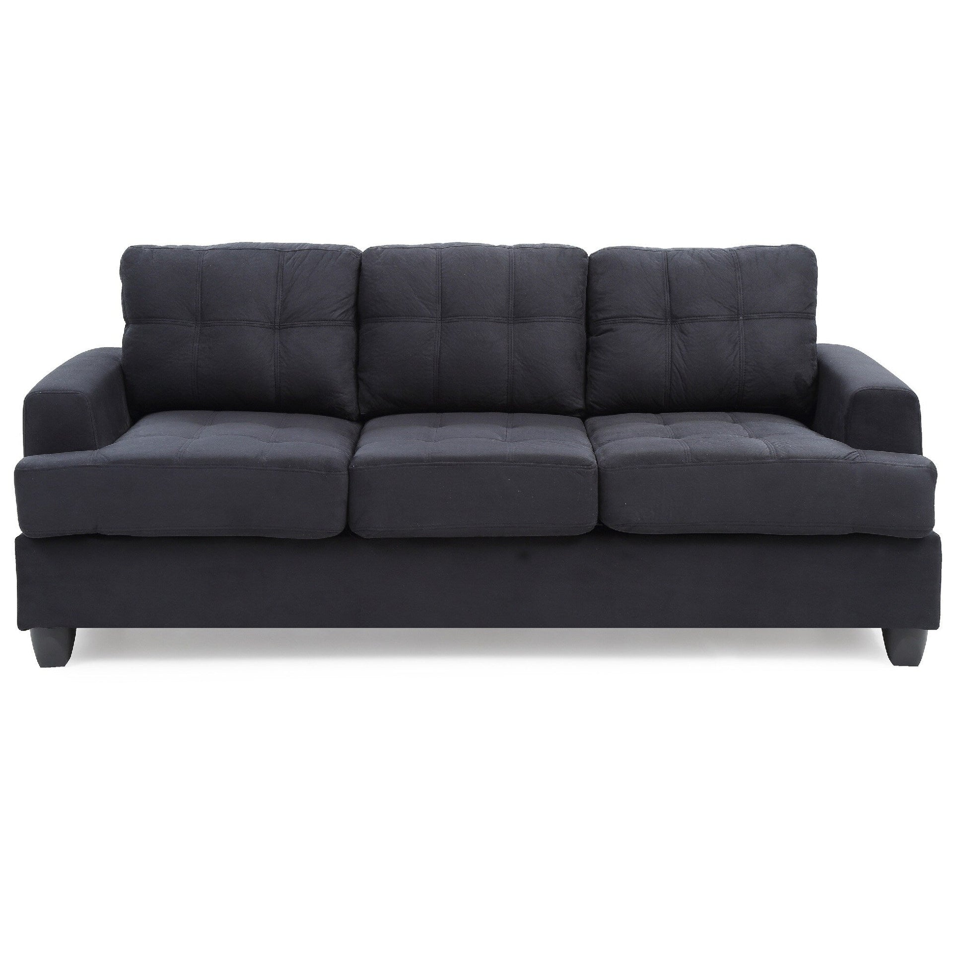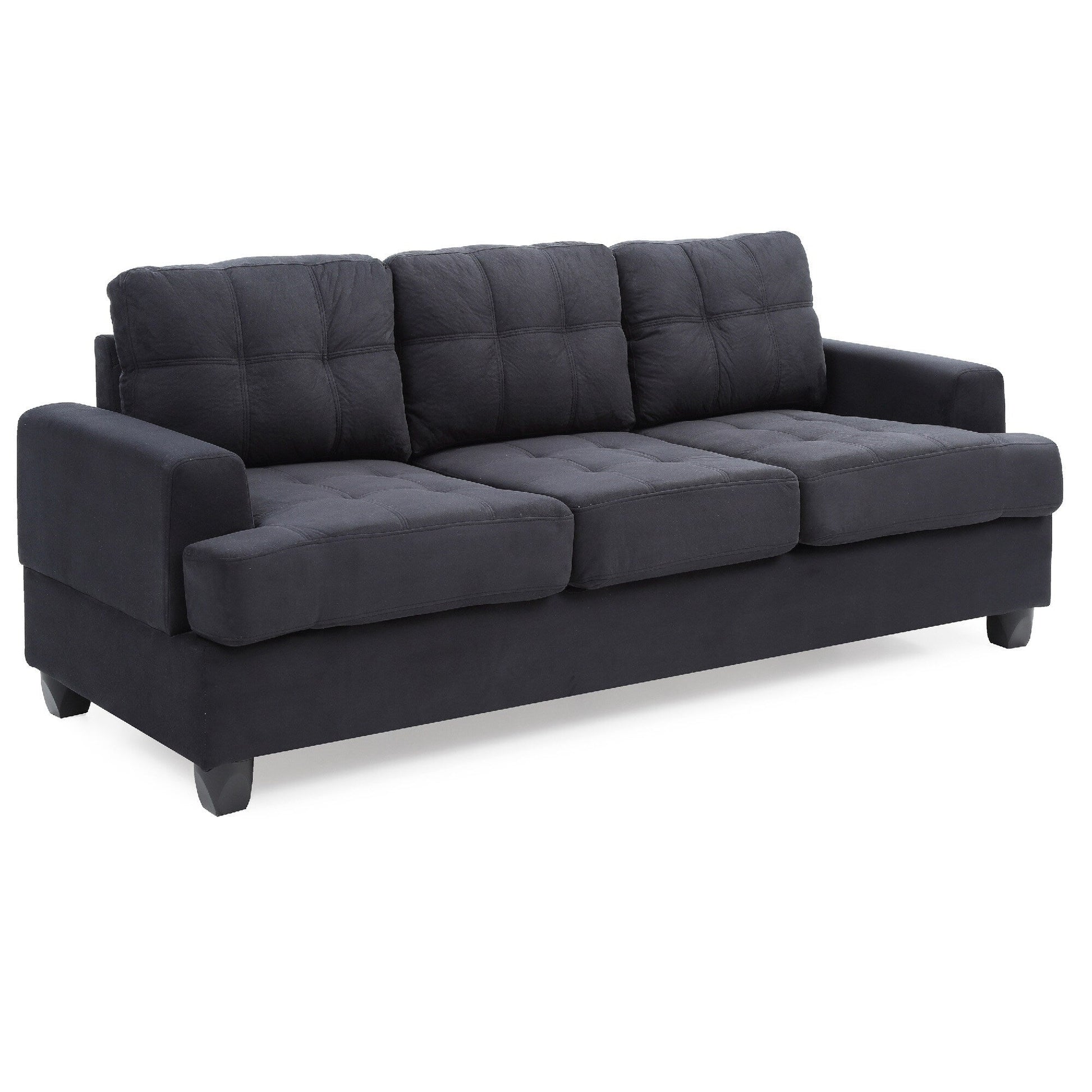 Canapé droit capitonné en microsuède avec accoudoirs carrés - 79 - Noir