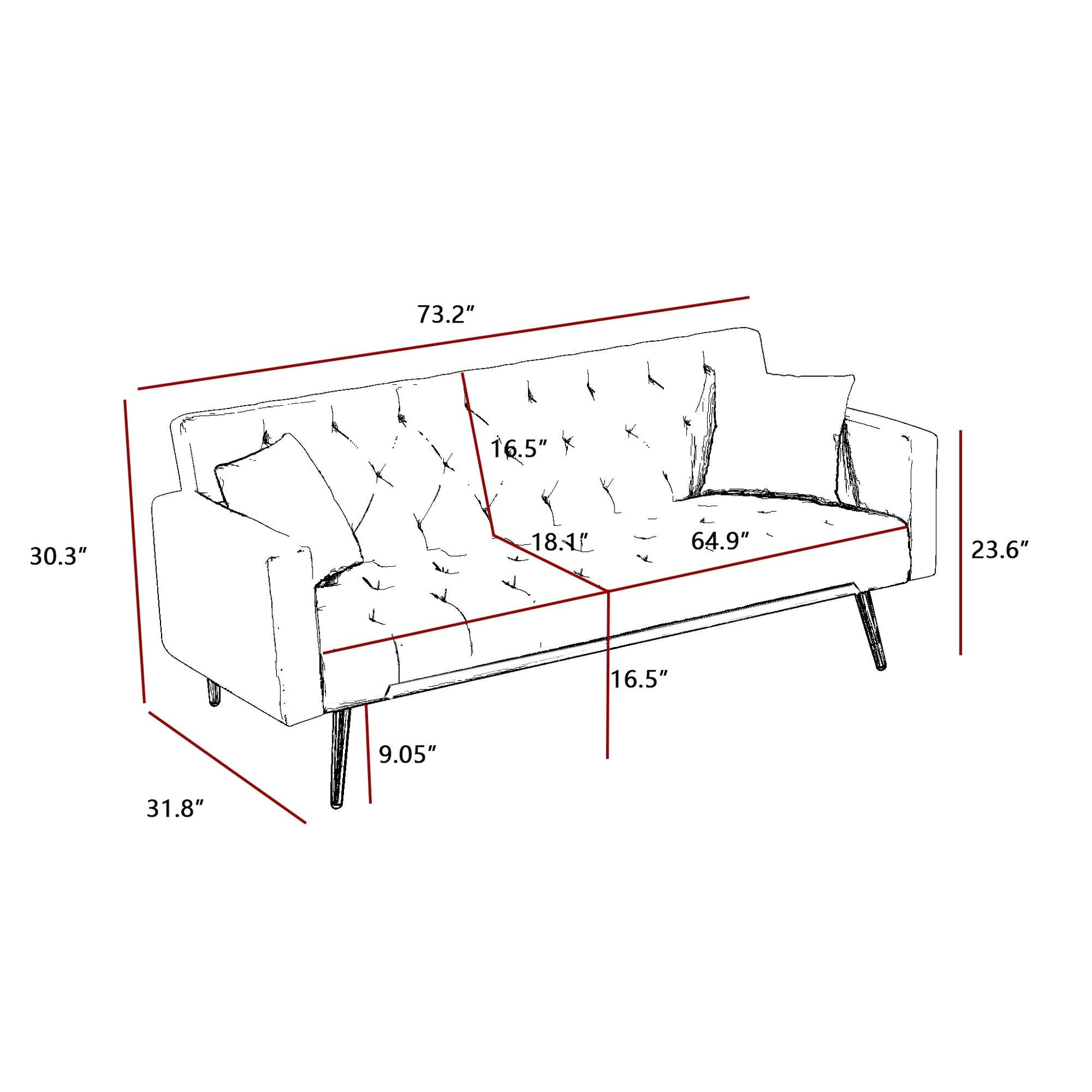 - Dimensions du canapé : 30,3 pouces de haut x 73,2 pouces de large x 31,8 pouces de profondeur