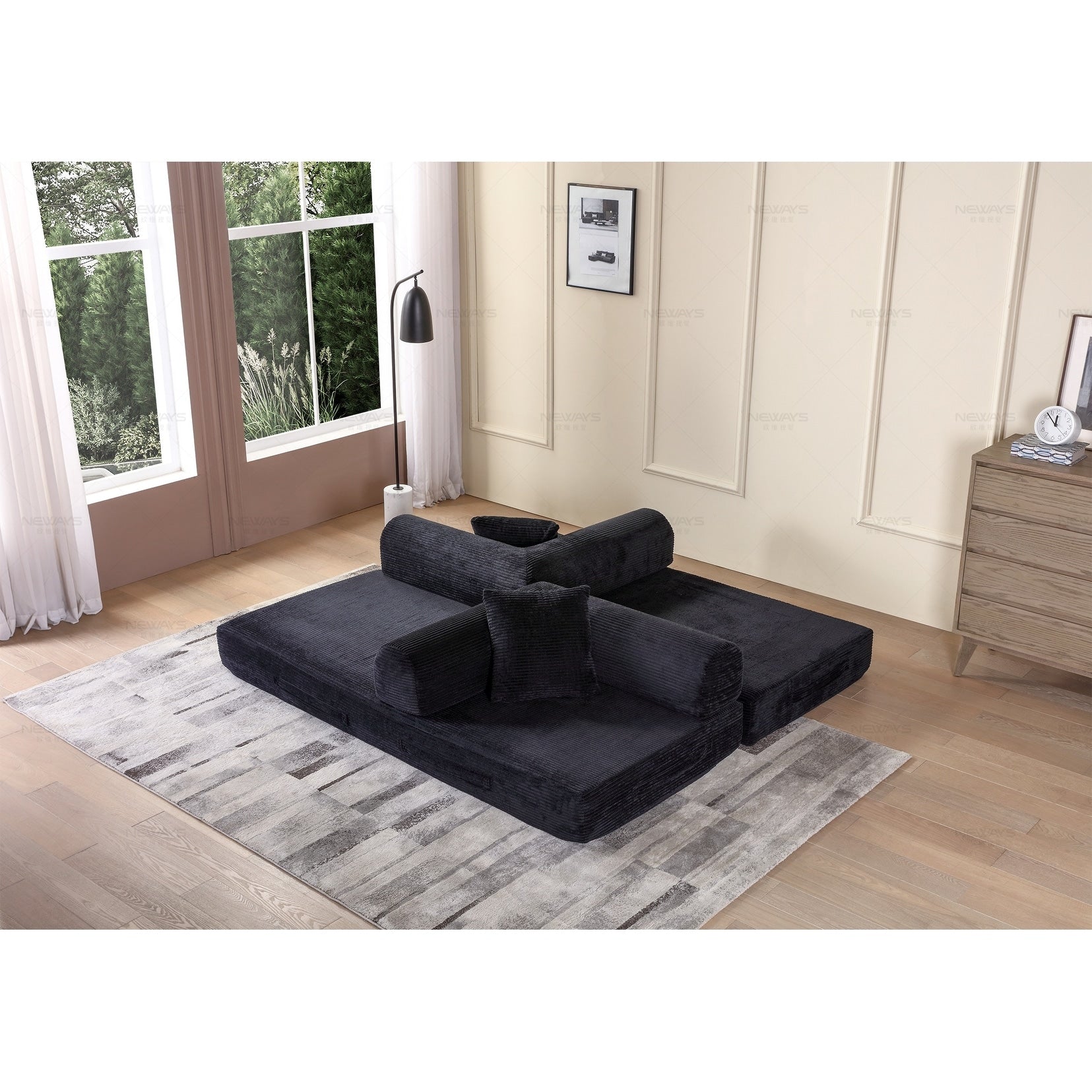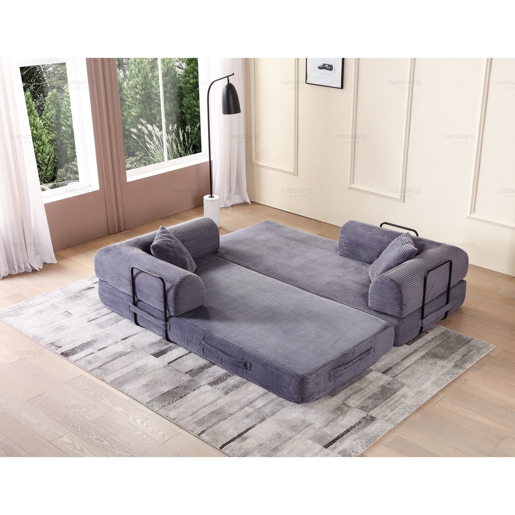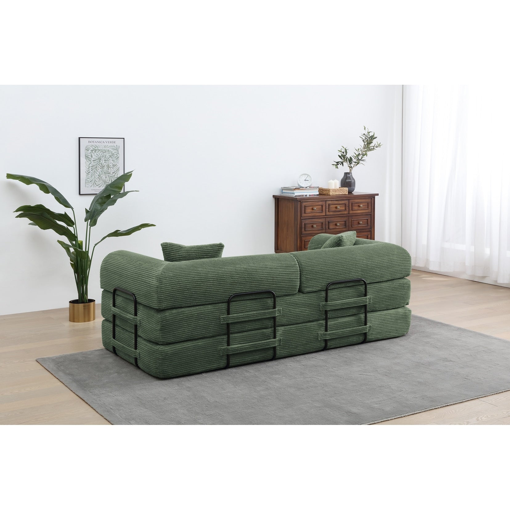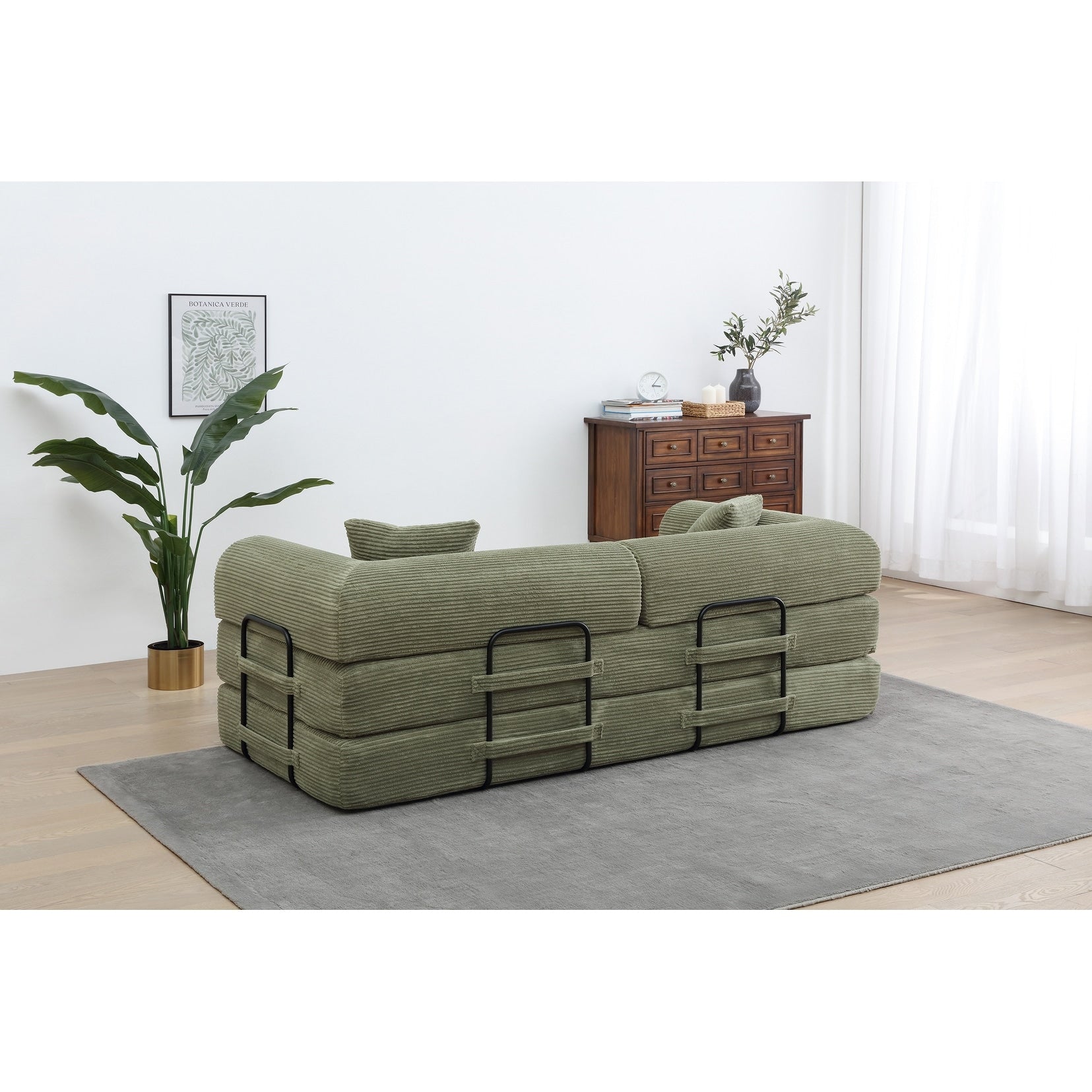 Canapé-lit convertible 2 pièces Twilight, matelas pliant en velours côtelé avec cadre fixe pour un espace de vie confortable.