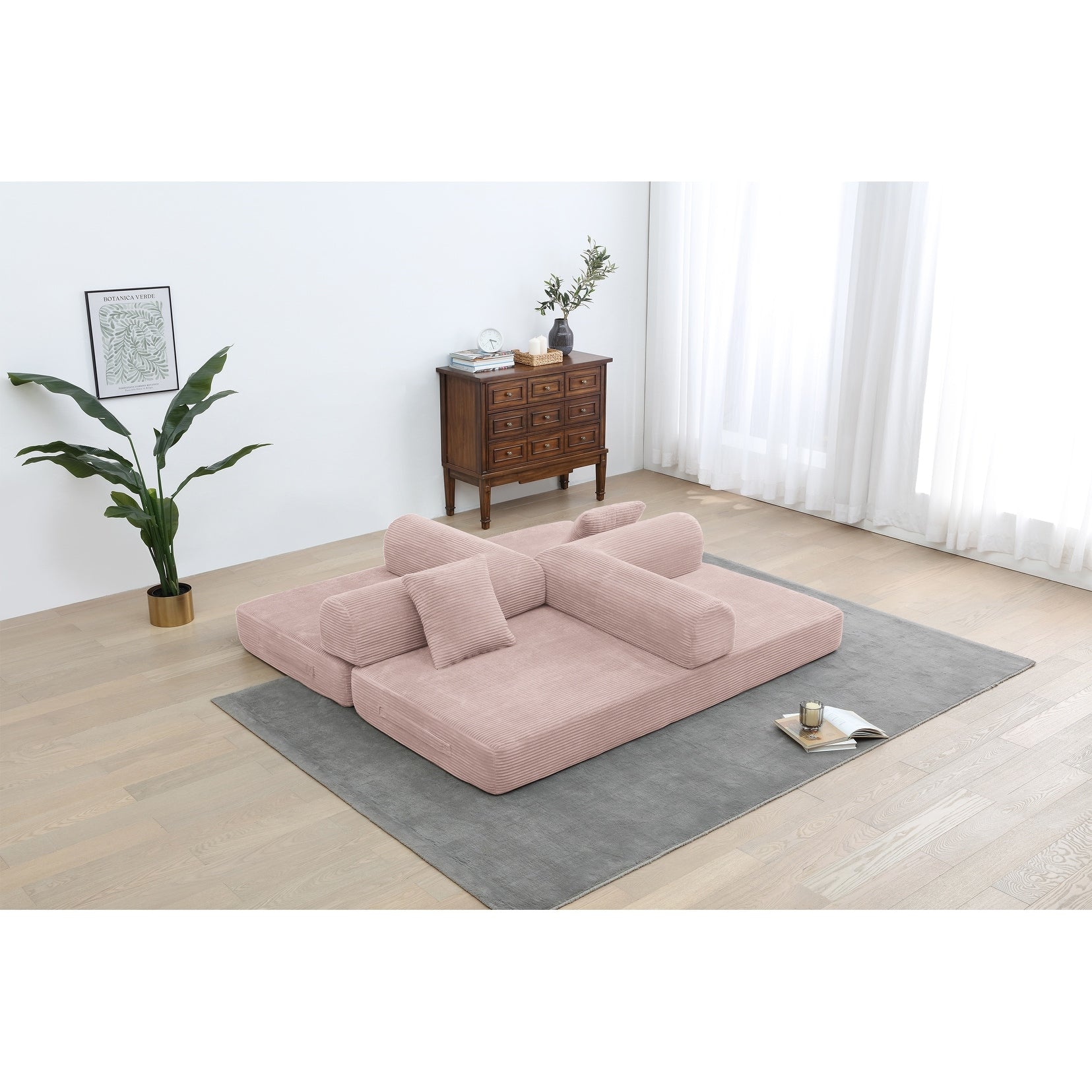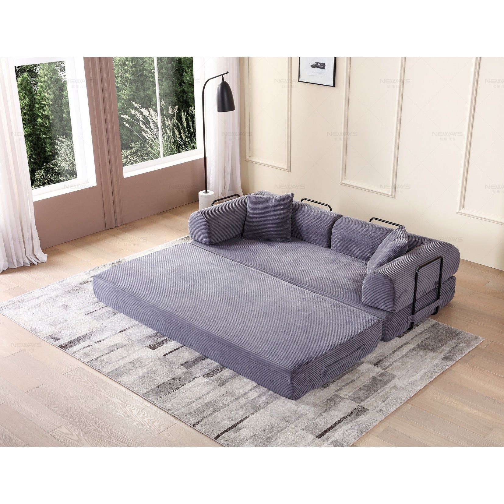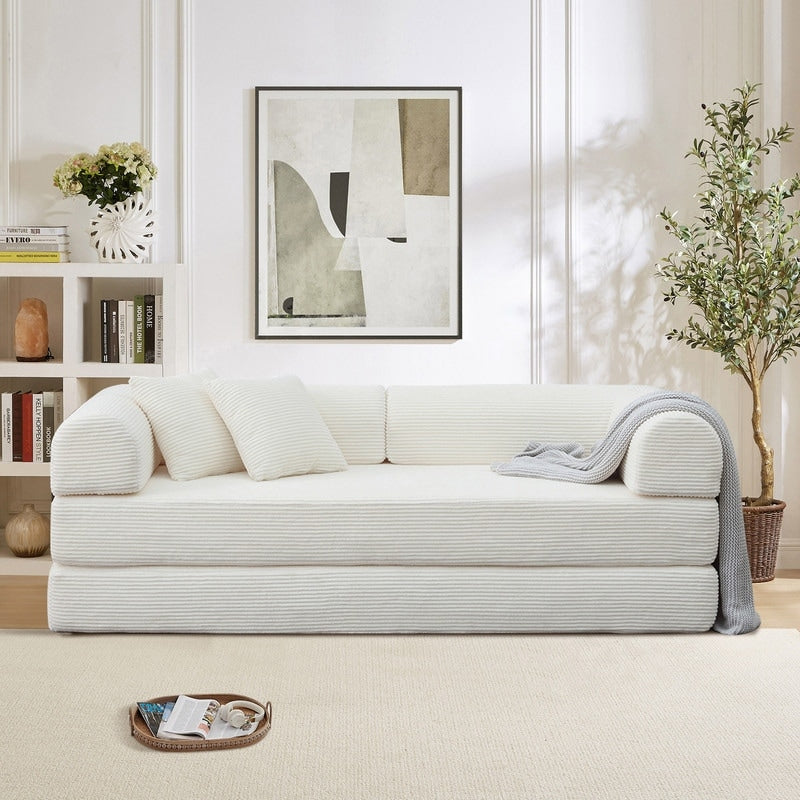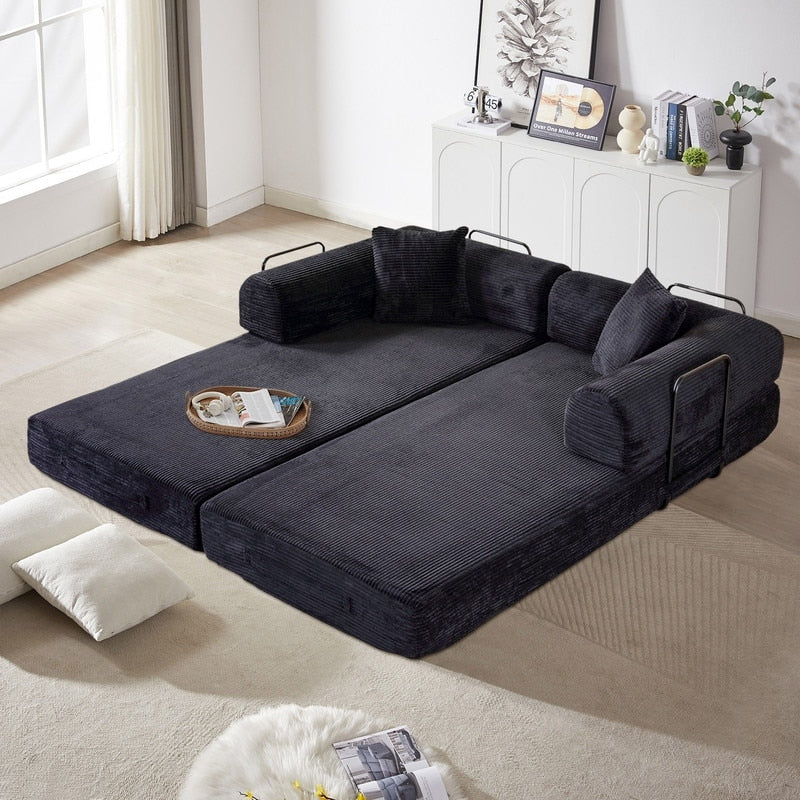 Canapé-lit convertible 2 pièces Twilight, matelas pliant en velours côtelé avec cadre fixe pour un espace de vie confortable.