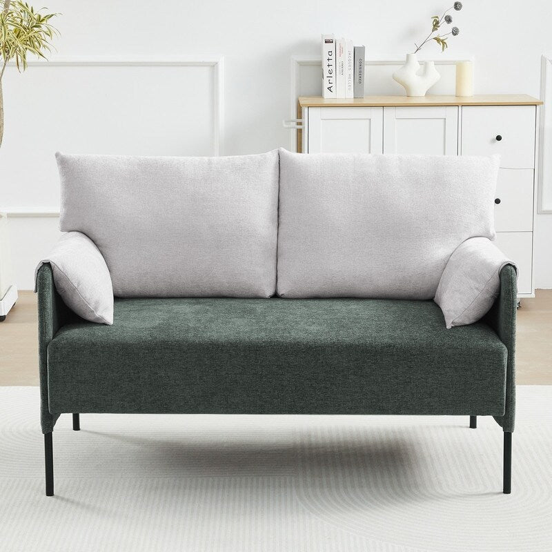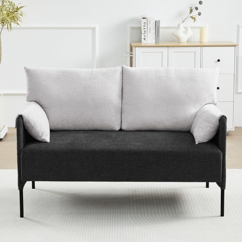 Apportez une touche de style et de confort à votre espace avec ce canapé-causeuse bicolore moderne. Doté d'un design unique aux couleurs contrastées et d'un tissu doux et agréable au toucher, ce canapé-causeuse apporte personnalité et praticité à votre salon, chambre ou espace de travail.
