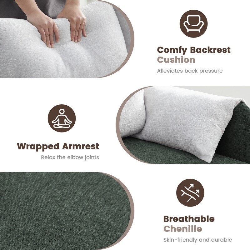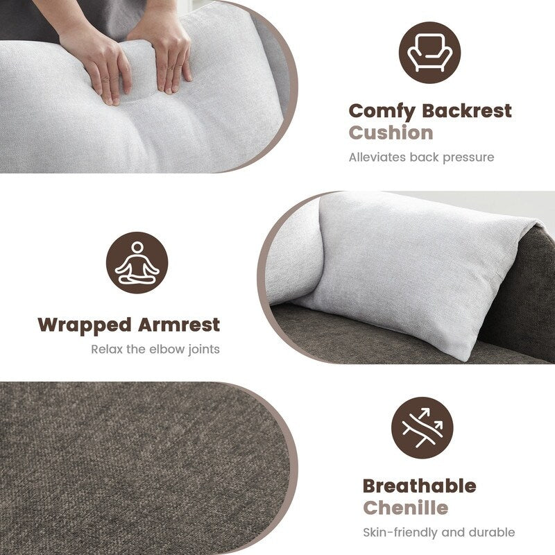 Le dossier légèrement incliné offre un soutien ergonomique pour une assise détendue, tandis que les accoudoirs entièrement enveloppés offrent un confort accru. Que vous vous prélassiez, lisiez ou receviez des invités, cette causeuse allie esthétique et confort au quotidien.