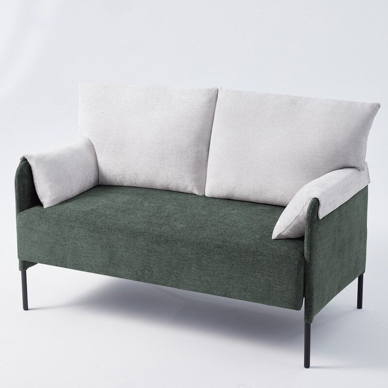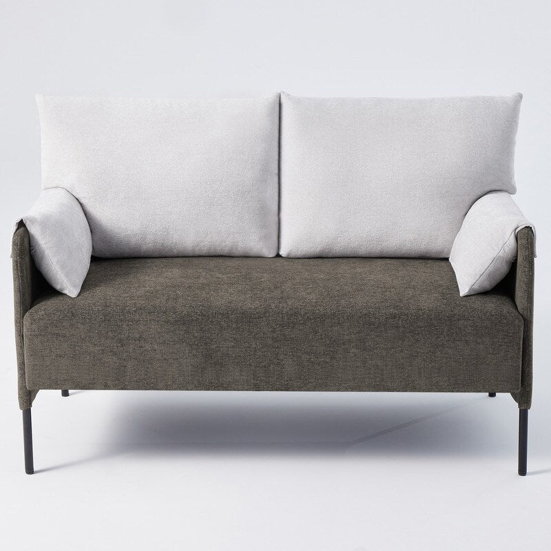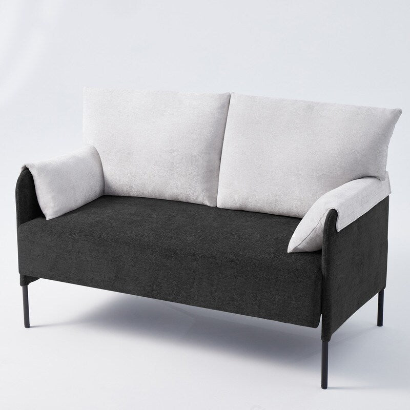 Canapé causeuse bicolore avec accoudoirs enveloppés