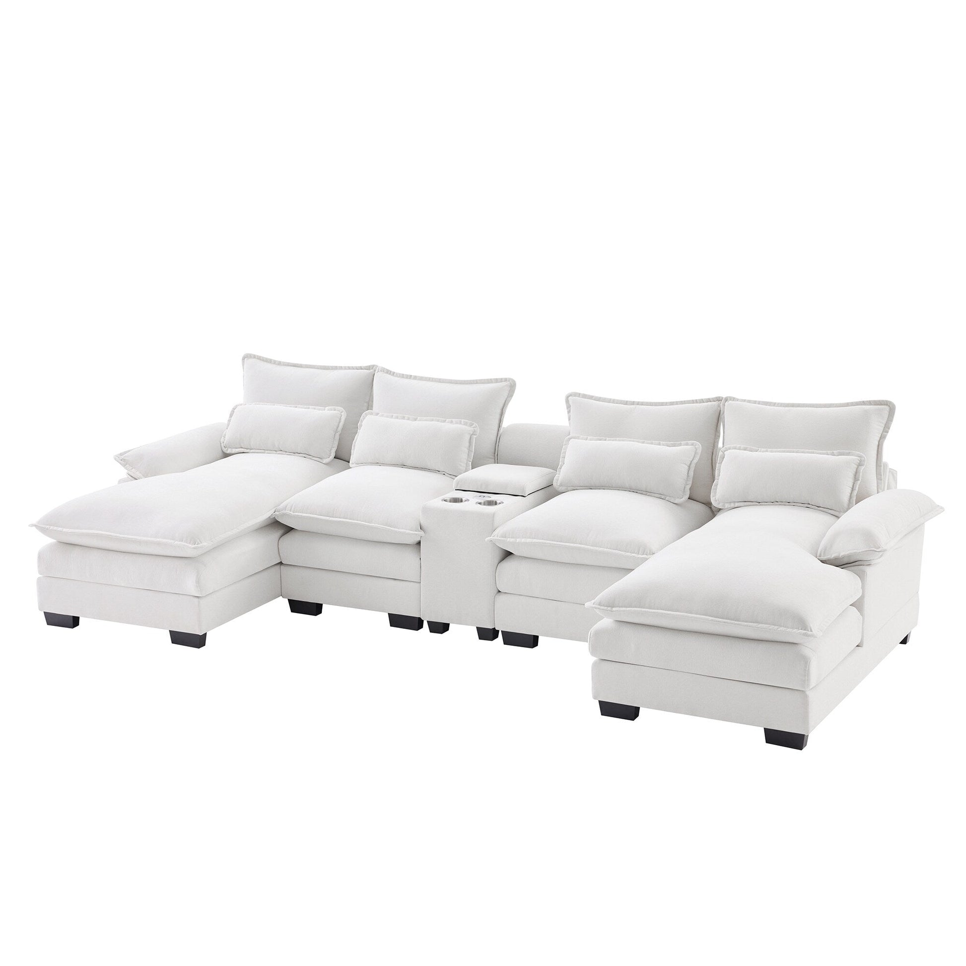 Canapé en U avec console, porte-gobelets et ports USB, mobilier d'intérieur symétrique rembourré, ensemble canapé-lit avec méridienne