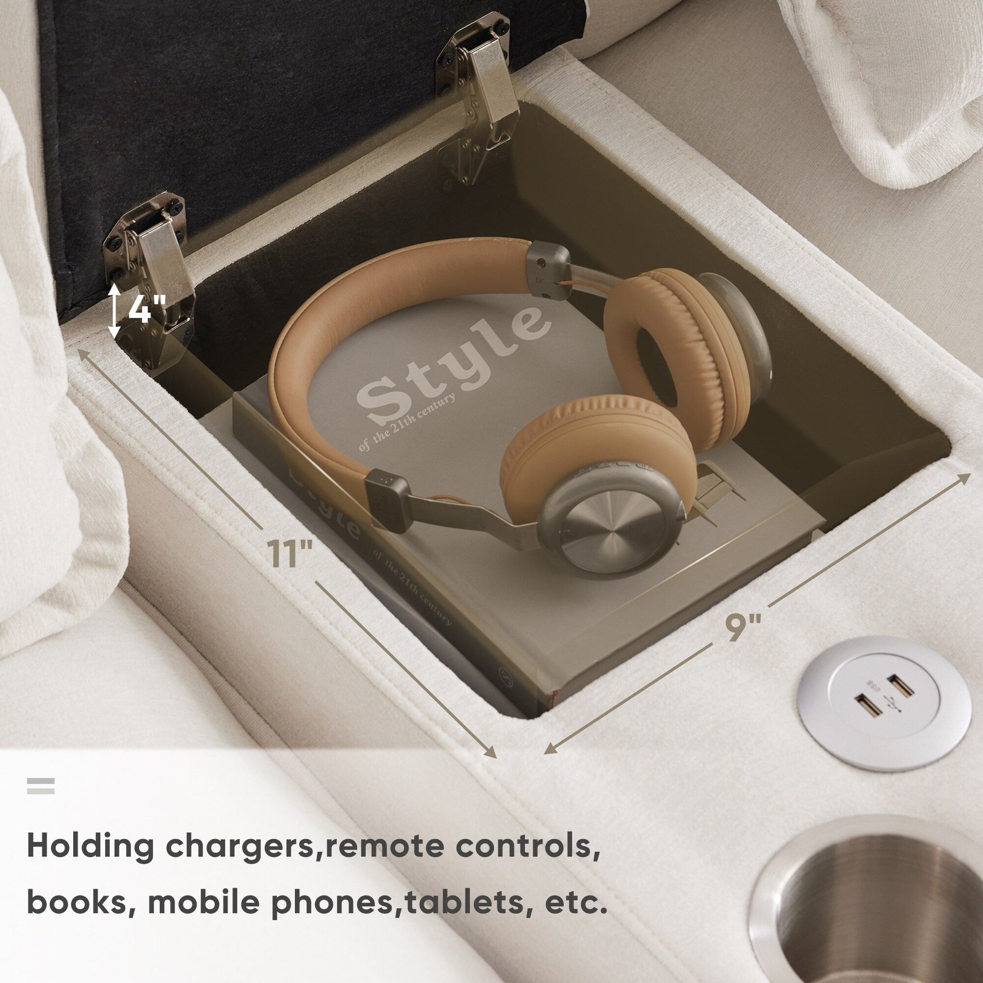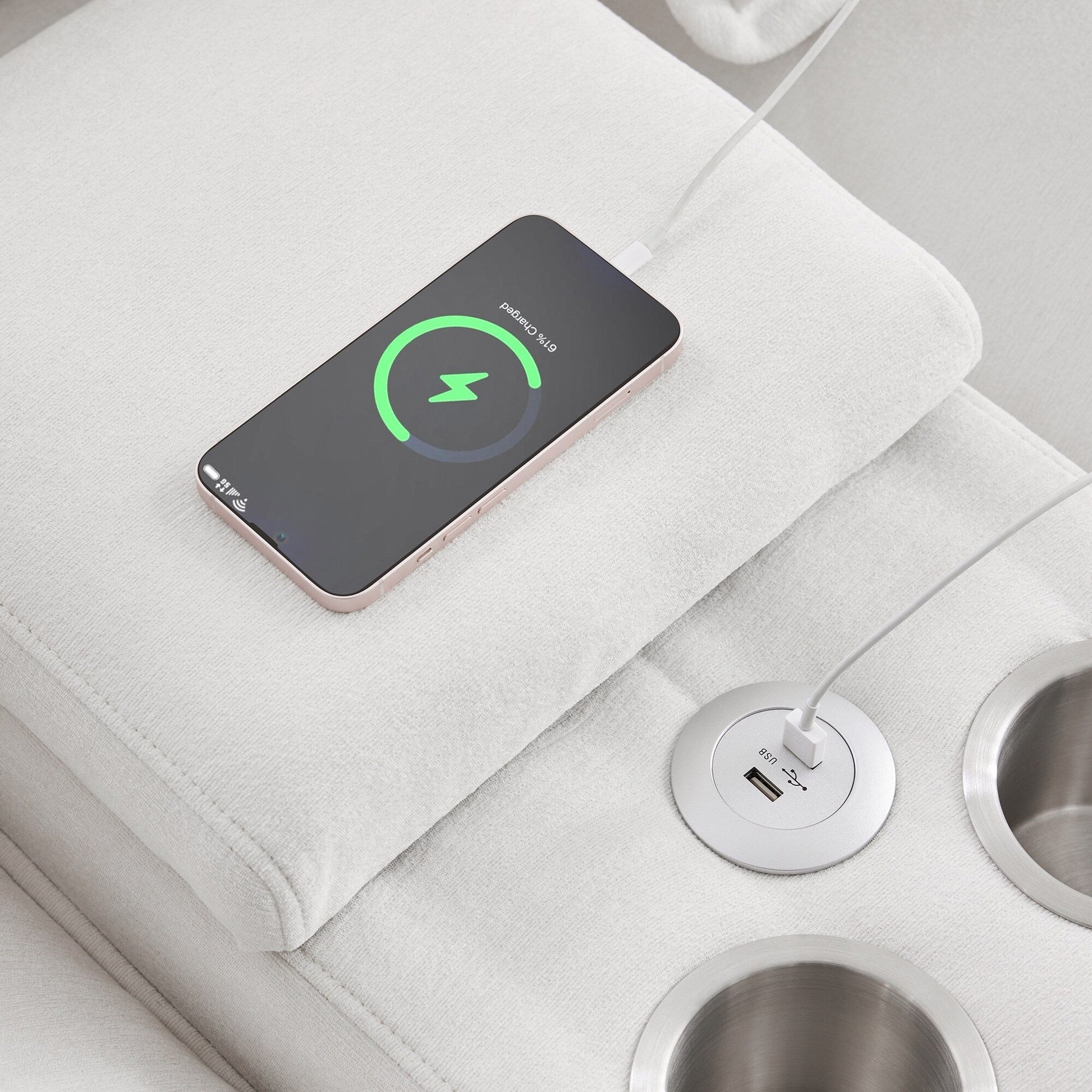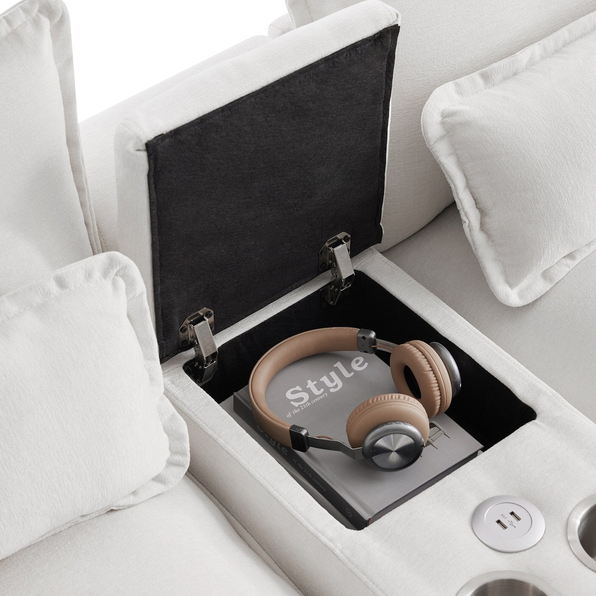 Conçu pour plus de commodité : le canapé est livré avec une console qui peut être rangée, des porte-gobelets et des ports USB pour plus de commodité.