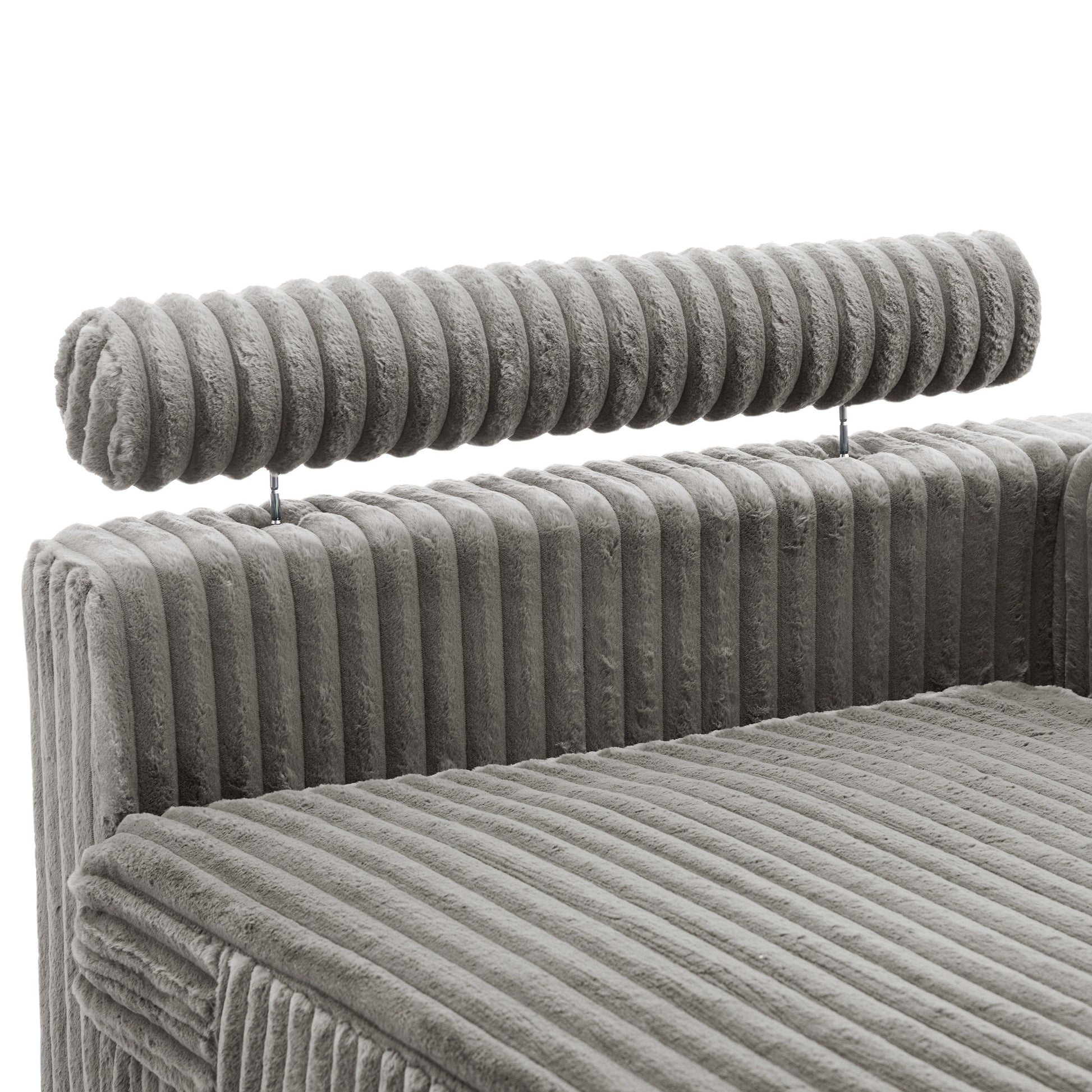 - Des connecteurs métalliques robustes relient solidement les deux sections, tandis que les pieds en bois massif ajoutent une durabilité durable à ce canapé élégant.