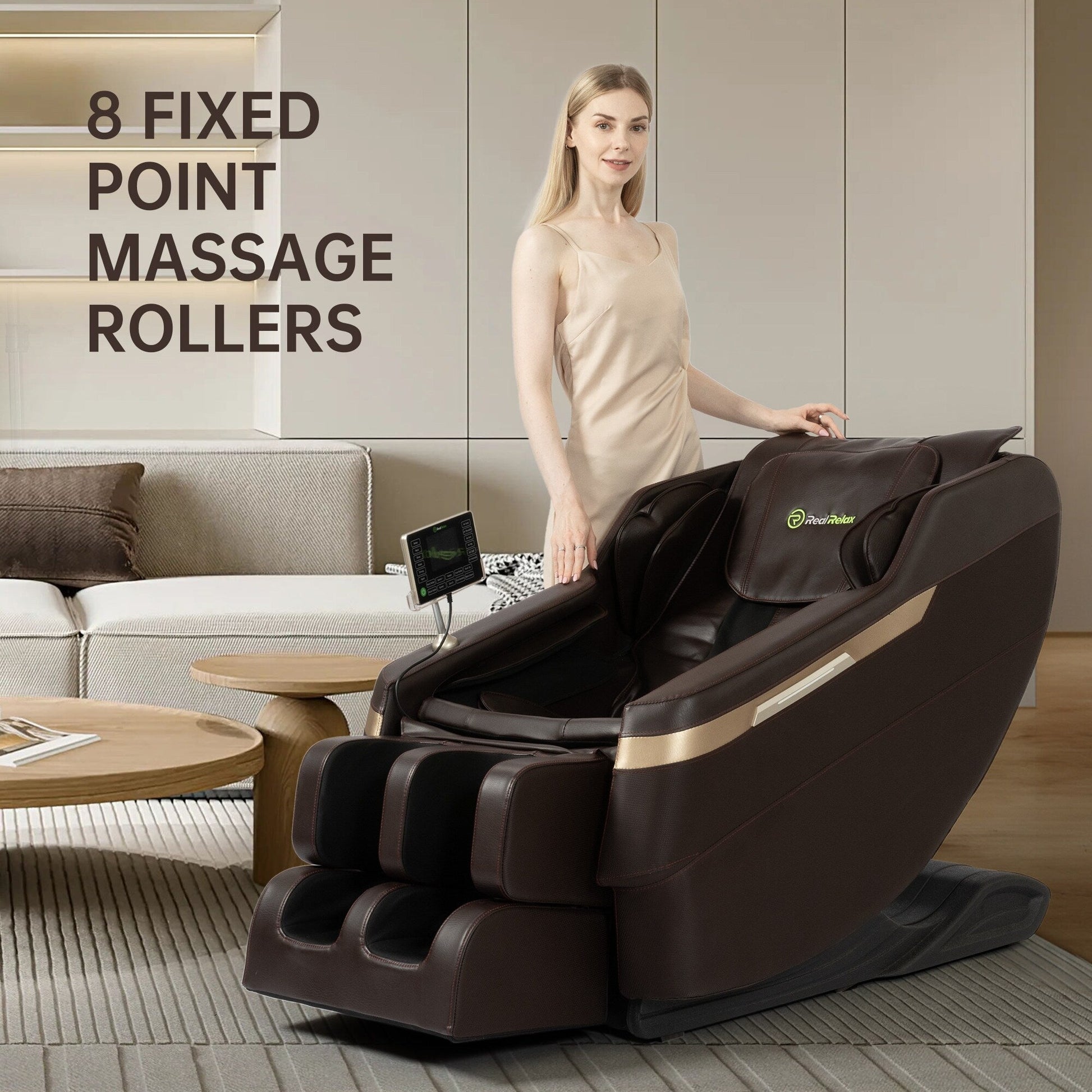 Ce fauteuil de massage haut de gamme offre une expérience luxueuse et personnalisable digne d'un spa, dans le confort de votre domicile, avec un rapport qualité-prix exceptionnel. Doté de 10 rouleaux de massage fixes qui ciblent les zones de la nuque jusqu'aux pieds, il vous permet de personnaliser le style et la durée de votre massage selon vos préférences. Le système avancé de compression par airbag ondulatoire agit de manière rythmique sur tout le corps, tandis que le chauffage à température constante intégré au niveau de la taille et des mollets favorise la relaxation en apaisant les muscles fatigués. Conçu pour s'adapter à vos différents besoins, il permet de passer facilement d'une expérience de massage à l'autre d'une simple pression sur un bouton. La fonction zéro gravité profonde crée une sensation d'apesanteur. Après votre séance, le fauteuil reste incliné pour un repos optimal. Il peut également servir de fauteuil inclinable confortable pour se détendre au quotidien. Livré entièrement assemblé et facile à installer, il constitue un cadeau idéal. Mesurant 86 x 160 x 109 cm, il accueille confortablement les utilisateurs mesurant entre 1,55 et 1,75 m, alliant technologie innovante et praticité pour une détente ultime.