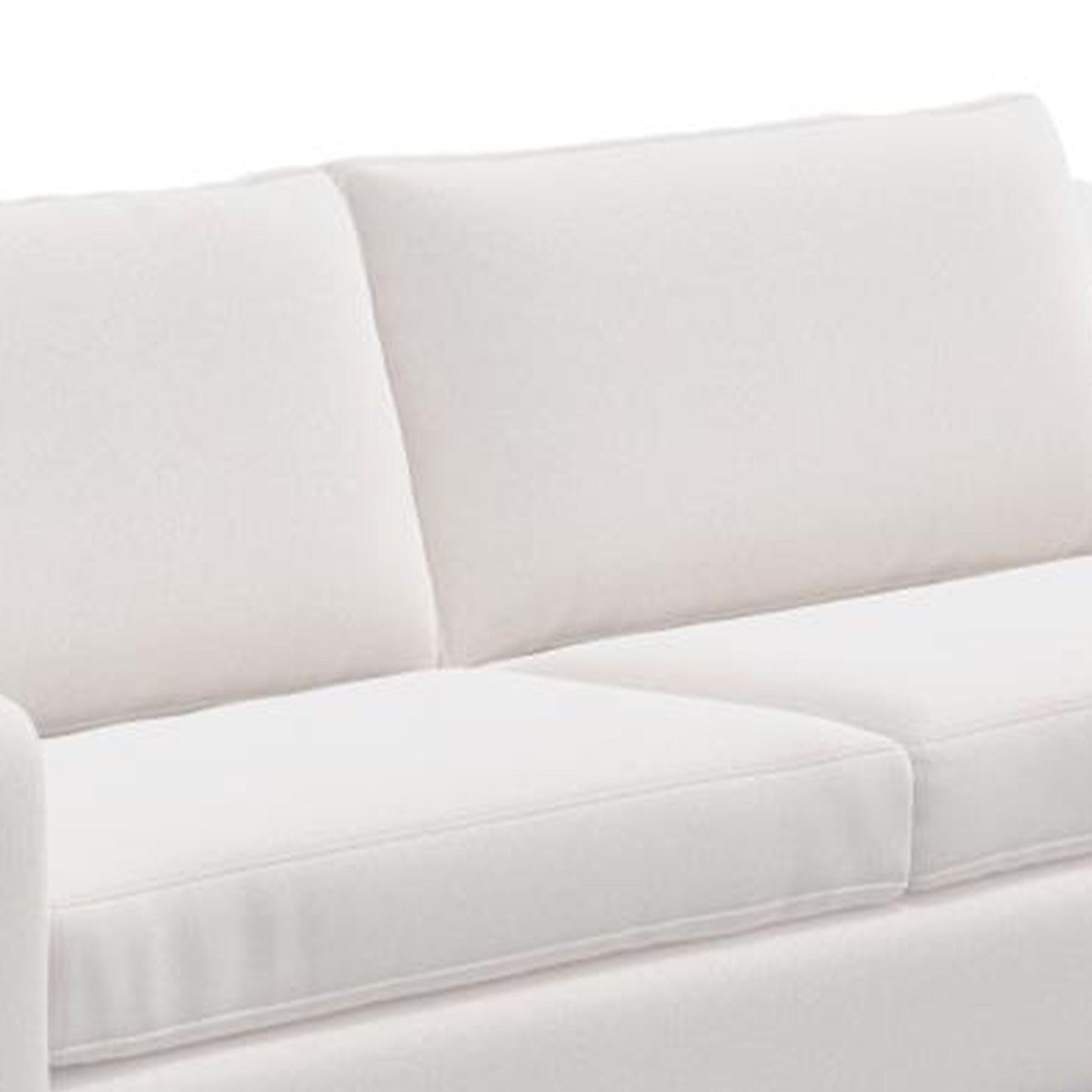 Canapé Umey, 2 coussins décoratifs, polyester blanc moderne et épuré, bois massif