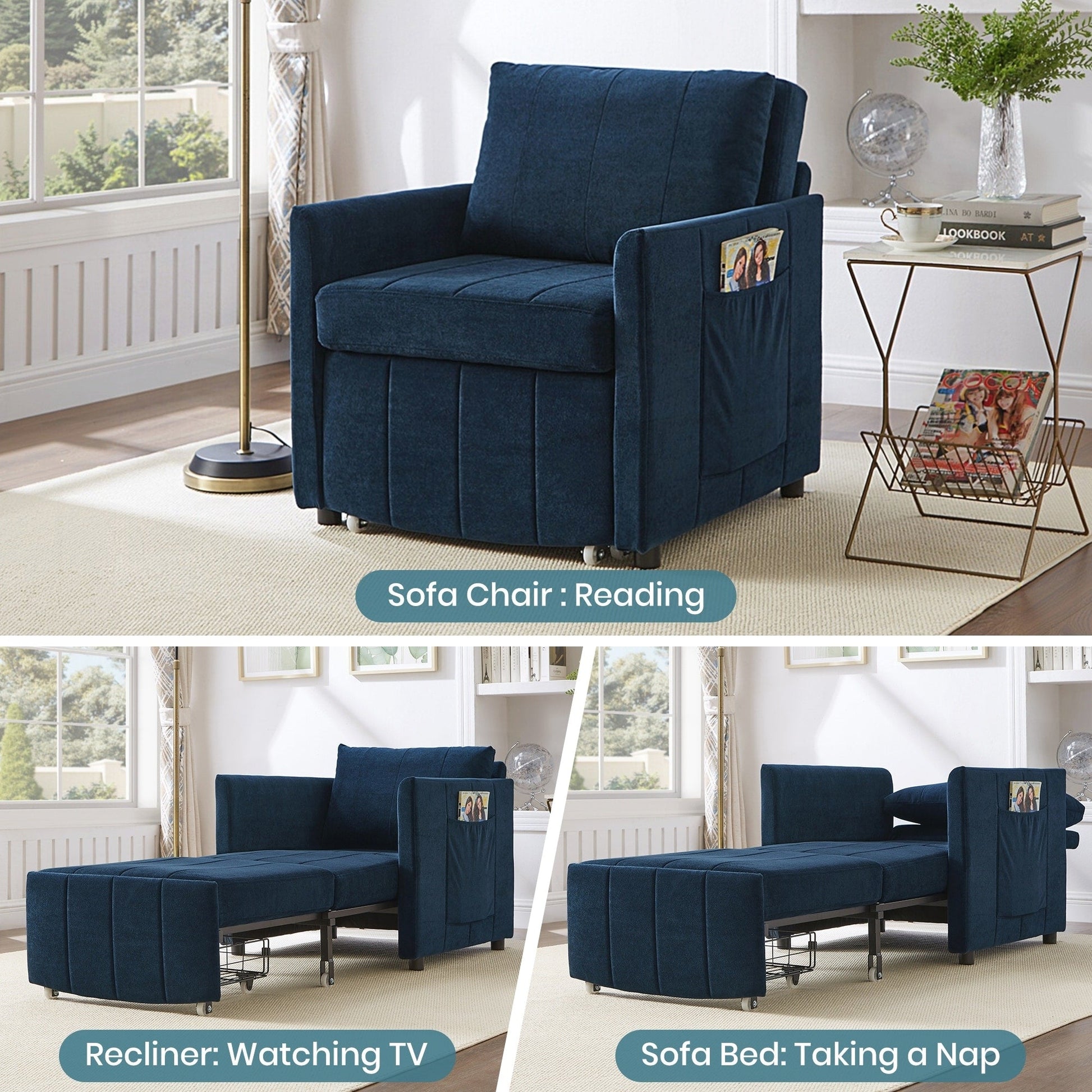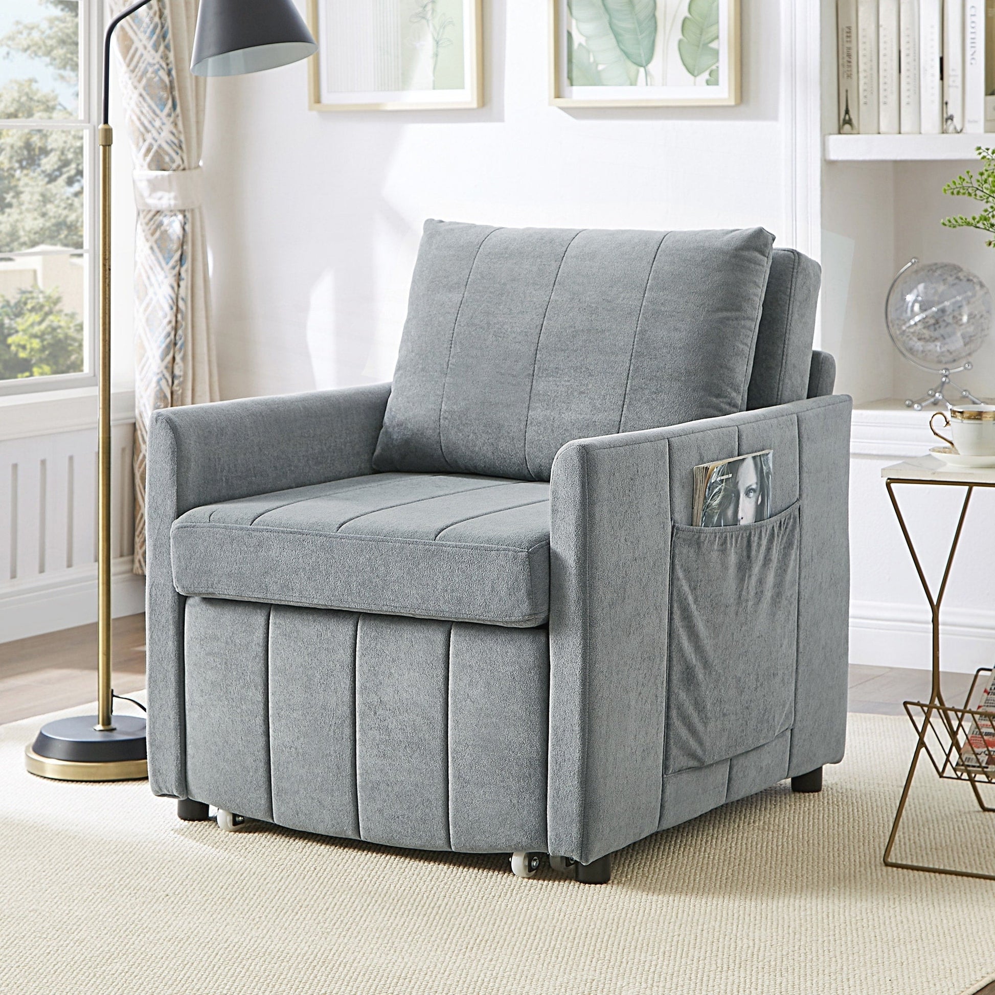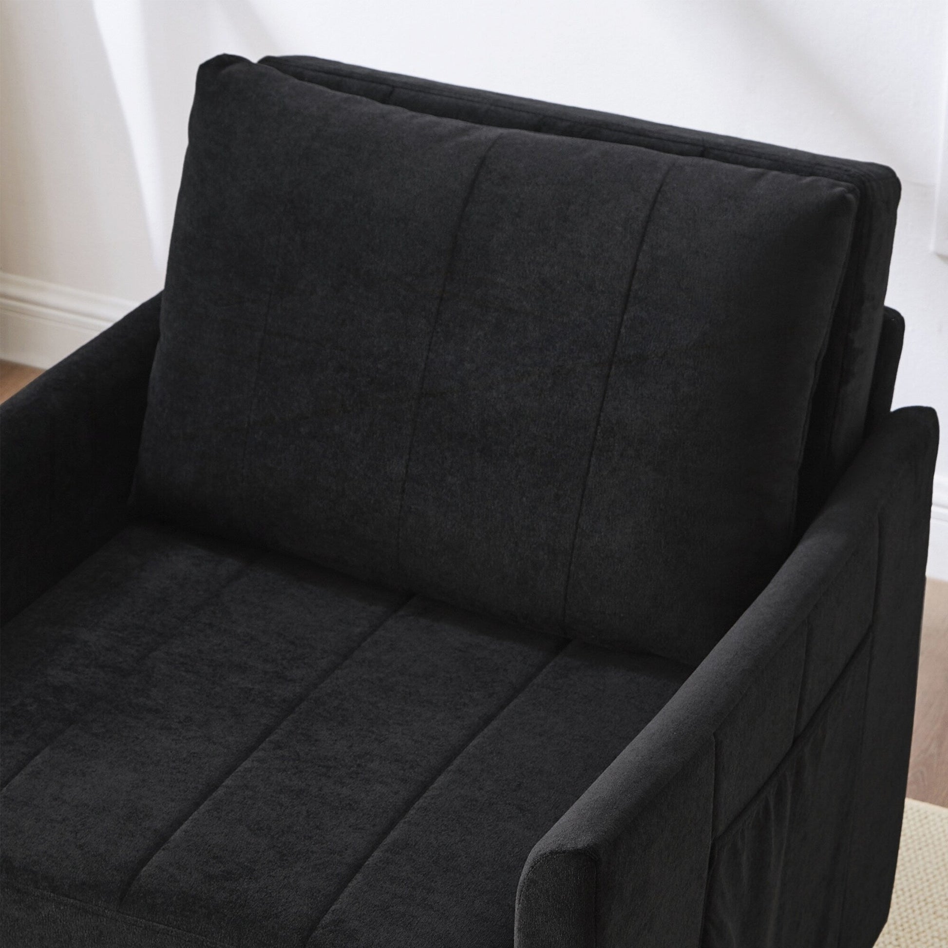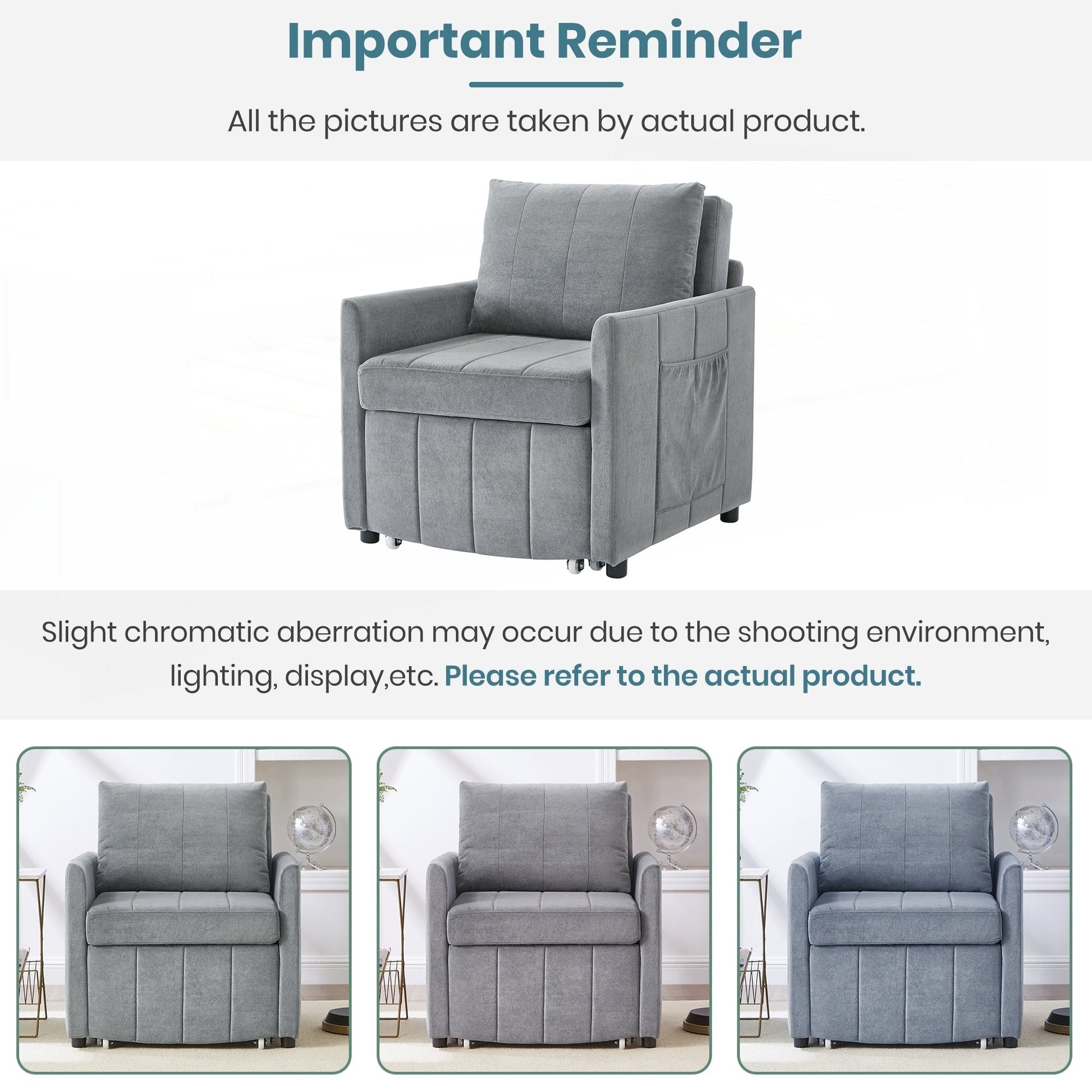 Ce canapé polyvalent est conçu pour répondre à divers besoins grâce à ses fonctionnalités multifonctionnelles. Il se transforme facilement d'une assise confortable en fauteuil inclinable, et peut également se transformer en lit simple, ce qui en fait la solution idéale pour les petits espaces ou pour accueillir des invités. Le dossier offre cinq positions d'inclinaison réglables, vous permettant de trouver le confort idéal, que vous soyez assis droit ou complètement allongé. Le canapé est également doté de poches latérales pratiques et d'un panier de rangement sous le canapé-lit, pour un espace organisé et épuré. Revêtu d'un tissu chenille doux et résistant, il allie élégance et confort durable, un atout élégant et pratique pour tout intérieur.