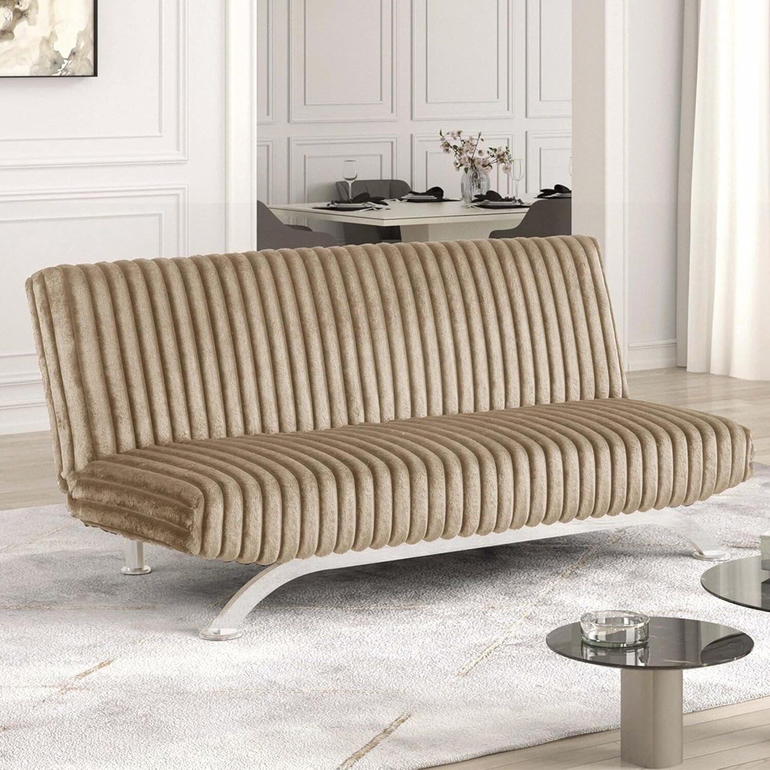 Simple et moderne, ce canapé futon convertible est doté d'un dossier capitonné vertical et de pieds en métal robustes. Transformable en lit, il vous permet de dormir tranquillement après un dîner. C'est le canapé-lit idéal pour accueillir des invités !