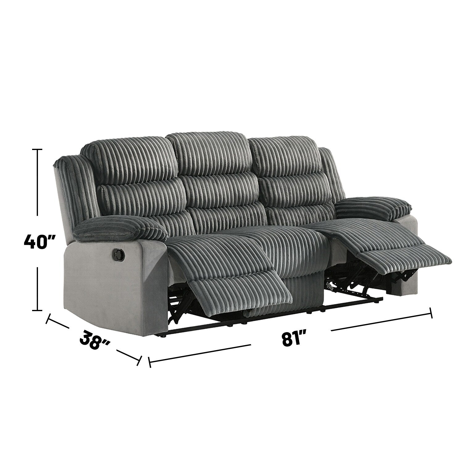 Canapé rembourré à commande manuelle avec accoudoirs coussinés, gris