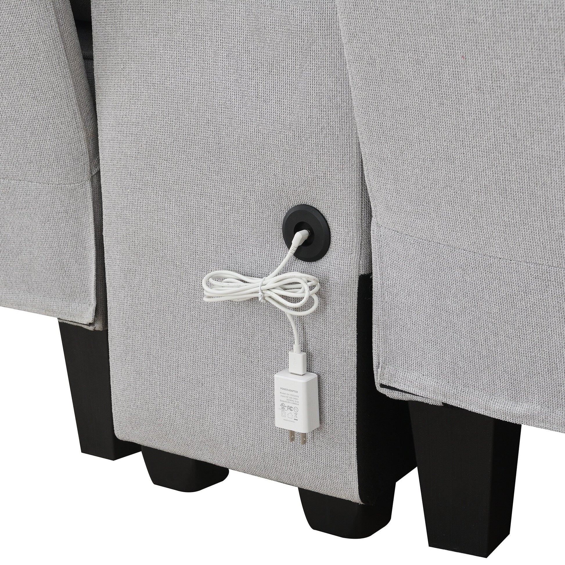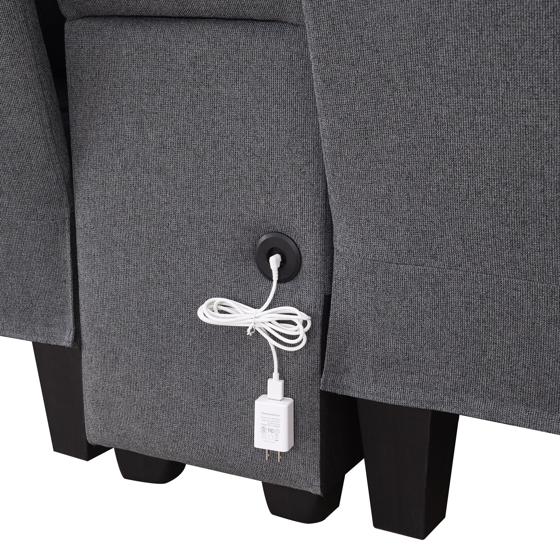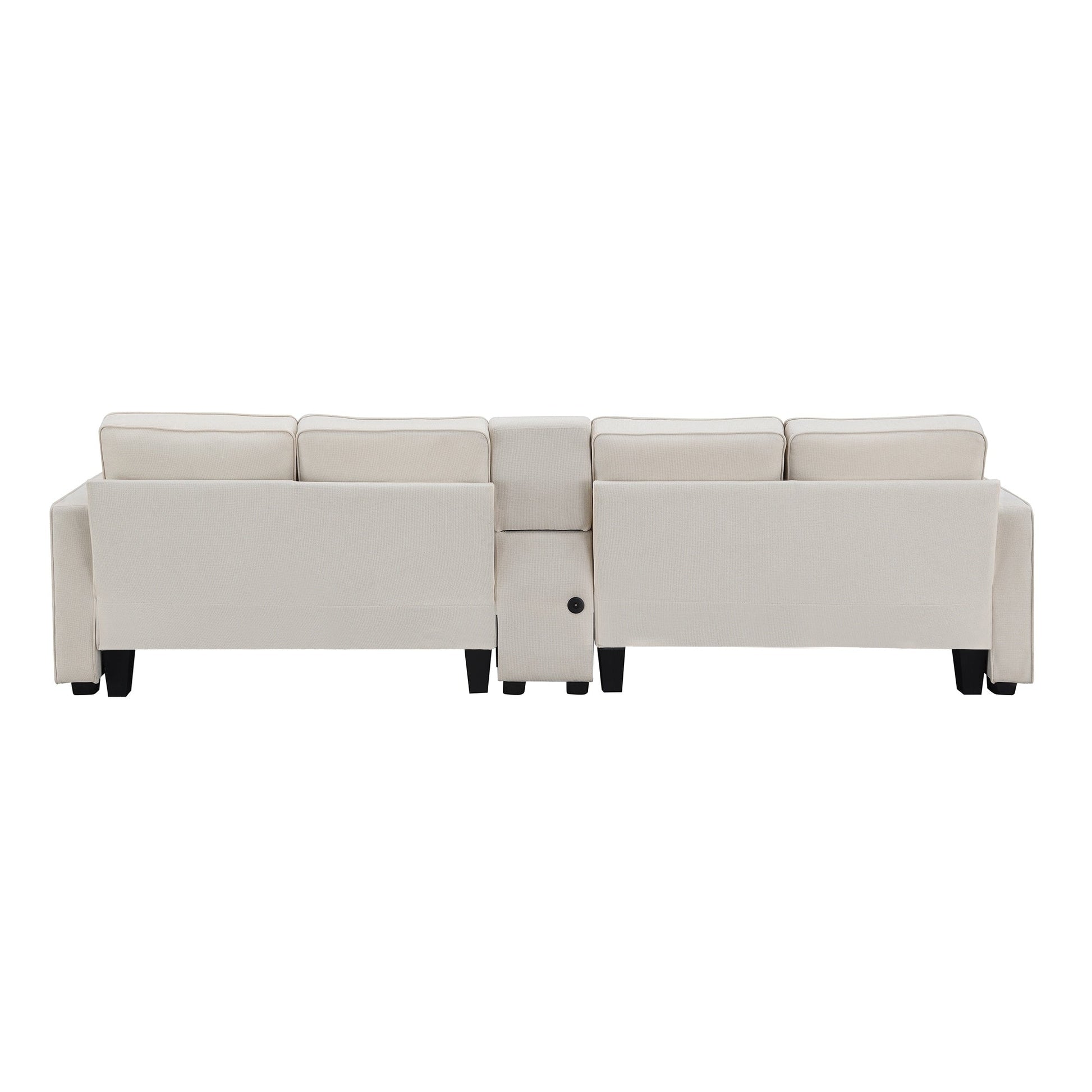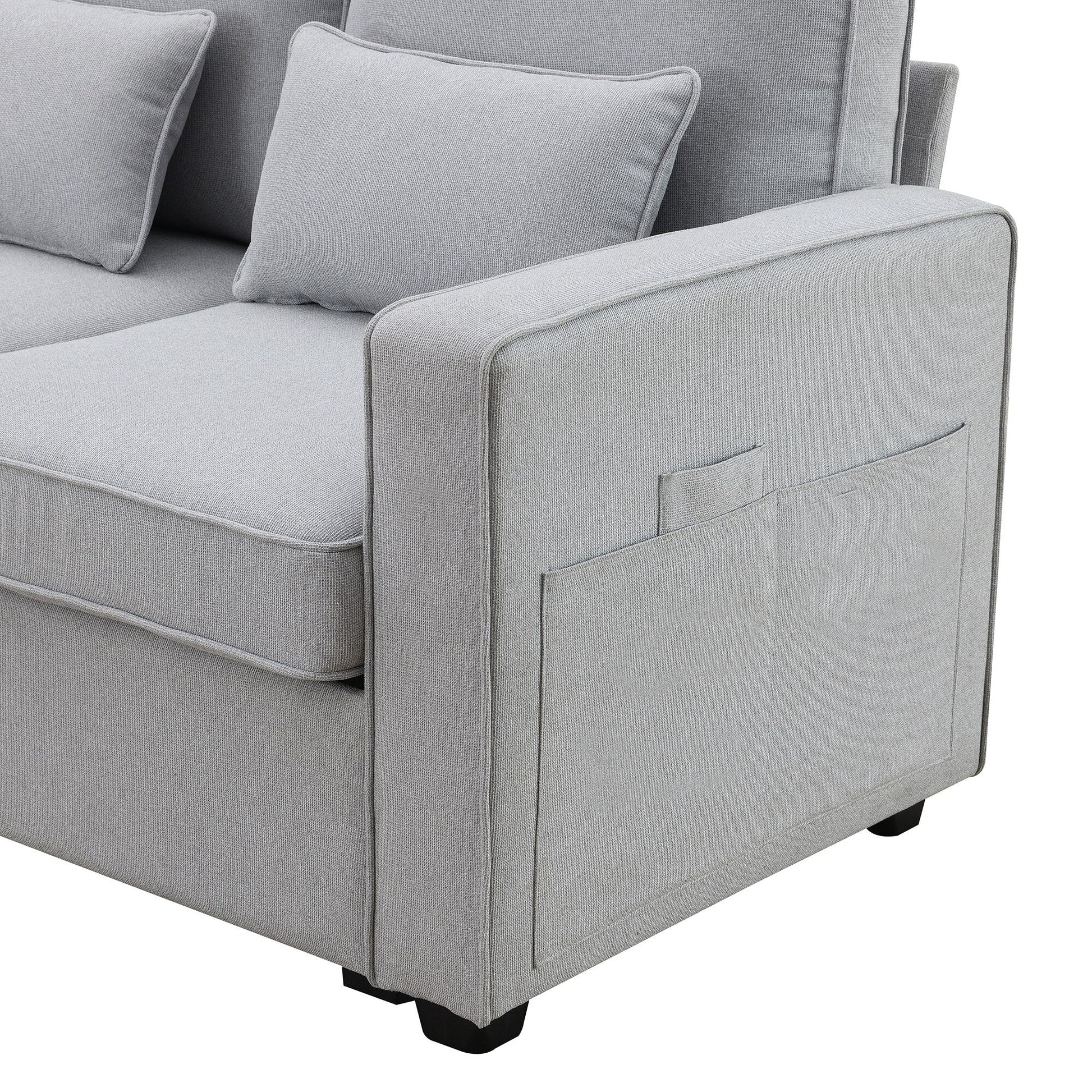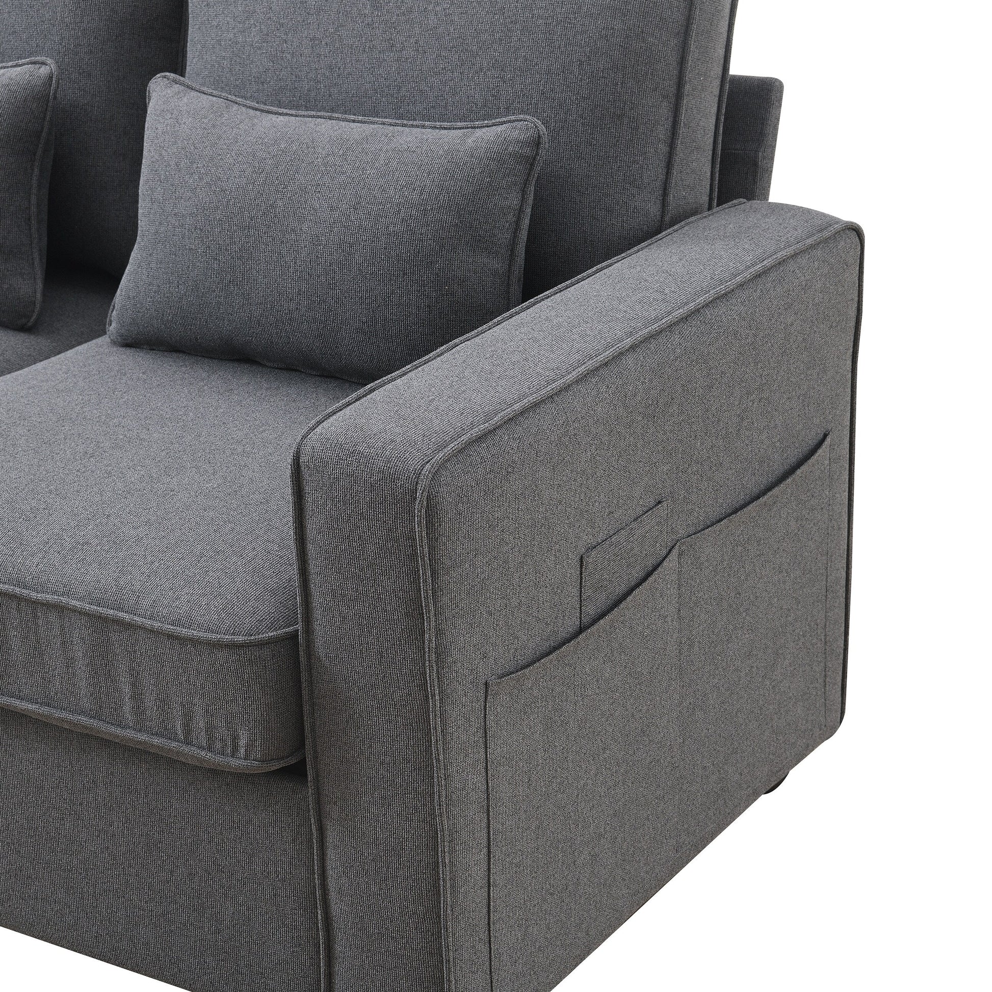 Canapé rembourré avec console, 2 porte-gobelets et 2 ports USB, chargement filaire ou sans fil, canapés en lin avec 4 coussins