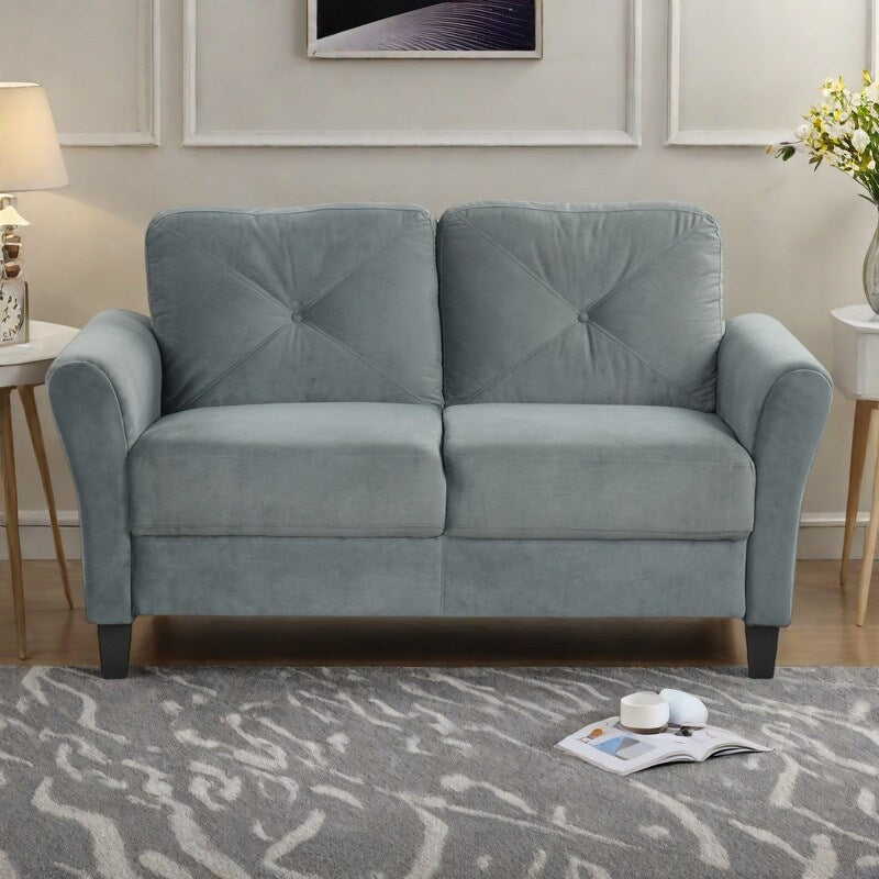 Canapé sectionnel 2 places en velours avec coussins amovibles
