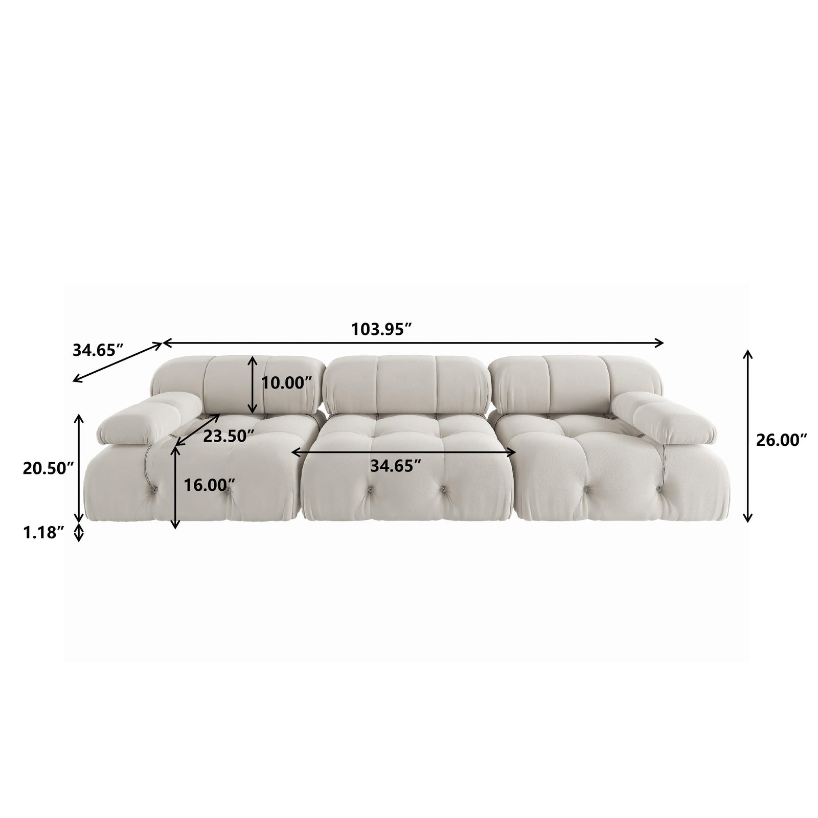 - Globalement : 103,95 pouces de long x 34,65 pouces de large x 26 pouces de haut
