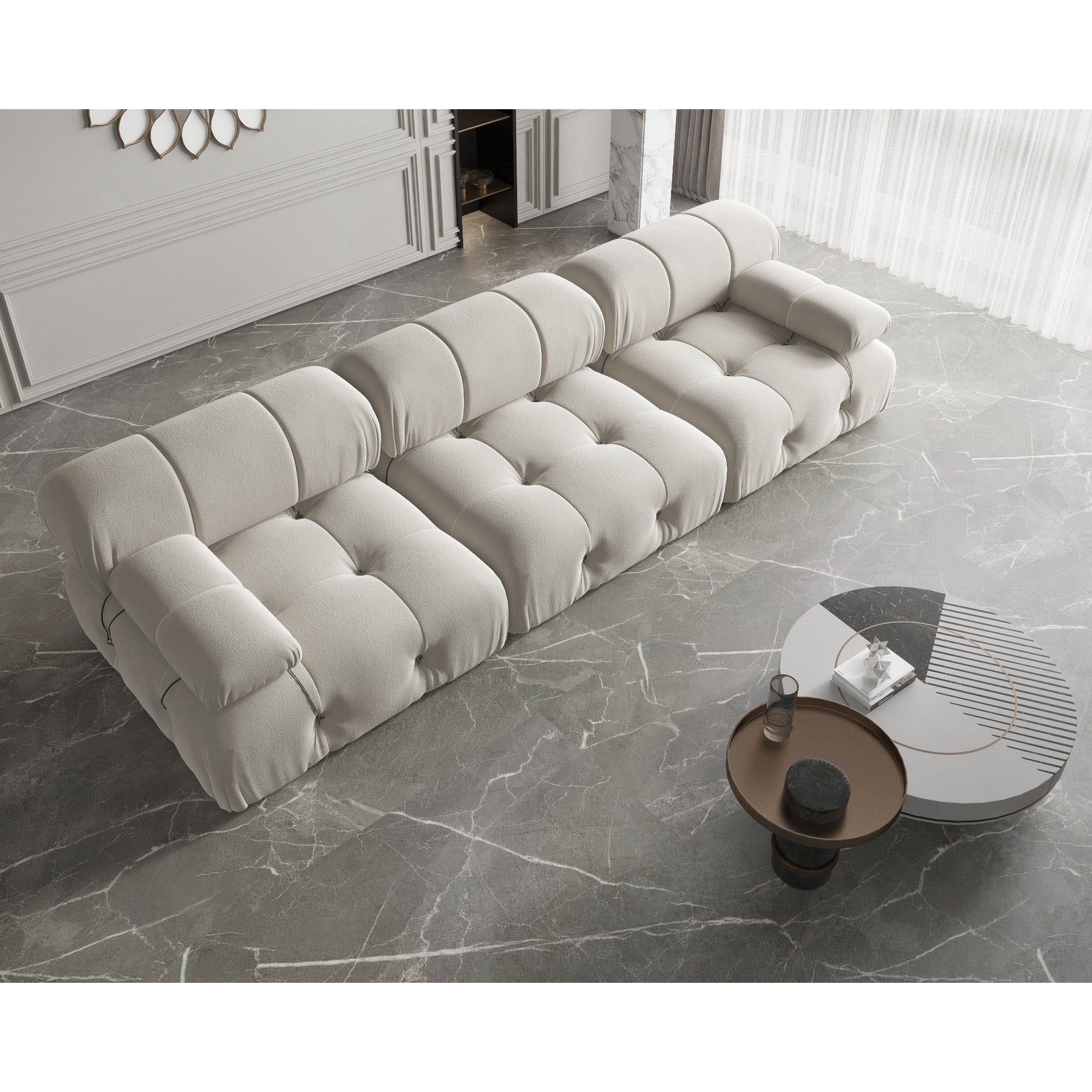 Ajoutez des sièges supplémentaires et du confort à votre intérieur avec cet élégant canapé modulable réversible 3 places en velours. Sa structure en bois massif et ses assises en mousse à ressorts ensachés offrent un soutien durable, tandis que son revêtement en tissu effet velours, disponible dans une couleur polyvalente, apporte une touche de luxe à votre décoration.