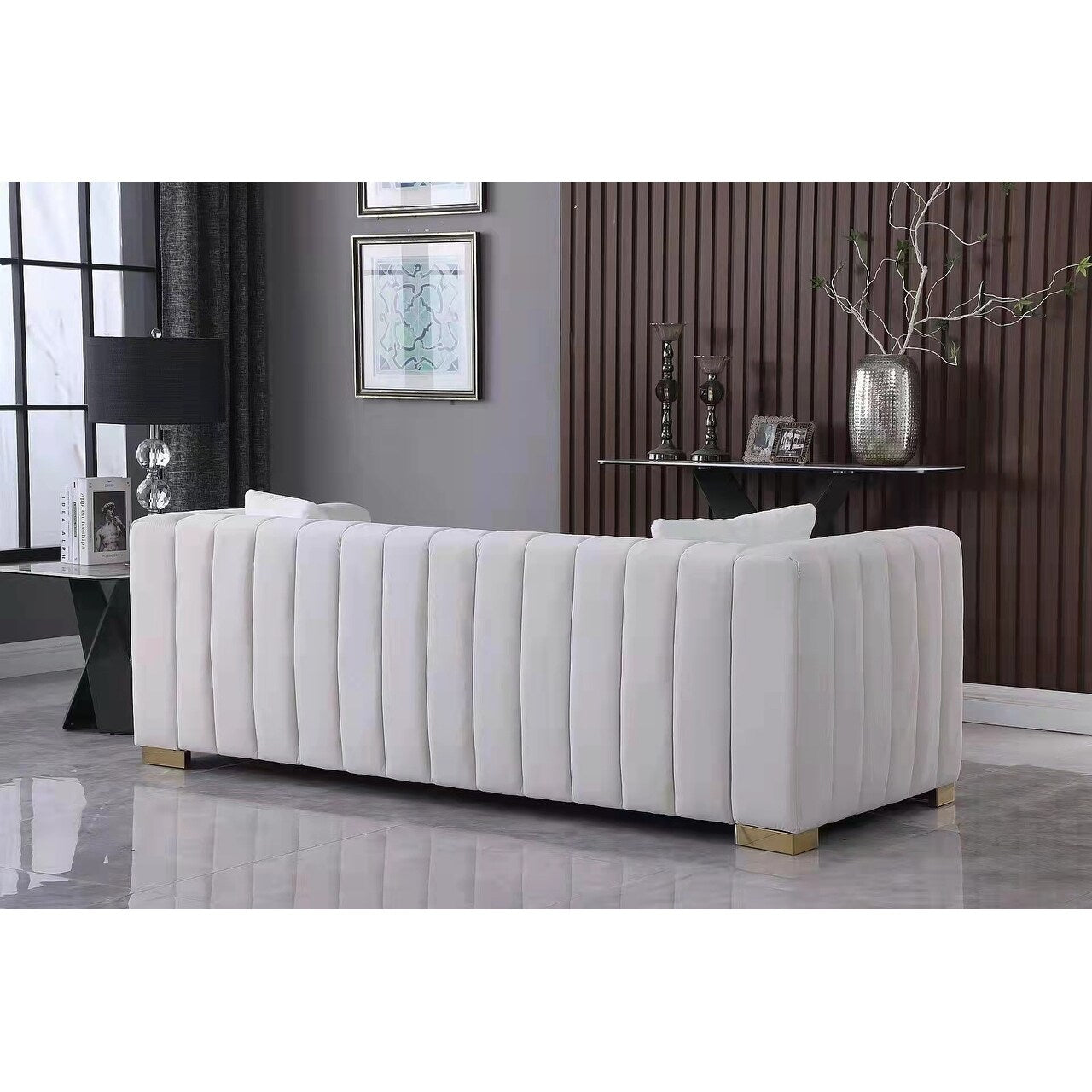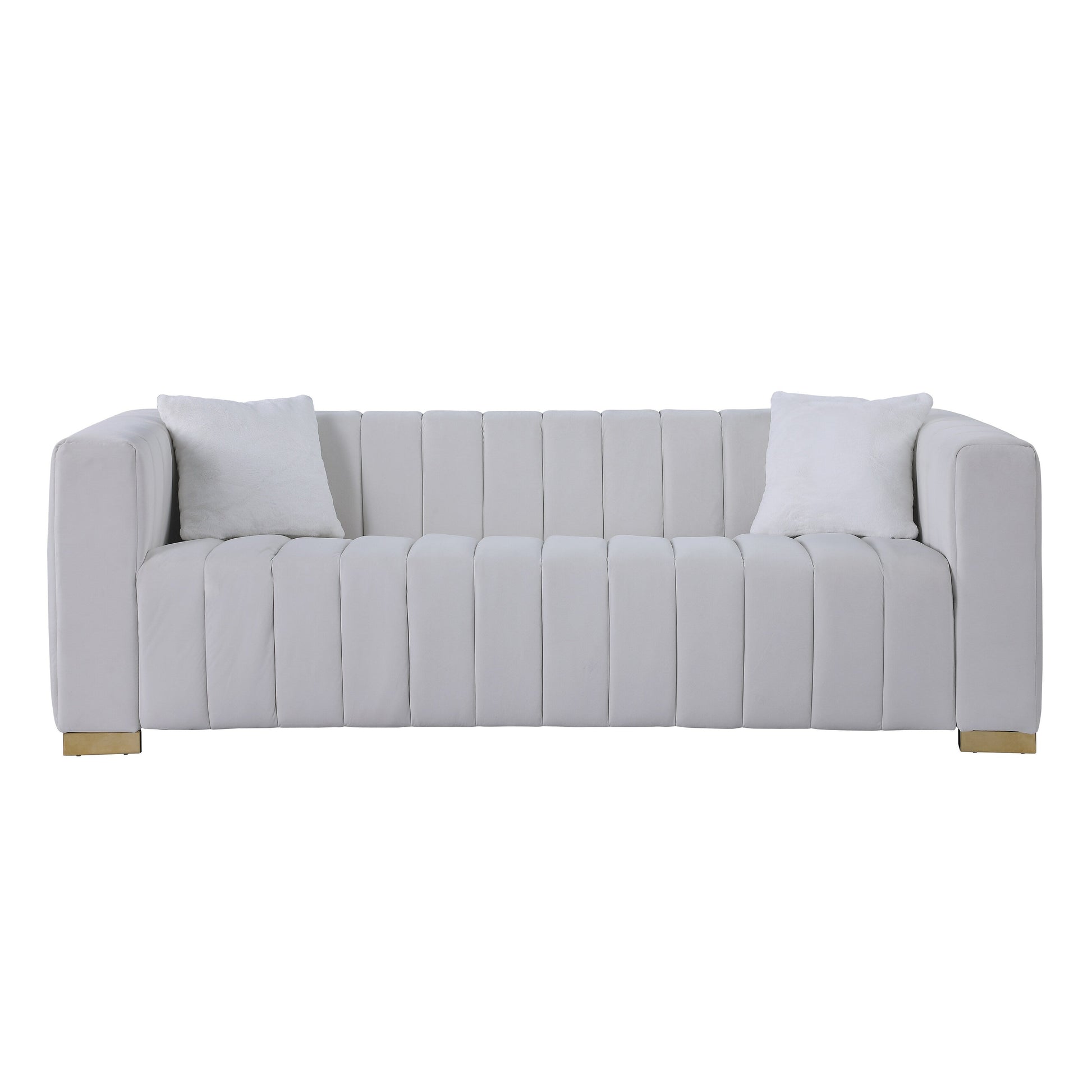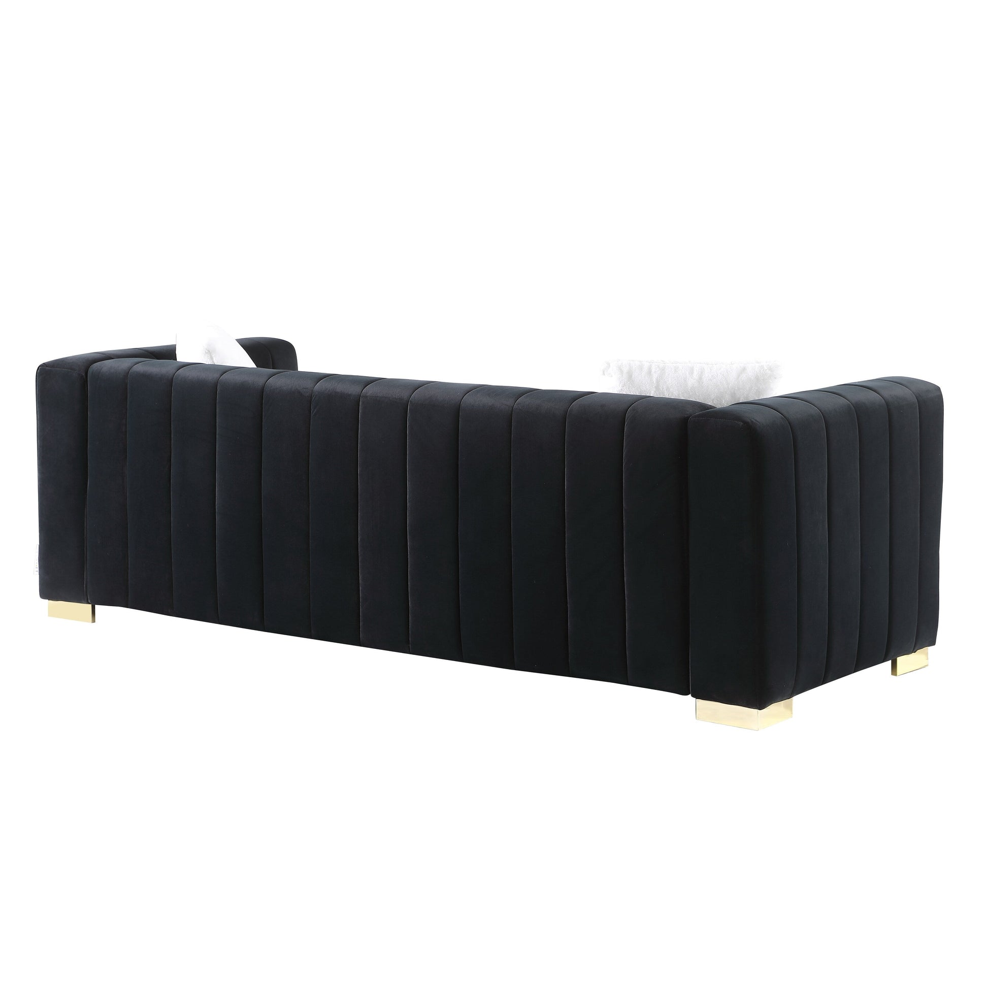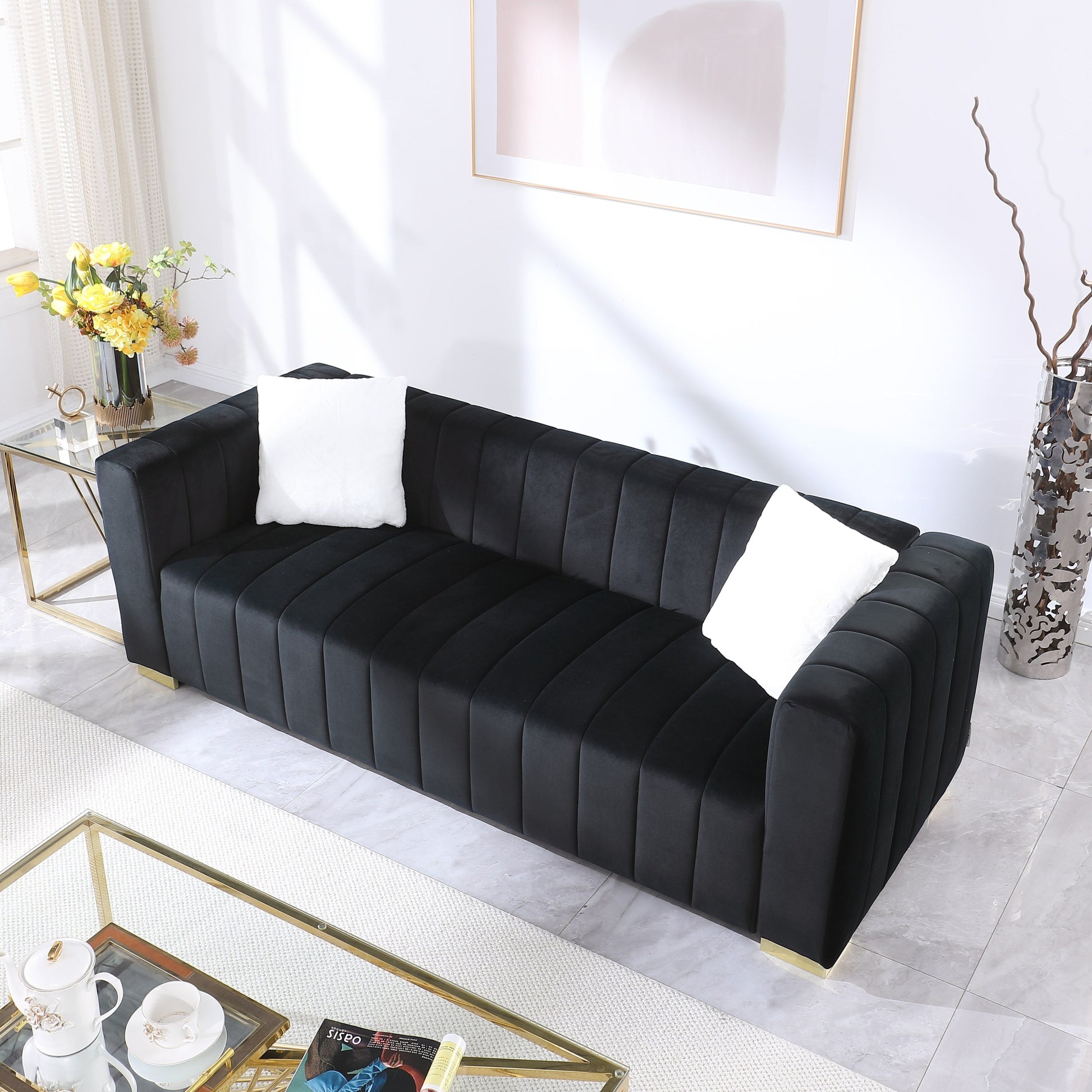 Ce canapé-causeuse est un ajout luxueux et élégant à tout intérieur. Ses coussins moelleux en mousse multi-densité offrent un confort inégalé, vous permettant de vous détendre avec style et aisance. Son design moderne à canaux, inspiré du Chesterfield classique, fait de ce canapé une pièce maîtresse au design élégant. Un velours riche est canalisé à l'intérieur et à l'extérieur de la structure, créant un détail de design remarquable, appréciable sous tous les angles de la pièce. Les coussins simples de type « banquette » offrent une assise confortable à plusieurs personnes, sans les inconvénients des coussins séparés, garantissant une assise harmonieuse et chaleureuse.