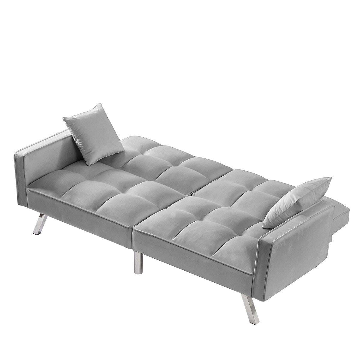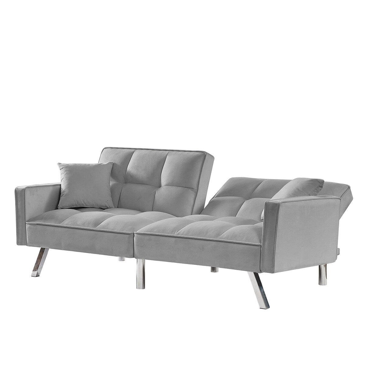Sublimez votre petit espace avec ce canapé-lit en velours élégant et polyvalent. Doté d'accoudoirs et de deux coussins, ce canapé-lit vous permet de créer un environnement idéal pour travailler et se détendre. Son dossier réglable se transforme facilement en lit confortable, idéal pour accueillir des invités. Son dossier divisé permet de multiples positions de détente, selon vos préférences. Fabriqué en velours de haute qualité et doté de pieds en métal chromé, ce canapé-lit allie confort et durabilité. De plus, son montage est très simple grâce aux instructions détaillées fournies.
