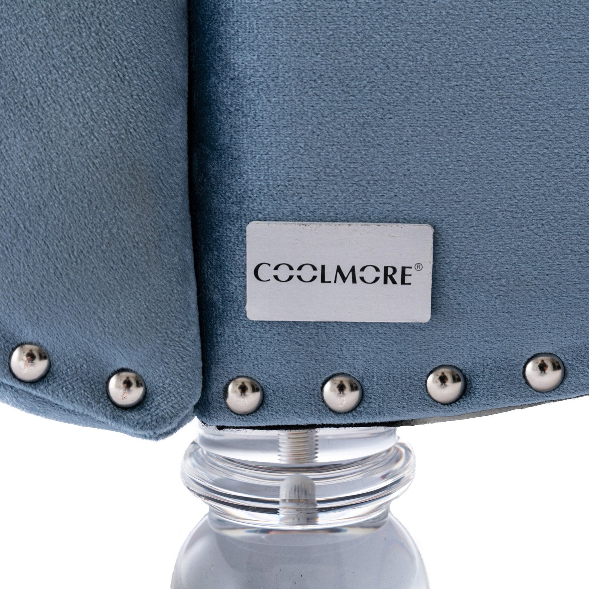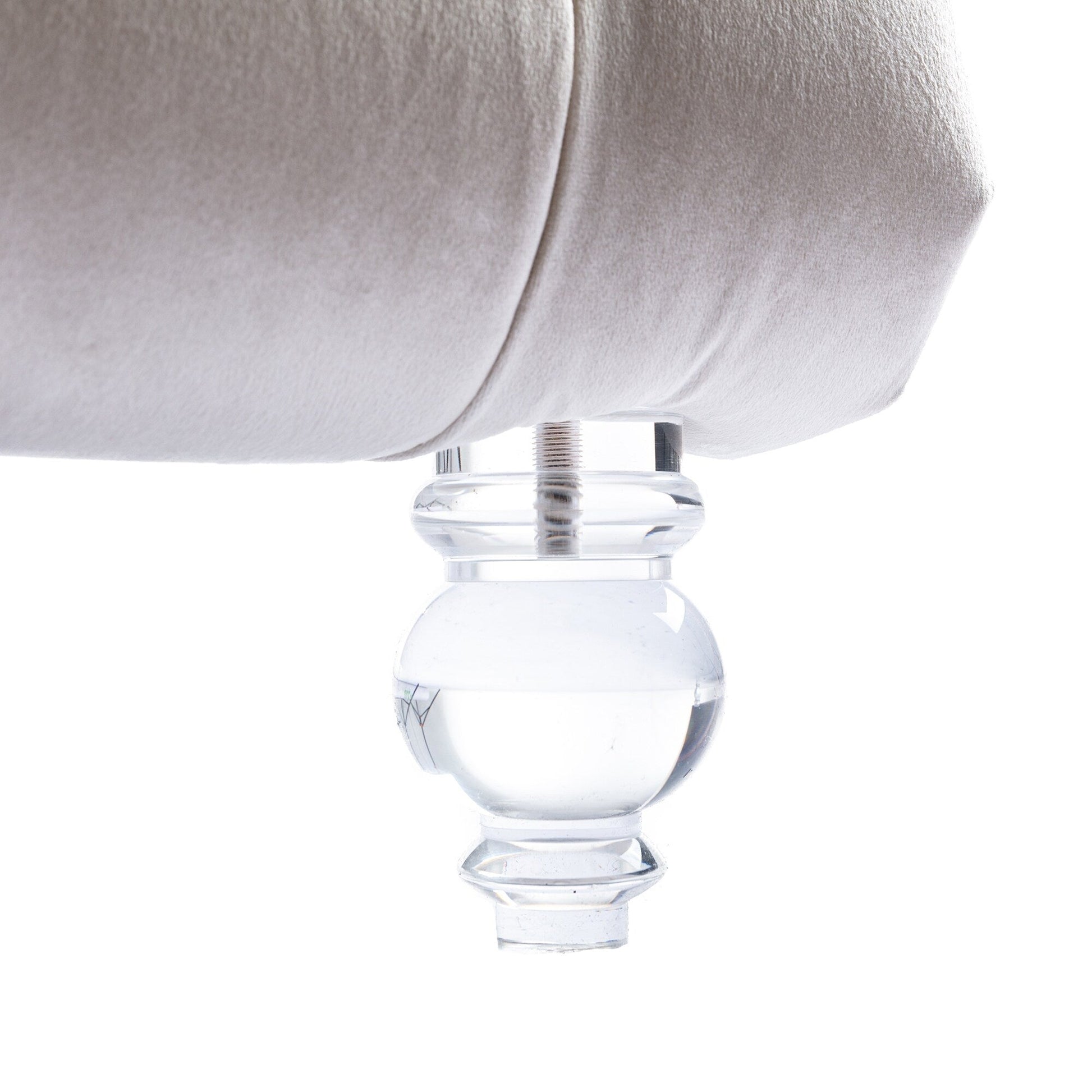 Chaise longue ergonomique en velours capitonné, inclinable en forme de S, avec coussin, garniture cloutée et pieds en acrylique pour une utilisation en intérieur