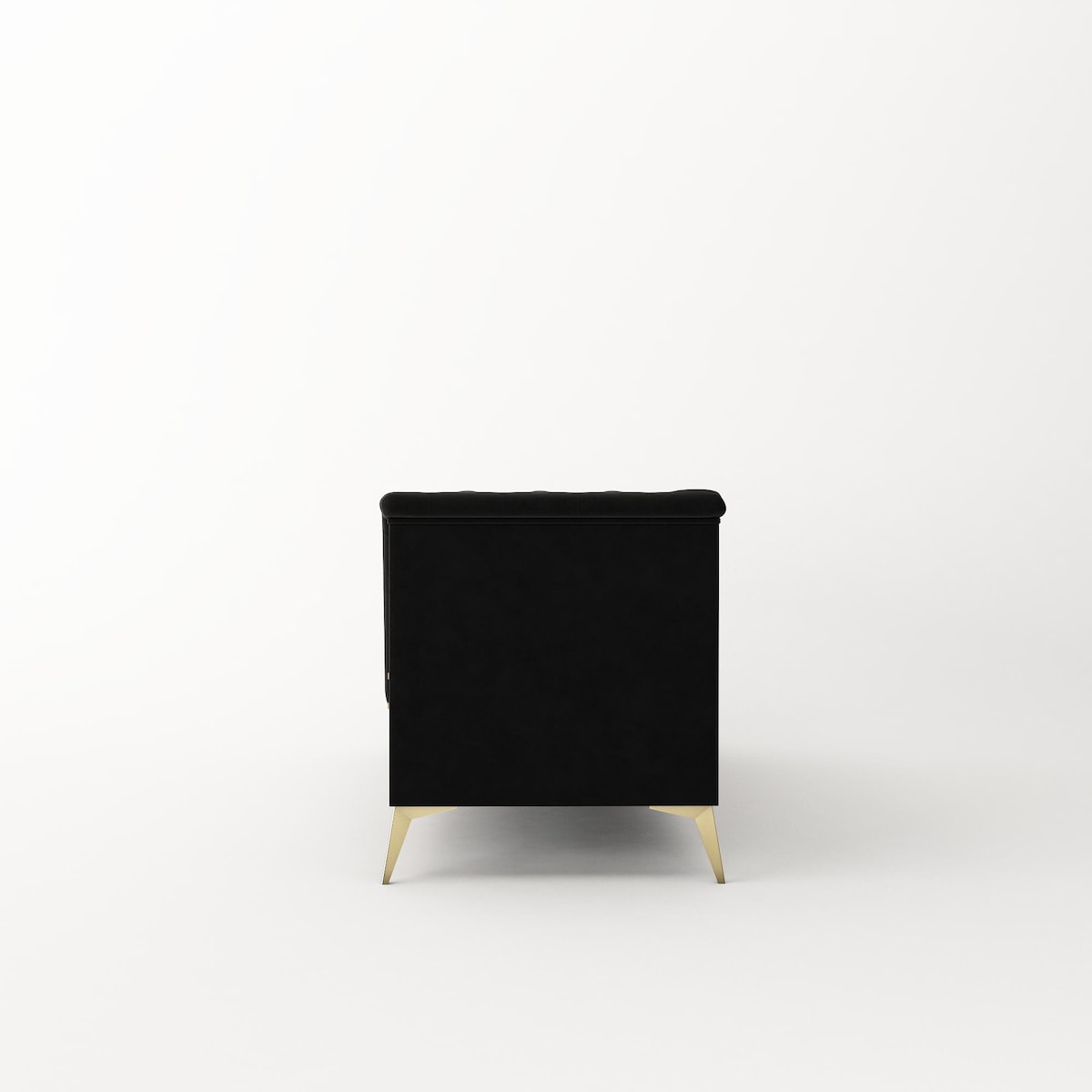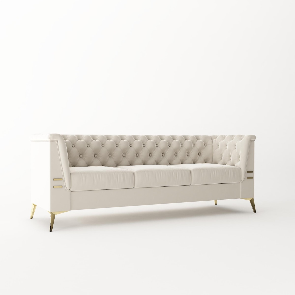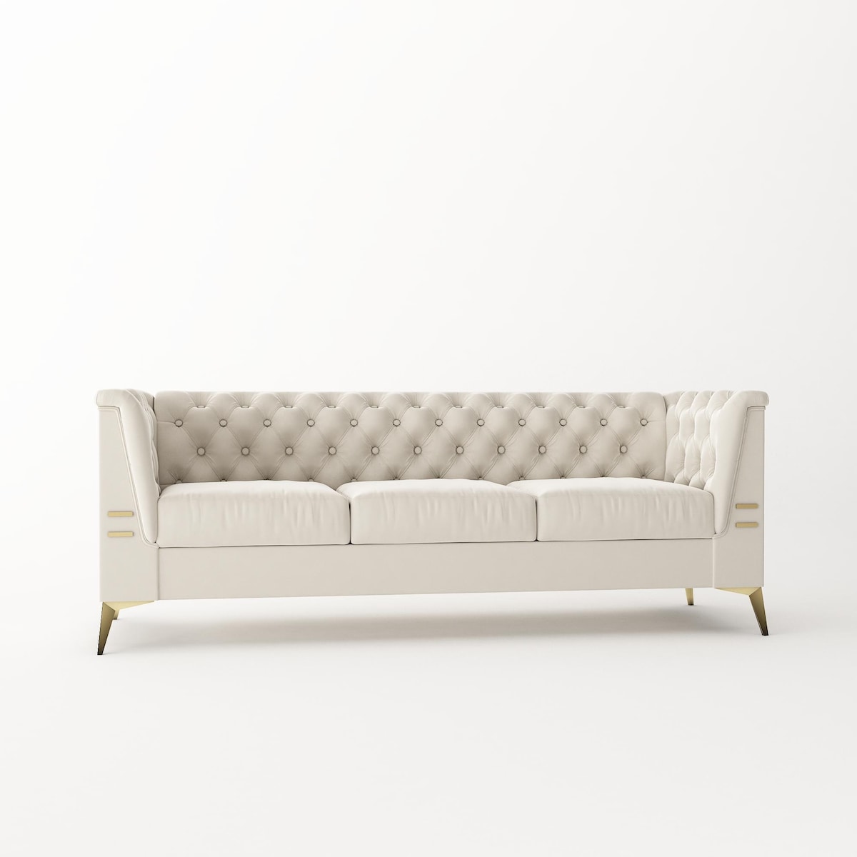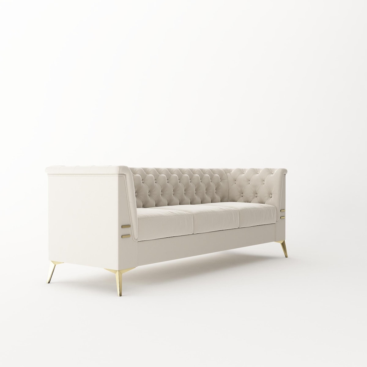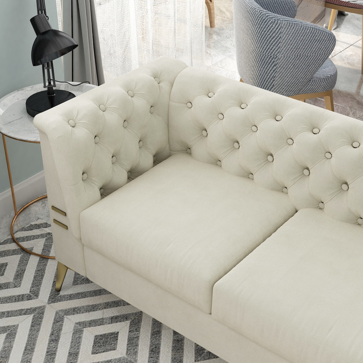 Canapé 3 places rembourré en velours, canapé de salon moderne avec capitonnage à boutons profonds et pieds en métal, accoudoirs carrés