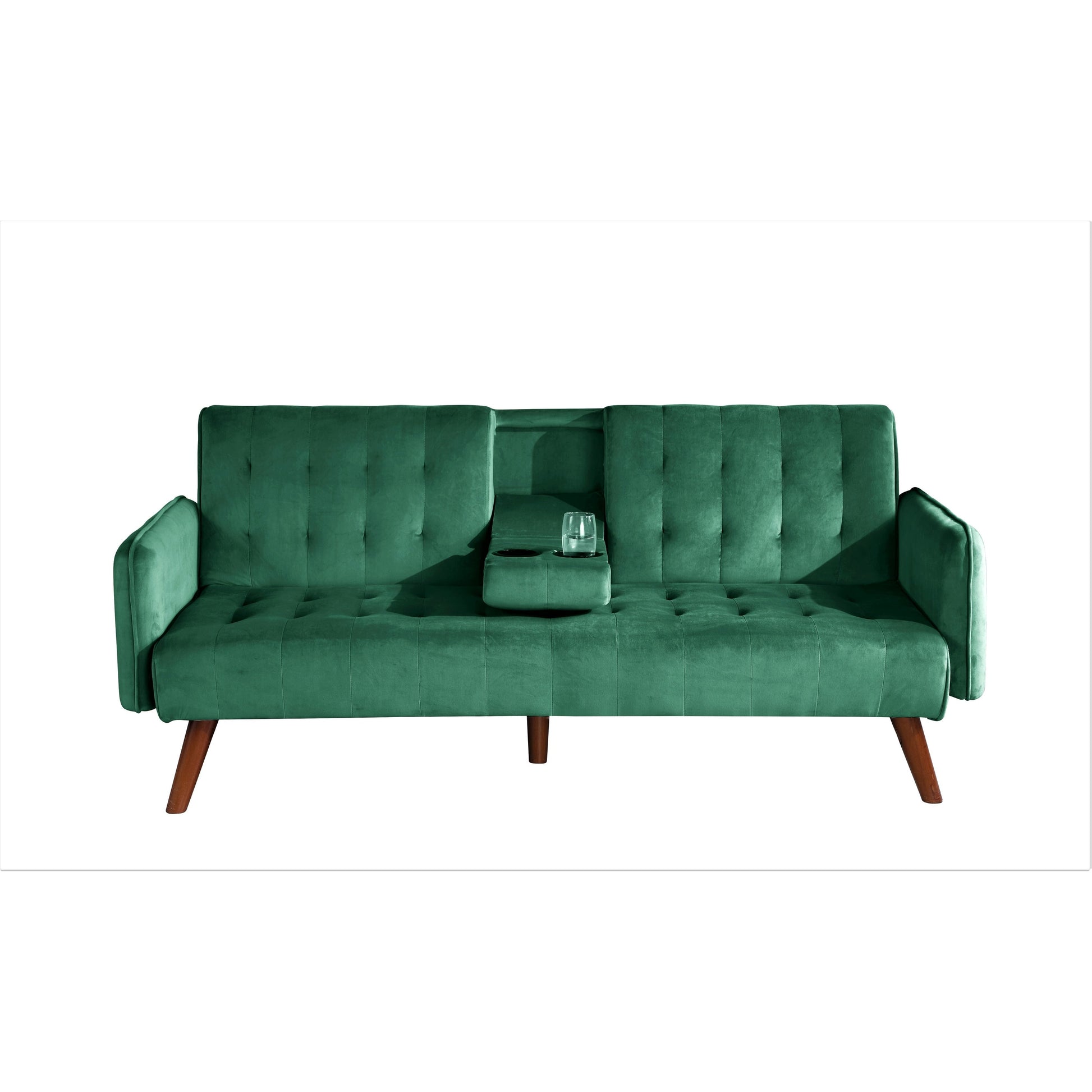 Canapé-lit futon convertible et pliable en velours avec 2 porte-gobelets pour un salon compact