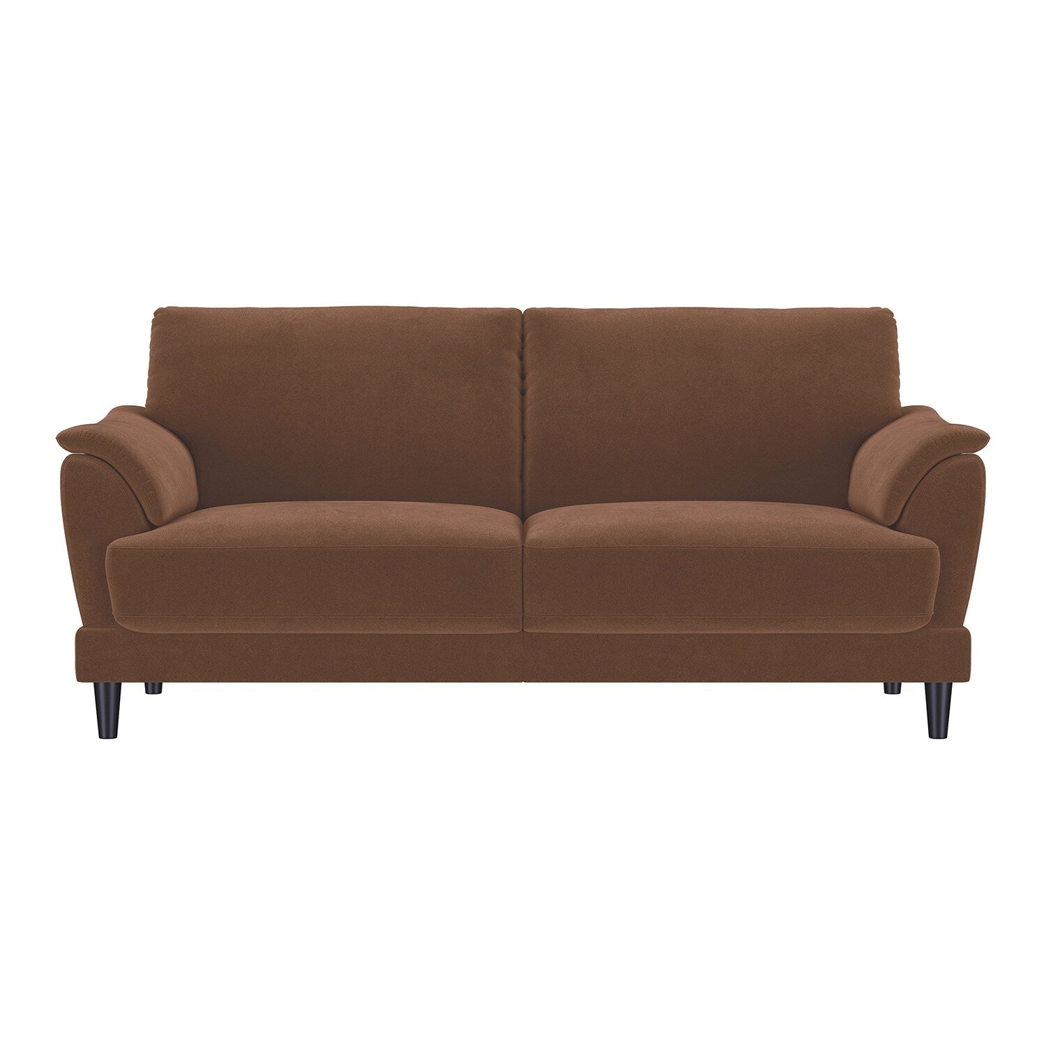 Canapé rembourré en velours avec pieds fuselés en bois couleur rouille