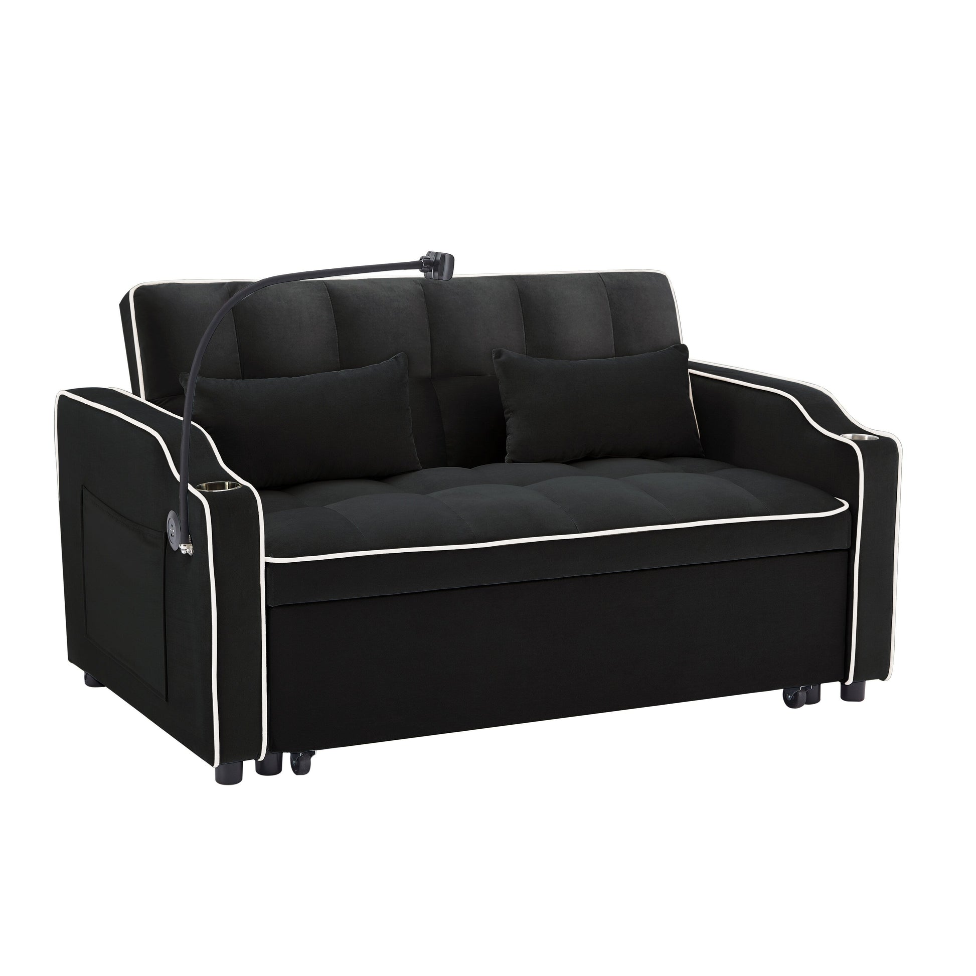 Canapé-lit pliable polyvalent en velours avec dossier réglable, port USB et support de téléphone