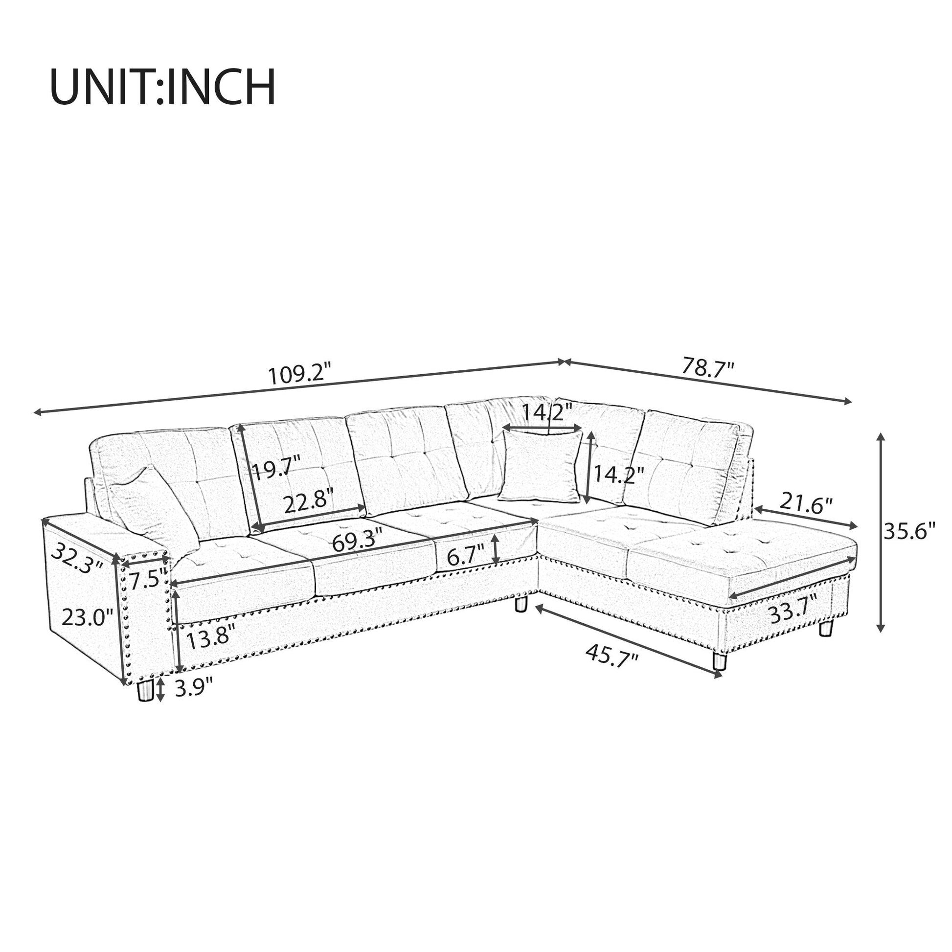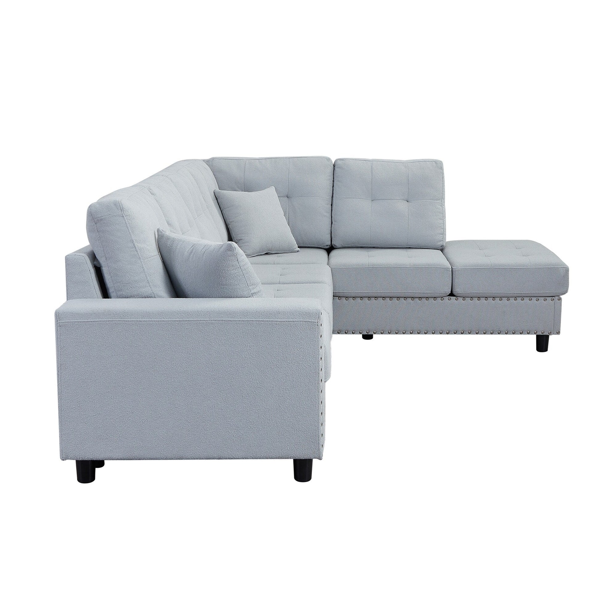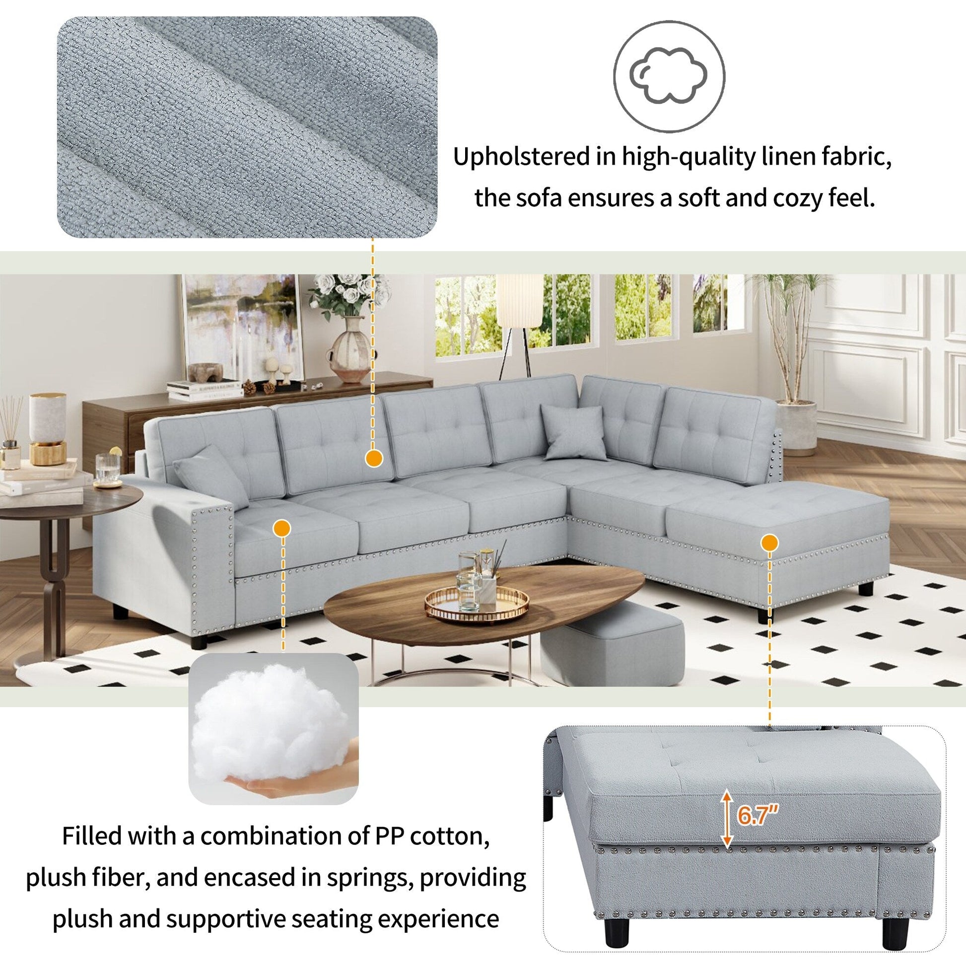 - Ce canapé modulable en L allie charme vintage et confort moderne. Revêtu d'un élégant lin et orné d'une bordure cloutée classique, il est doté de coussins moelleux, d'une structure en bois robuste et de coussins amovibles. Il convient parfaitement aux salons, bureaux et appartements.