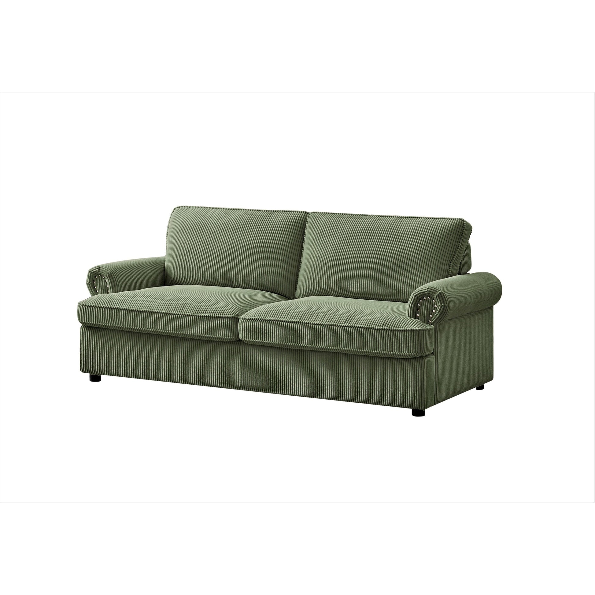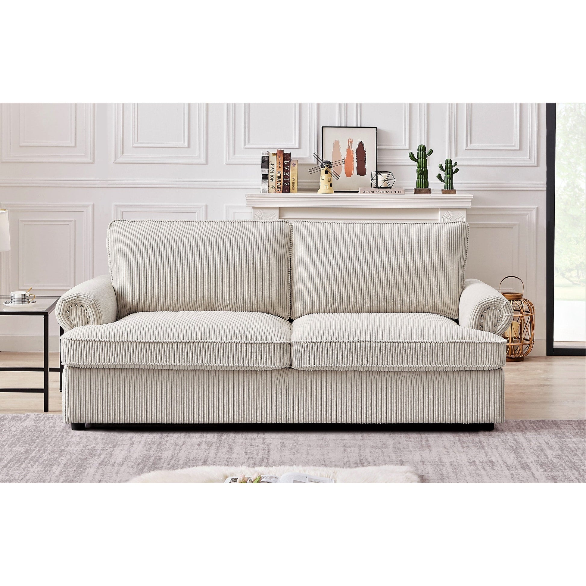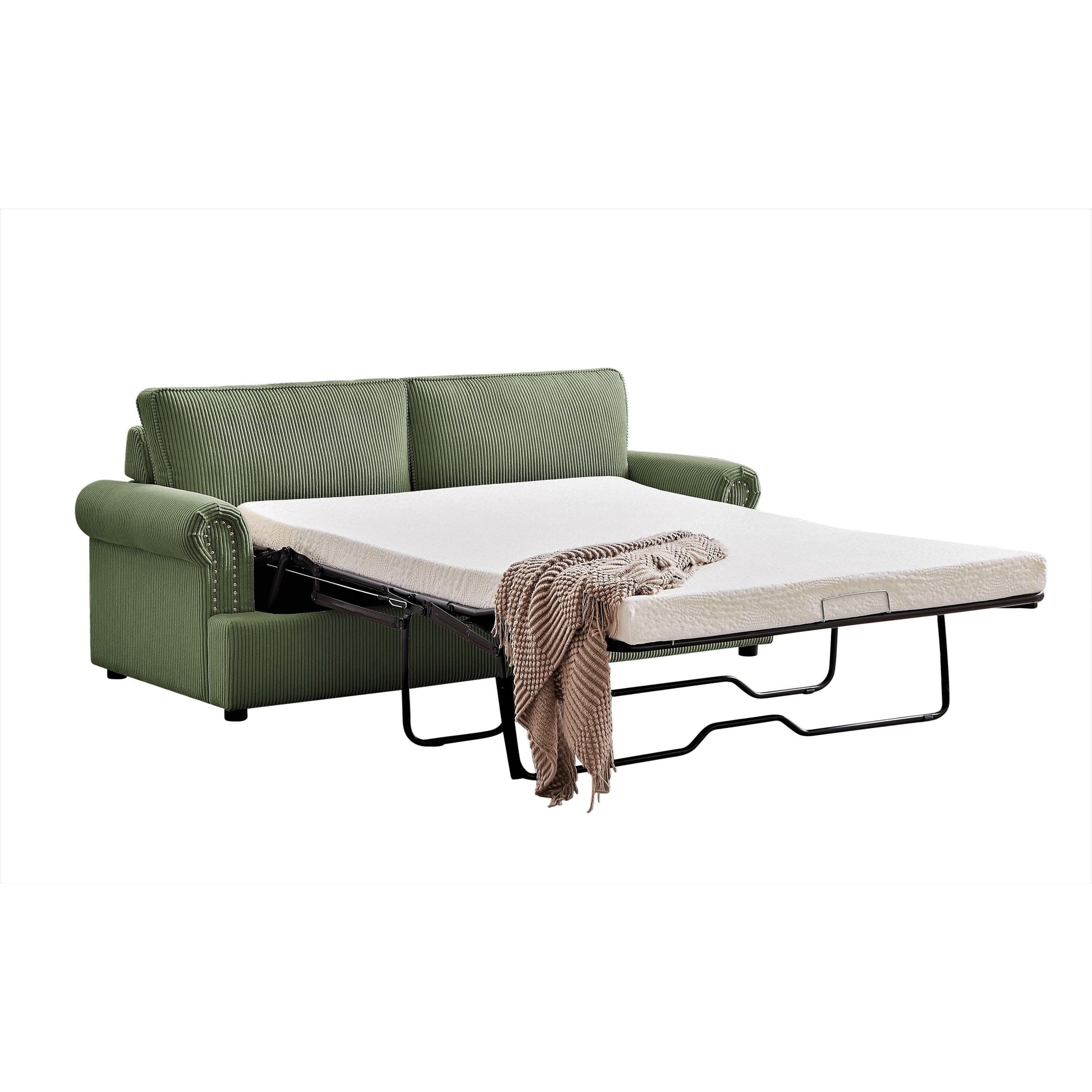 Agrémentez votre salon avec ce canapé-lit, doté d'accoudoirs ronds classiques et de dossiers rembourrés. Il se transforme en lit queen-size, idéal pour accueillir vos invités. Ce canapé-lit, avec ses coussins garnis de mousse, son matelas, sa structure en bois et son mécanisme en métal, lui confère robustesse et durabilité. Il offre un espace de couchage supplémentaire et une touche glamour à votre salon. Revêtu de velours côtelé, il vous offre confort et repos. Son matelas en mousse haute densité vous offrira un repos relaxant. Il convient aussi bien à un usage résidentiel que commercial. Ce canapé-lit est livré avec un lit gigogne équipé d'un matelas en mousse. Le mécanisme est en acier épais, ce qui lui confère une charge maximale de 225 kg. La qualité de fabrication du coussin d'assise assure confort et soutien à chaque fois que vous vous asseyez.