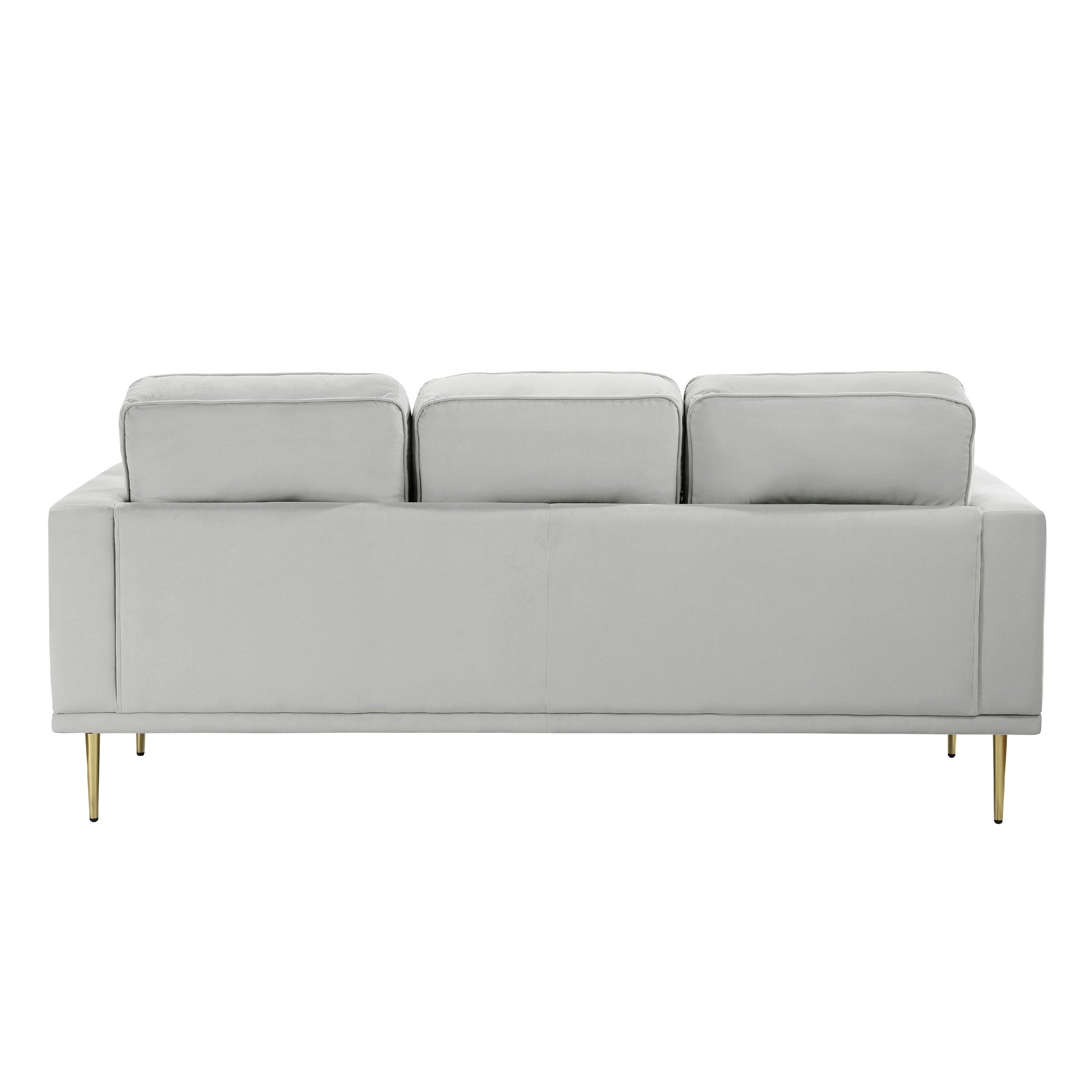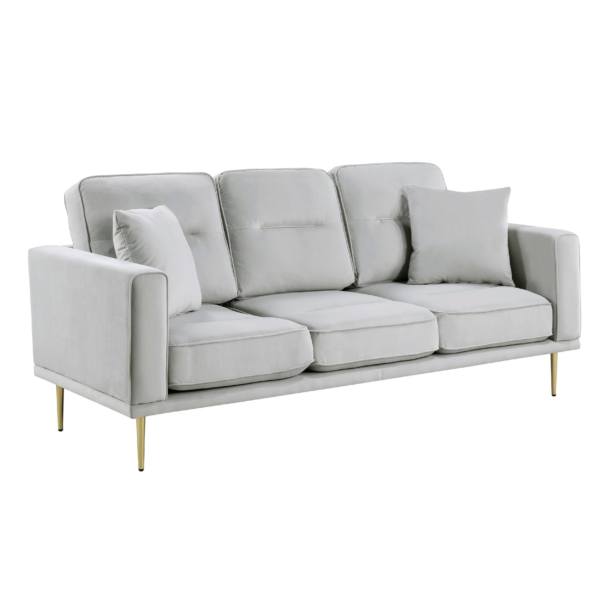 Canapé Voxo, assise rembourrée en velours gris, deux coussins décoratifs, 82 pouces