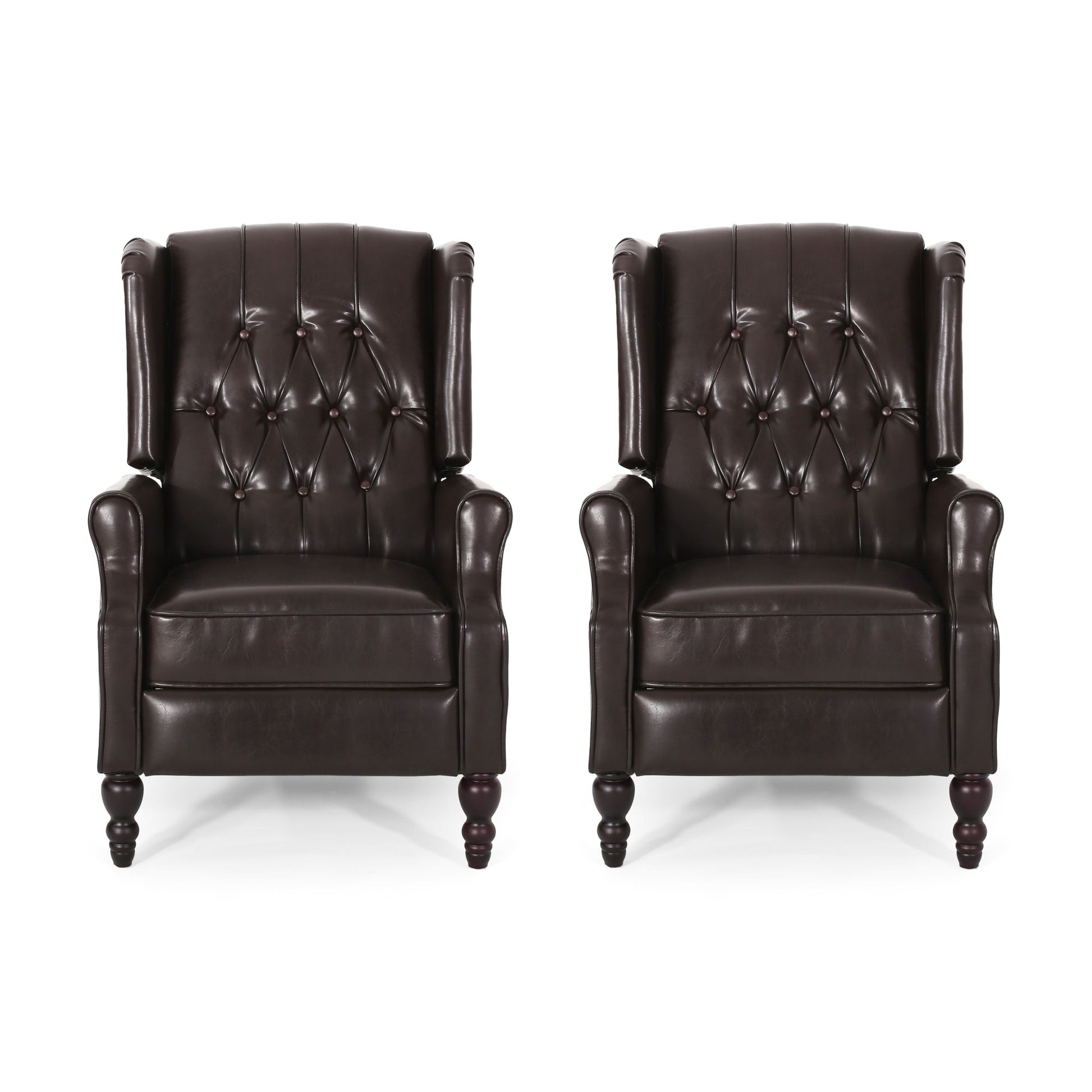 Sublimez votre espace de vie avec l'ensemble de fauteuils inclinables Walter de Christopher Knight Home. Cet ensemble de deux fauteuils inclinables allie des éléments de design classiques, comme une silhouette à oreilles, des surpiqûres capitonnées en losanges et une garniture à tête de lit, à une fonctionnalité moderne. Le revêtement en cuir reconstitué moelleux et le mécanisme d'inclinaison à poussoir souple offrent un confort exceptionnel, tandis que les pieds robustes en bouleau garantissent une grande durabilité. Idéals pour un salon ou un bureau, ces fauteuils inclinables allient style et détente.