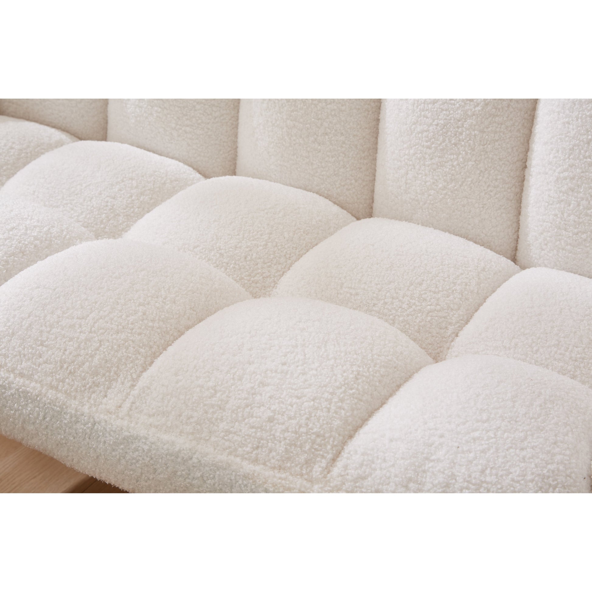 Canapé causeuse Teddy blanc 52 avec dossiers matelassés et cadre en bois dur pour le salon.