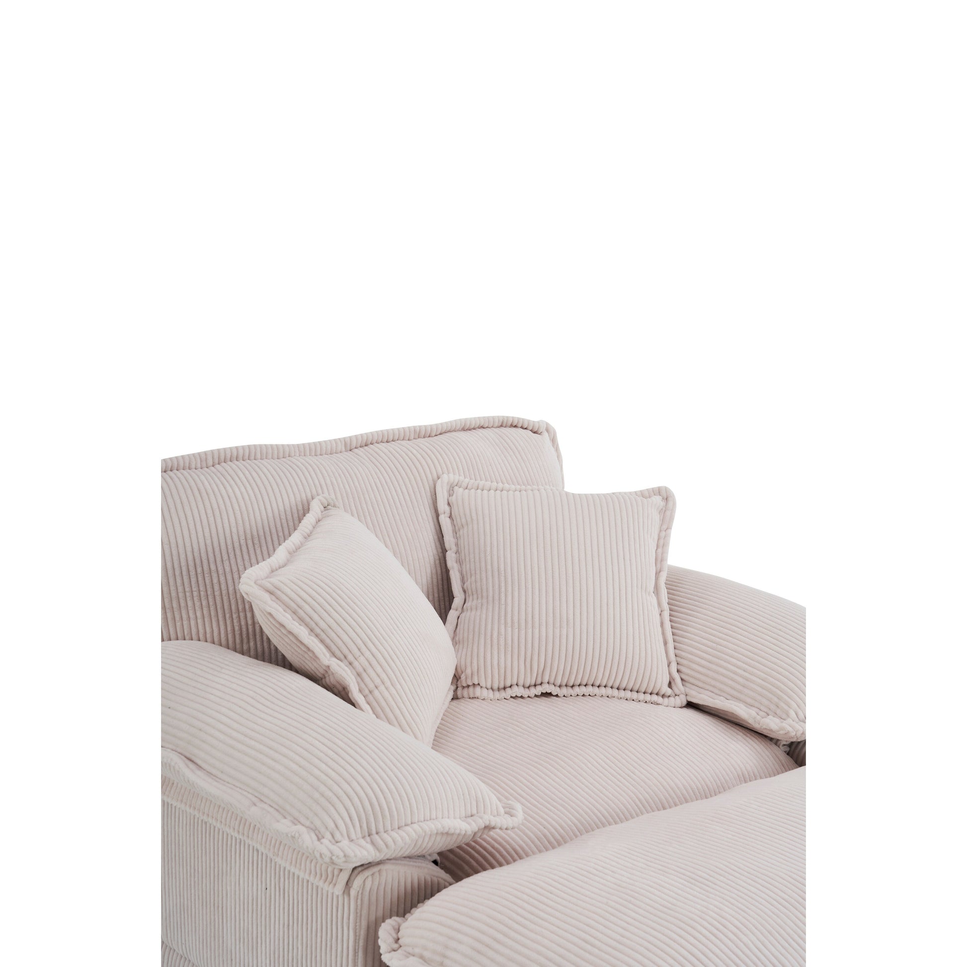 Ce canapé en velours côtelé est conçu pour devenir la pièce maîtresse de votre salon. Que vous receviez votre famille, fassiez une sieste ou passiez un moment entre amis, il vous offrira un confort et un style incomparables. Son assise élégante, soignée dans les moindres détails et la qualité de ses finitions, garantit sa durabilité et sa longévité. La teinte neutre de son revêtement en velours côtelé doux et son rembourrage en éponge haute résilience le rendent à la fois accueillant et confortable. Son piédestal assure une stabilité accrue, tandis que les coussins d'appoint inclus offrent un confort et un soutien accrus. Cet ensemble de canapés s'intègre parfaitement à tout intérieur de style européen, contemporain ou moderne.