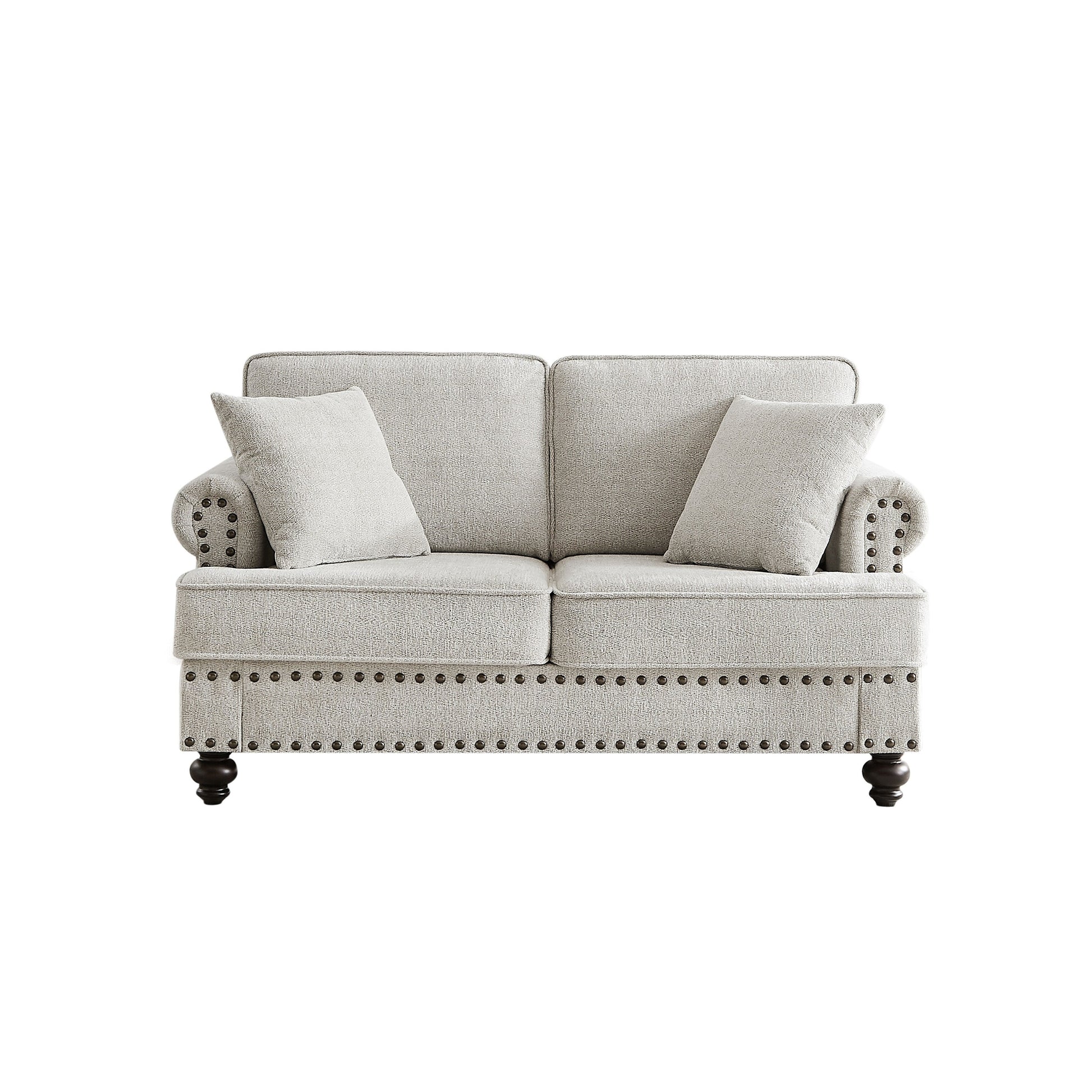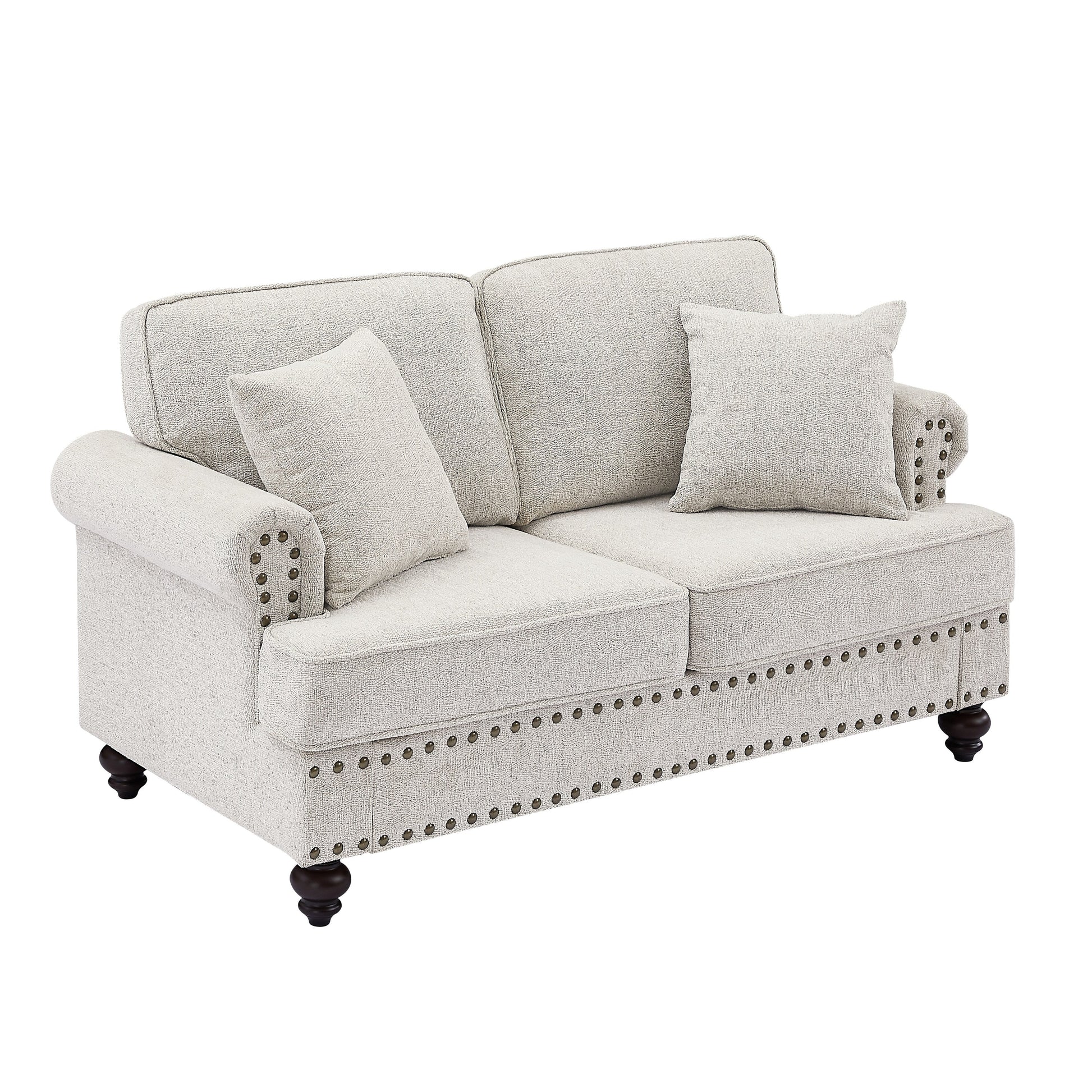 Canapé 2 places moderne blanc de 61 pouces avec garniture cloutée, oreillers et coussins haute densité