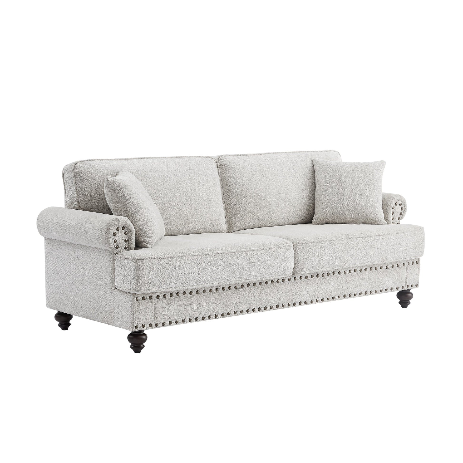 Canapé 2 places moderne blanc rembourré de 82 pouces avec garniture cloutée, oreillers et coussins en éponge