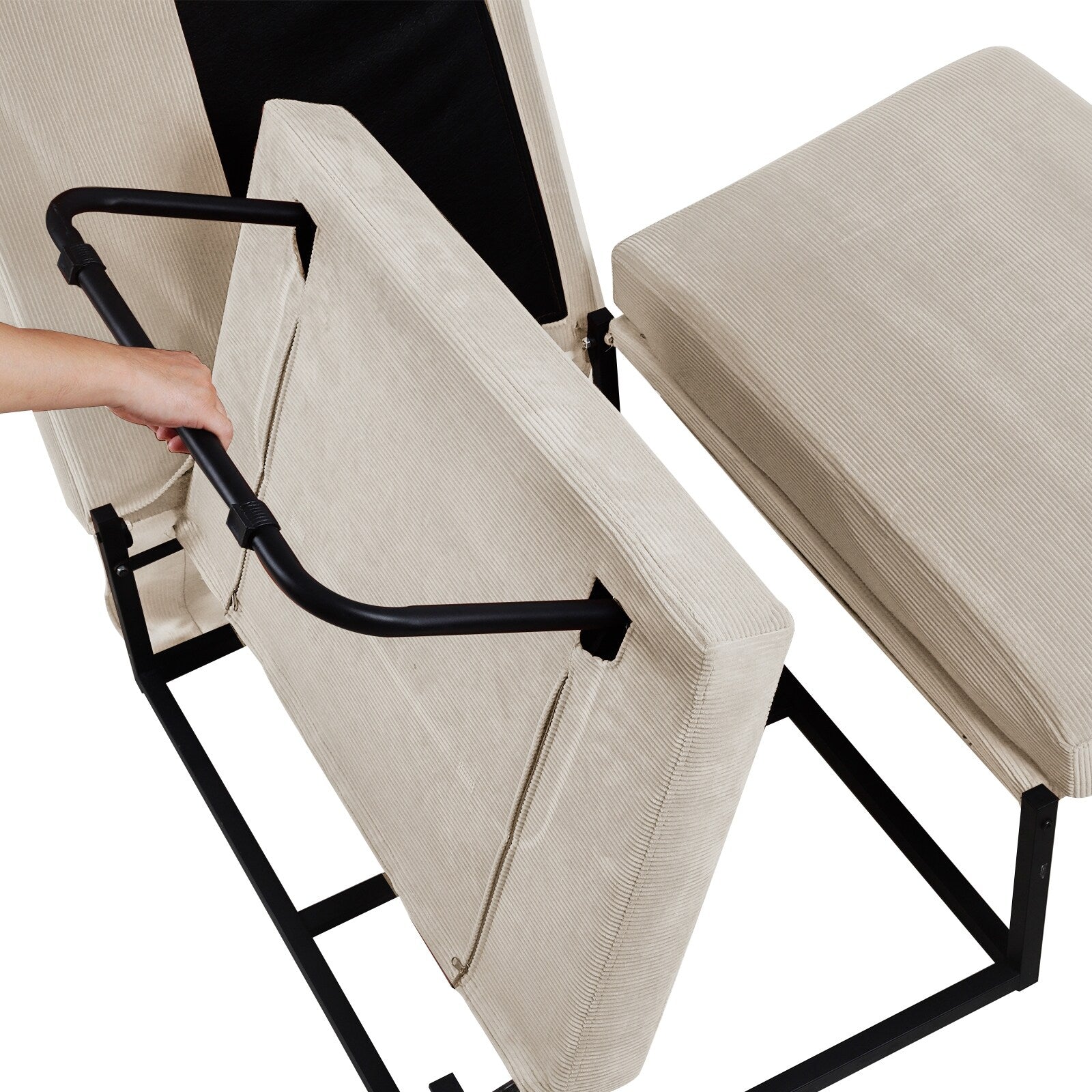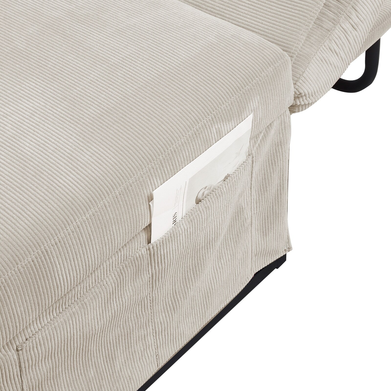 Canapé-lit simple convertible en velours côtelé blanc avec dossier inclinable