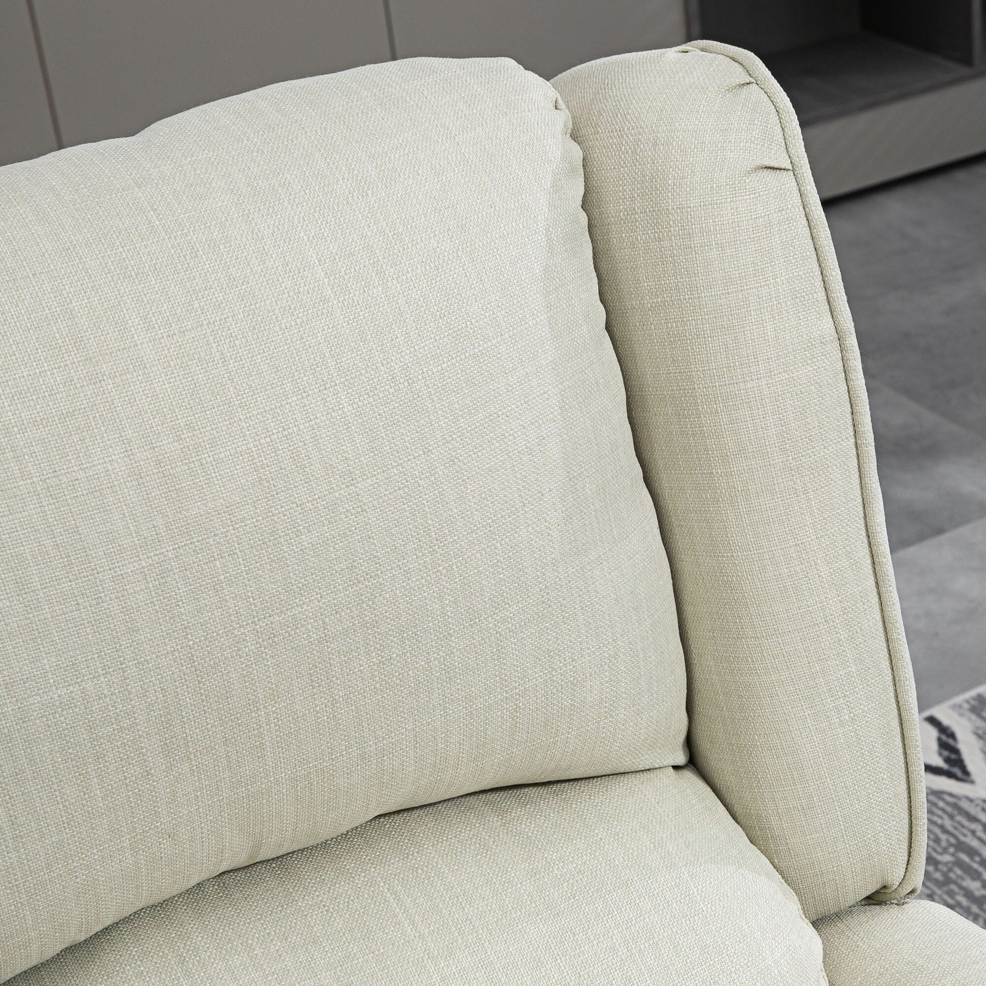 Confort et soutien : Revêtu d'un tissu en lin respirant, avec un rembourrage en mousse haute densité et un système de ressorts ensachés, notre canapé inclinable offre un confort, une élasticité et un rebond exceptionnels pour une détente optimale. Son dossier à oreilles, ses accoudoirs ronds et ses pieds en bois lui confèrent une touche d'élégance, tandis que sa structure en acier et ses pieds en bois assurent sa stabilité.