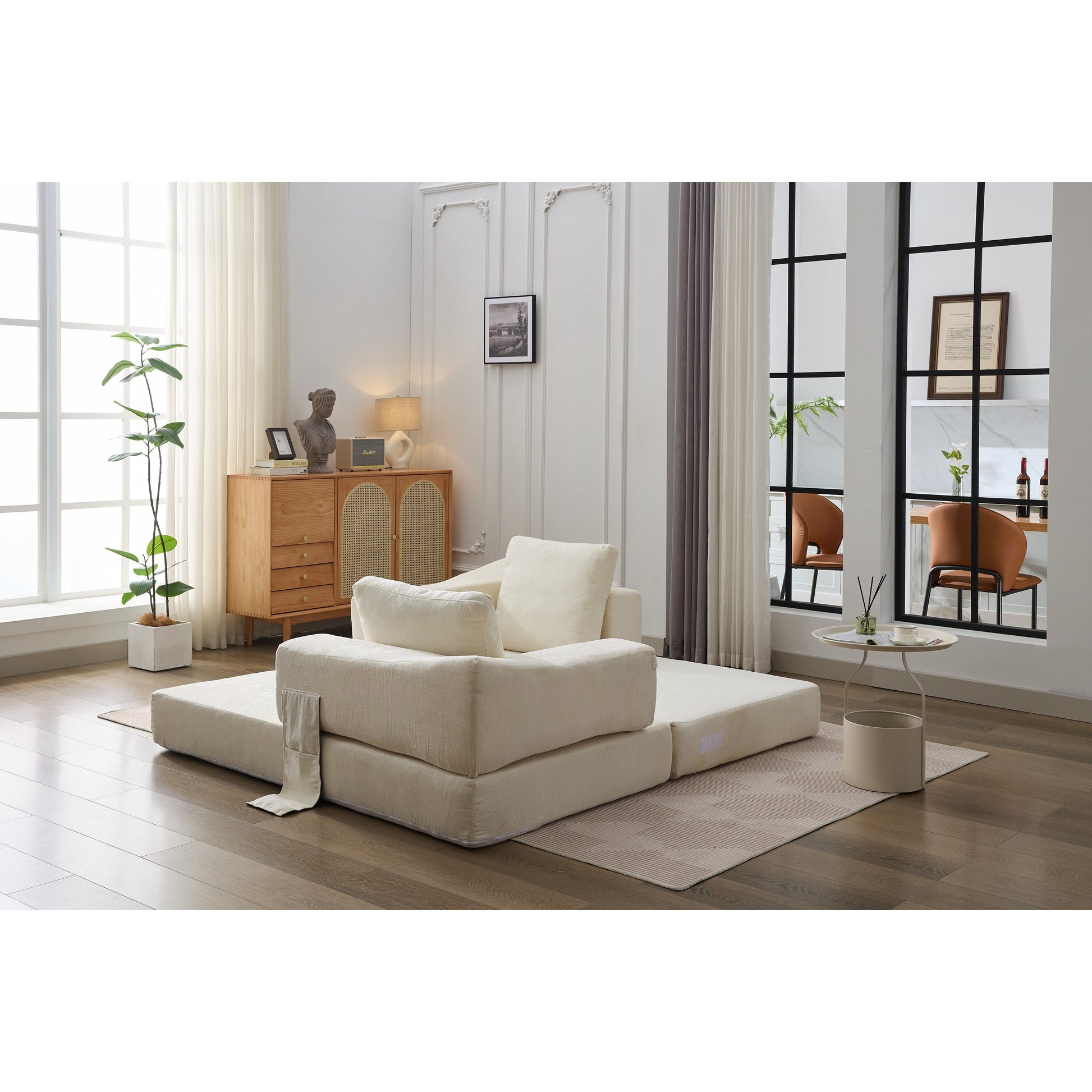Canapé-lit convertible en chenille blanc moderne et minimaliste 70,87 pouces avec dossier amovible pour salon