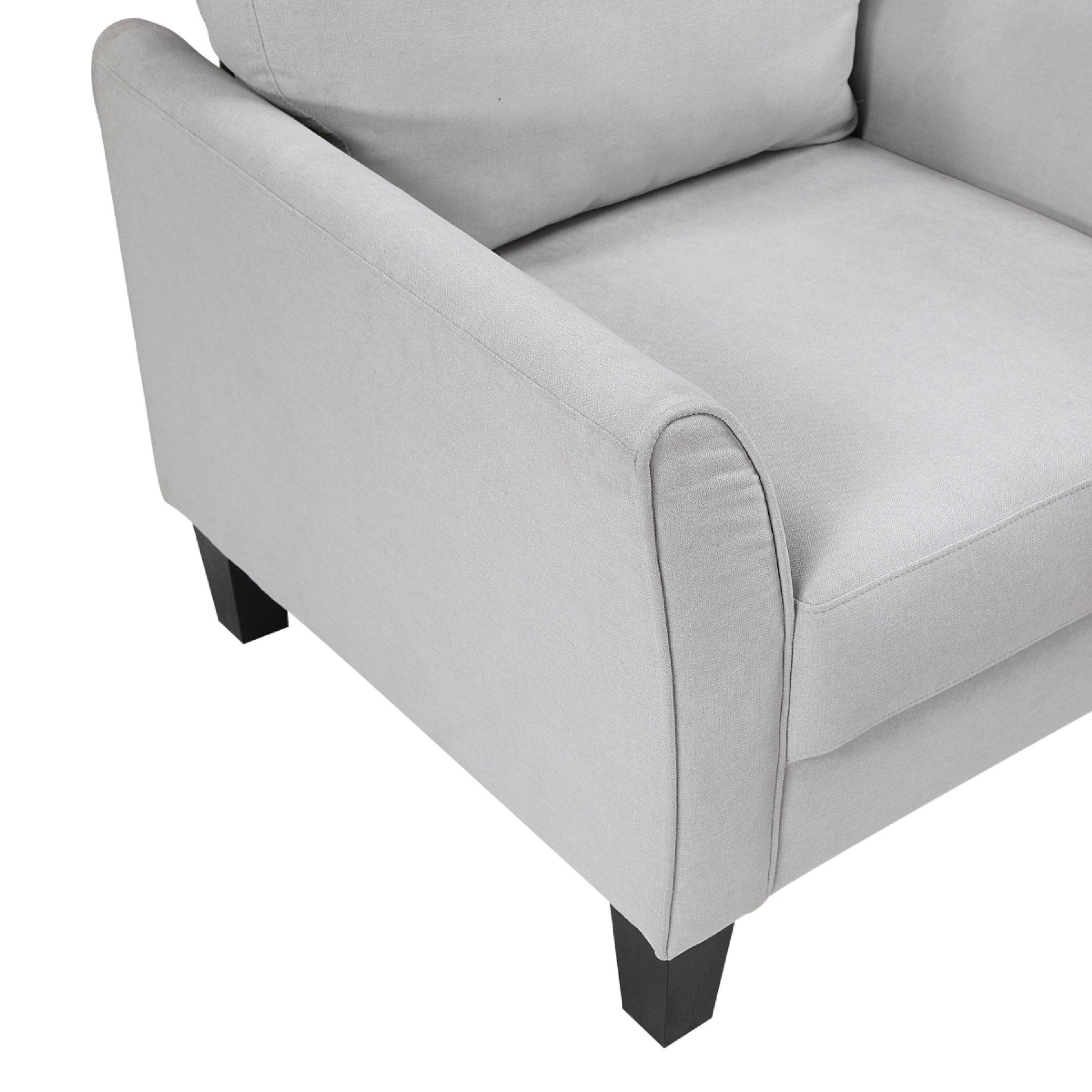 Apportez une touche d'élégance décontractée à votre salon avec ce canapé gris texturé. Construit avec une structure en bois massif et contreplaqué, il est doté d'un rembourrage en mousse haute densité et d'un revêtement en tissu gris clair texturé. Ses coussins intégrés, ses pieds noirs imitation bois et ses lignes épurées rendent ce fauteuil à la fois élégant et fonctionnel. Découvrez notre collection Xumo pour plus d'options.